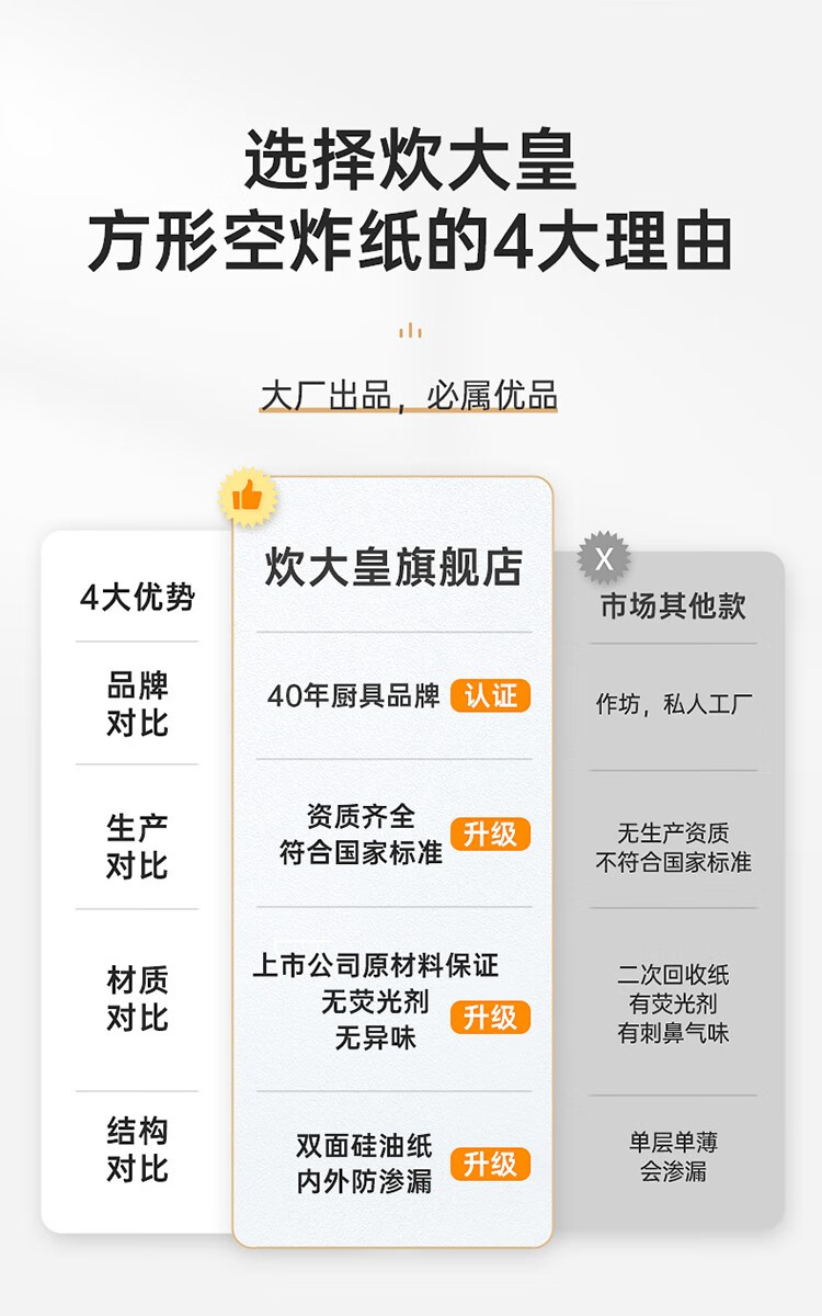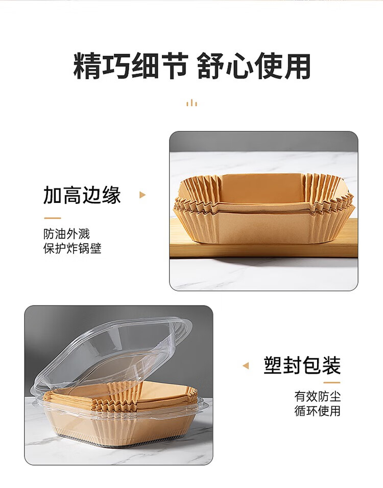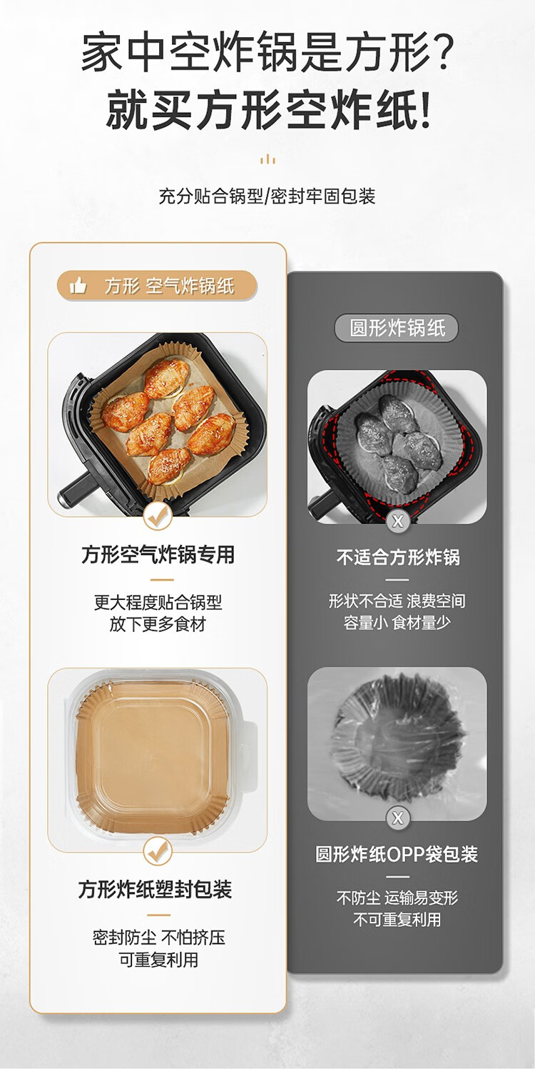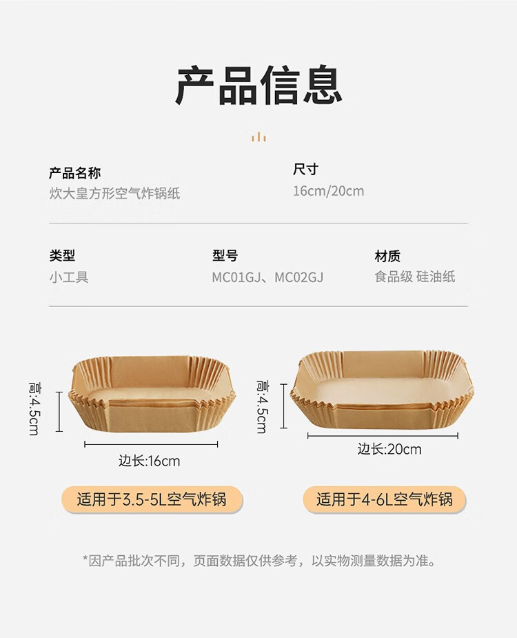 COOKER KING air fryer special paper log color square paper pad 5-6L household baking oil-absorbing paper pad barbecue paper 20cm 50 sheets suitable for 4-6 liter fryers