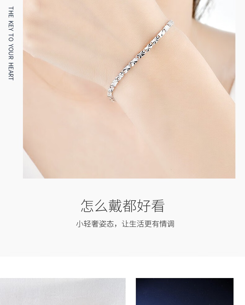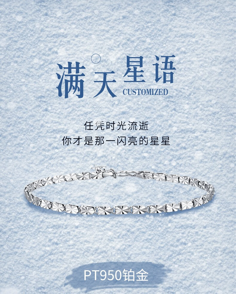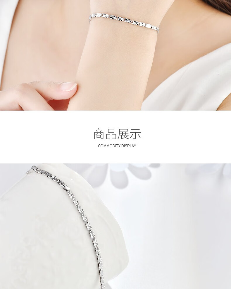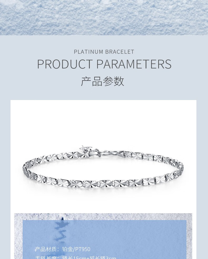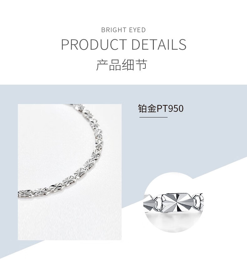 Pt950 platinum bracelet for women platinum bracelet for women solid faceted super flash jewelry Valentine's Day gift platinum rice bracelet 15+3 cm adjustable