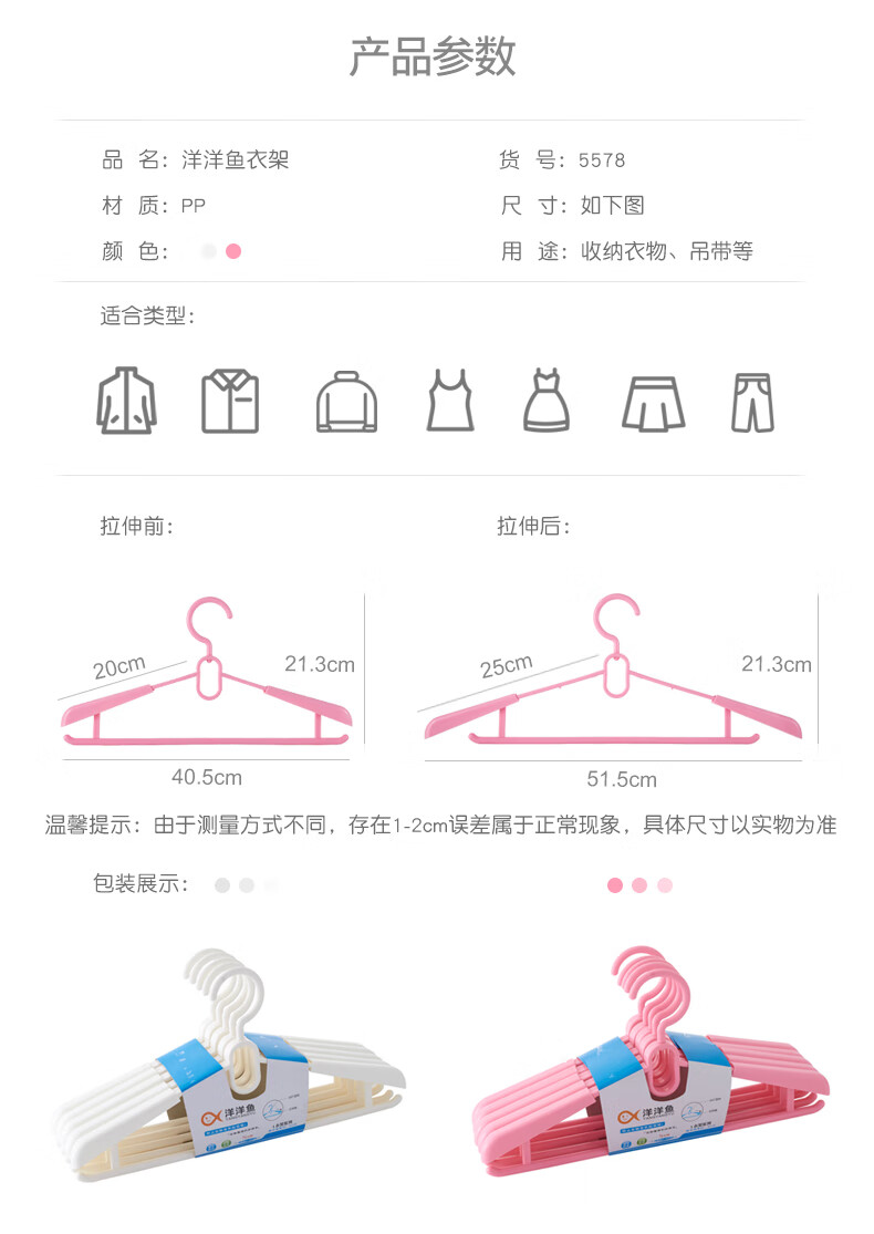 Yangyangyu plastic retractable adjustable clothes hanger rotating adult men and women dry and wet household large thickened white 10 L hangers length 40.5*height 21.3cm