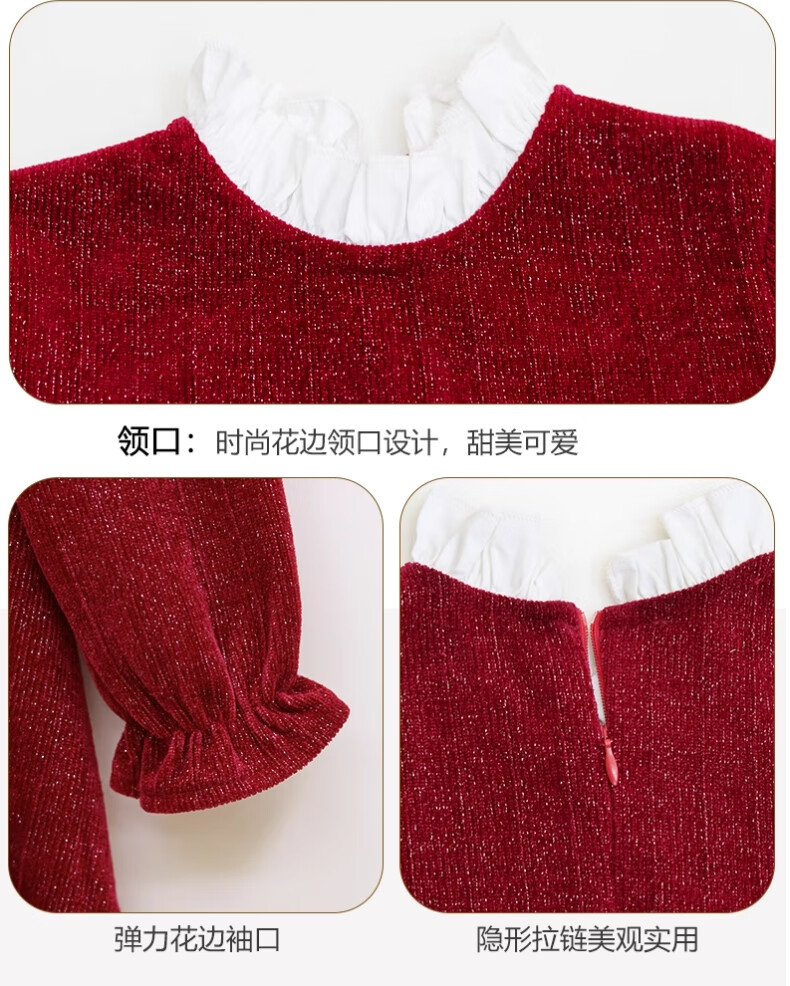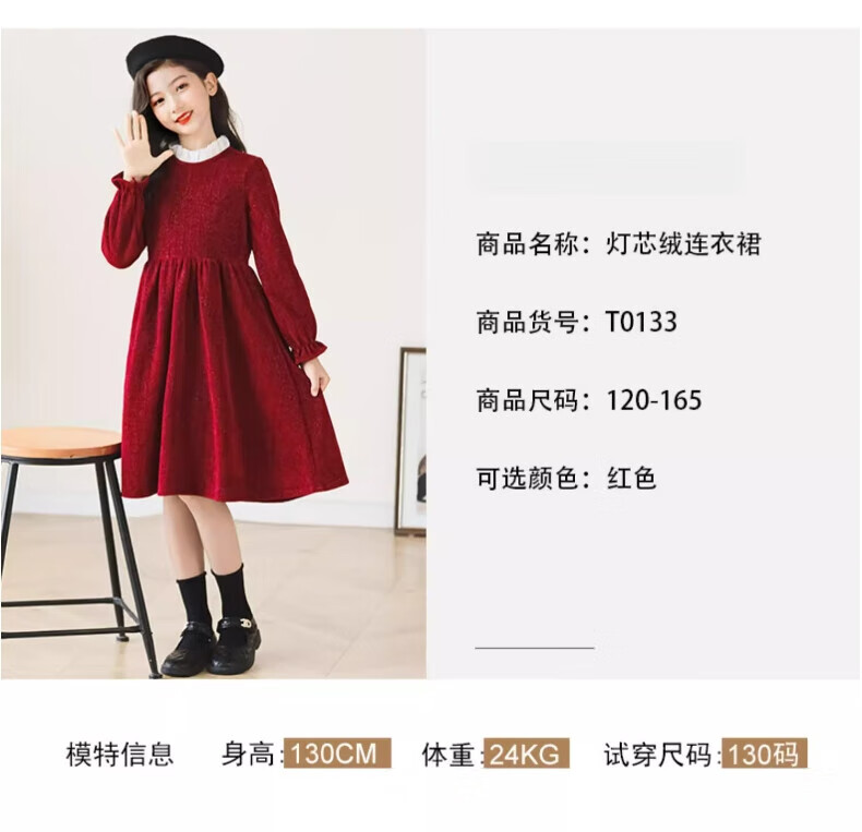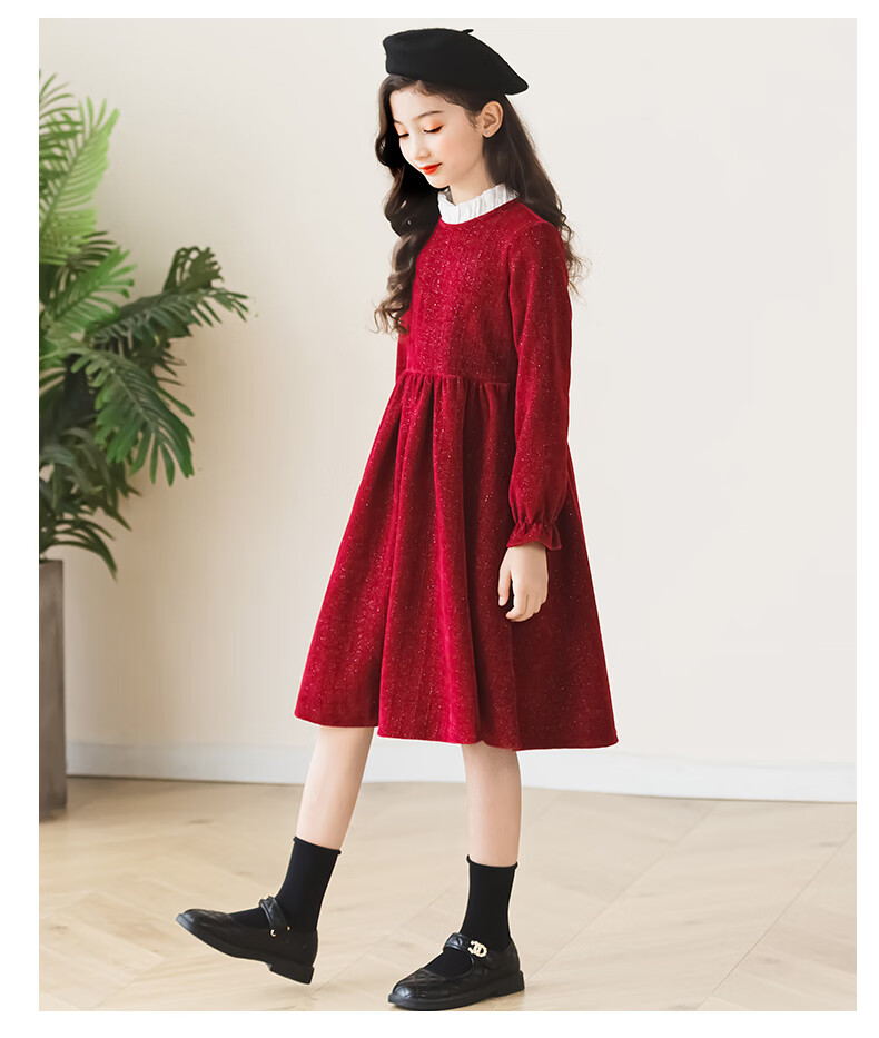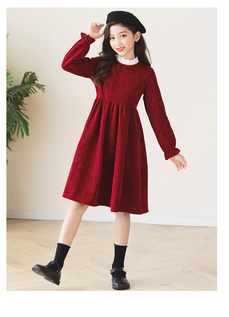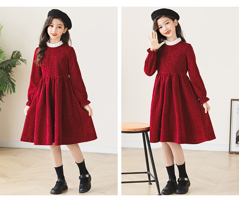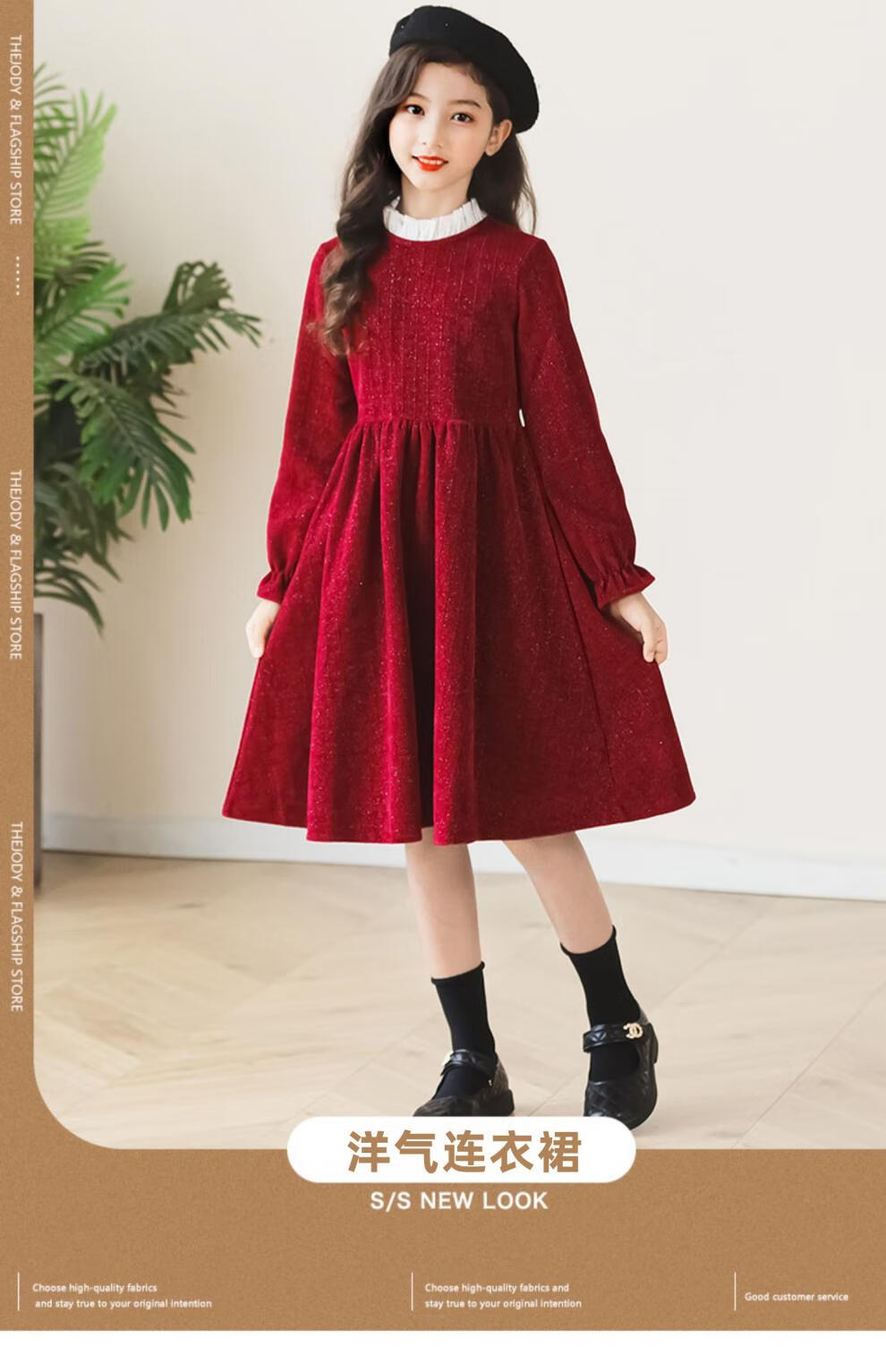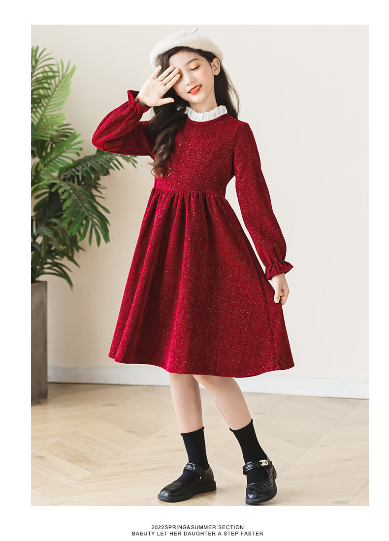 Pierre Cardin Children's Clothes Girls Dresses Early Spring Western Style Children's Princess Dresses for Big Children and Little Girls New Year's Dress Dresses Red 160