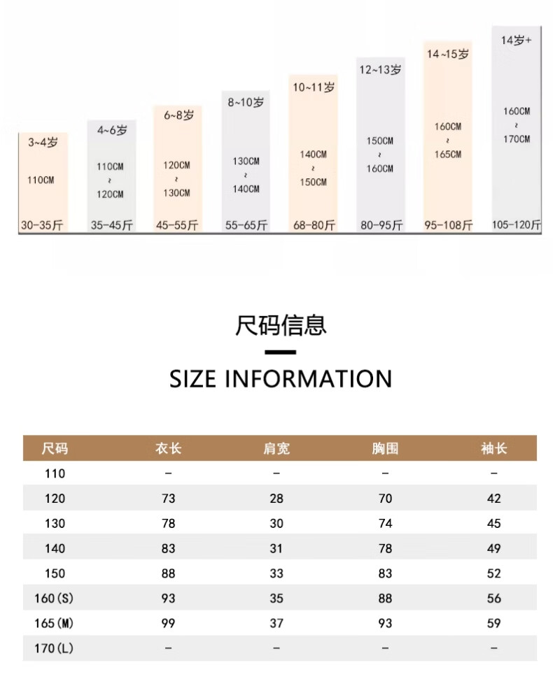 China (cm) 160-165/84-86 165-170 / 88-90 167-172 / 92-96 168-173 / 98-102 170-176 / 106-110