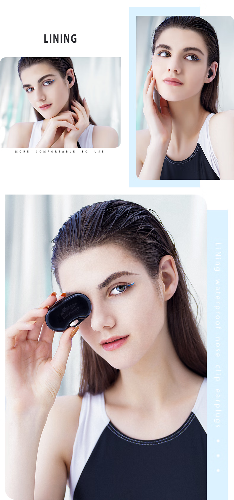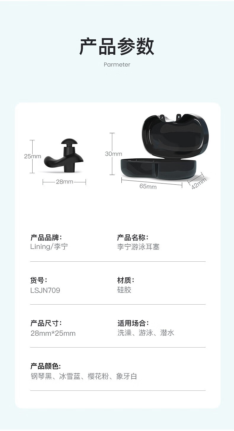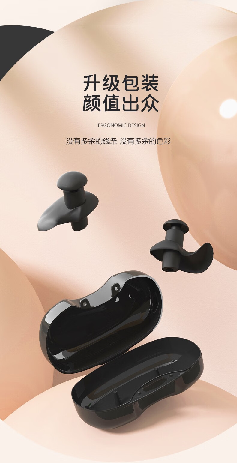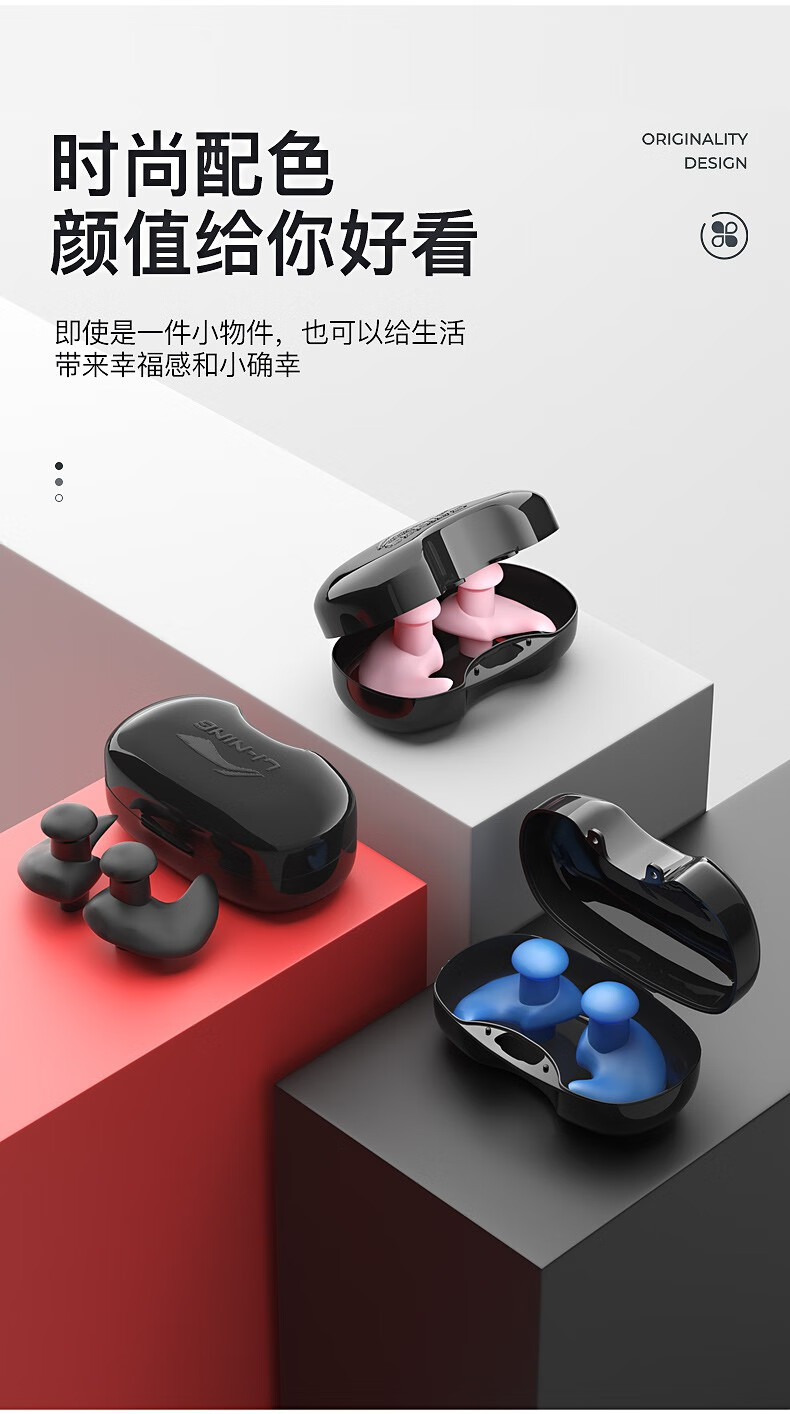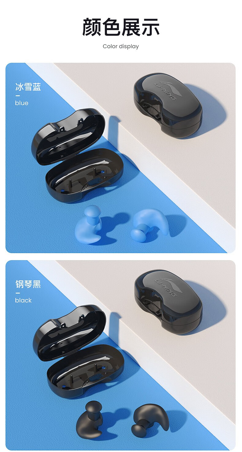 Li-Ning (LI-NING) swimming earplugs for adults, comfortable and plugged ears to prevent water from entering, bathing, washing hair, swimming, waterproof professional artifact, piano black, universal