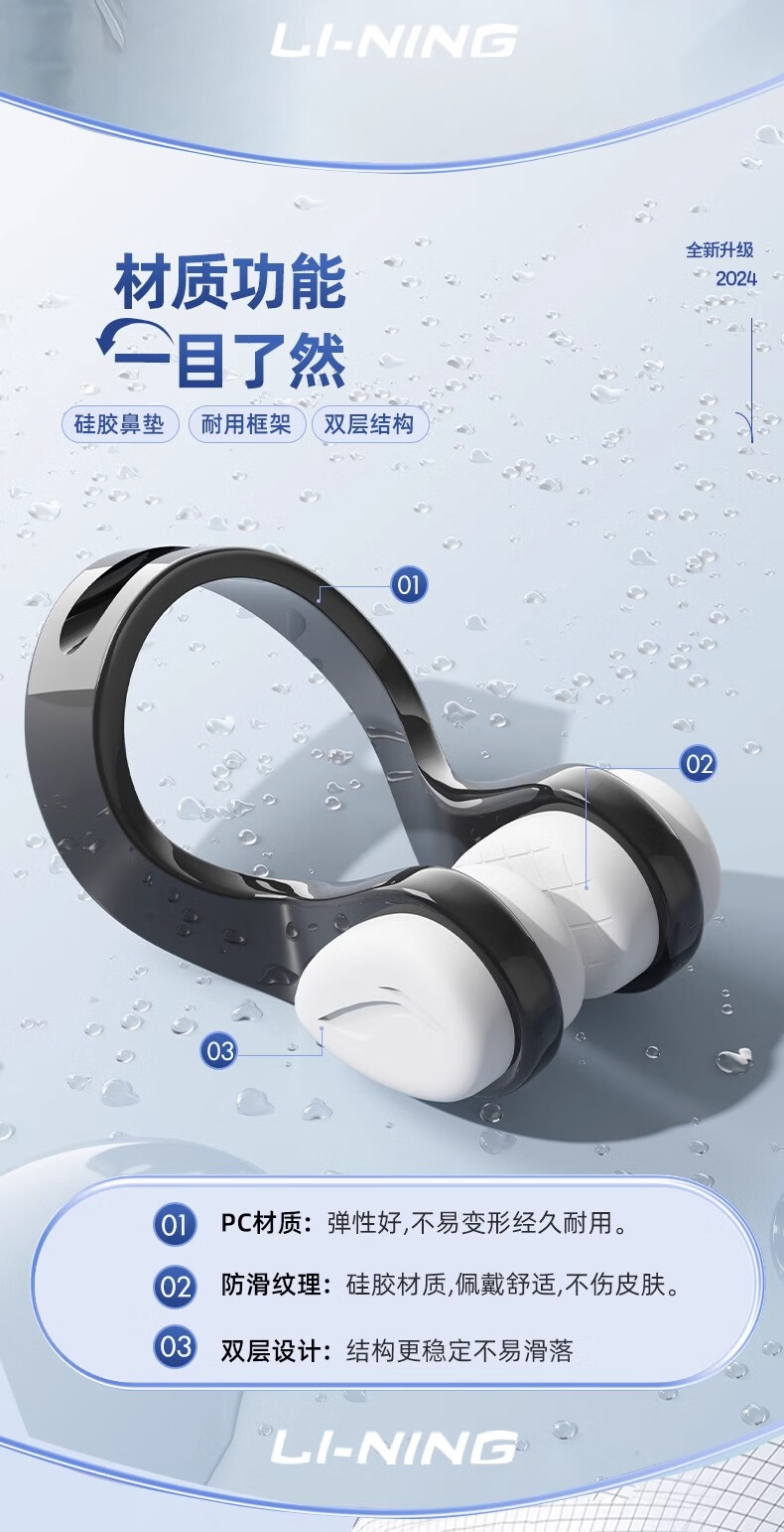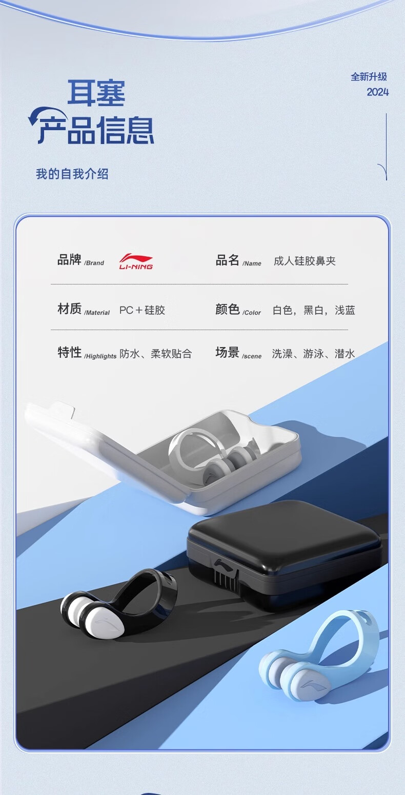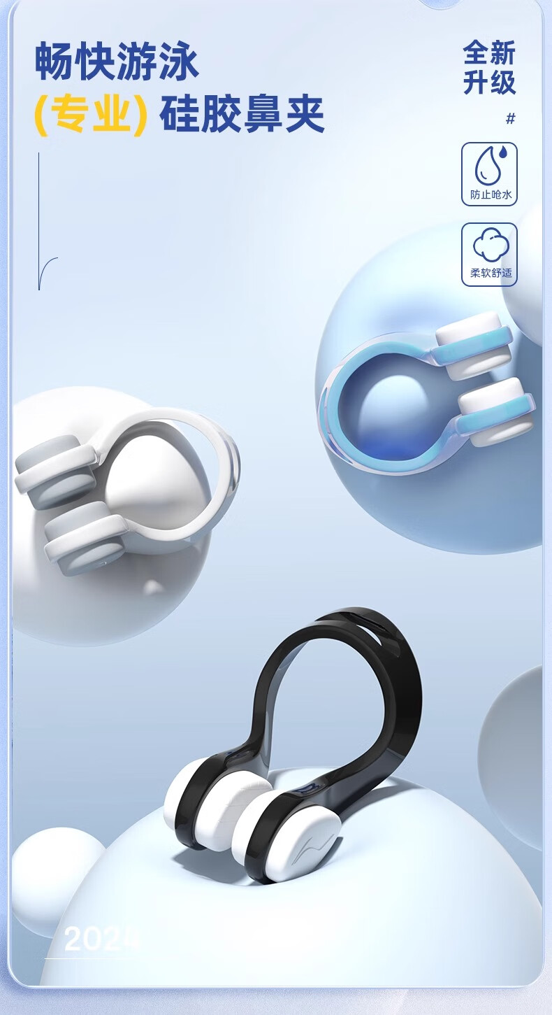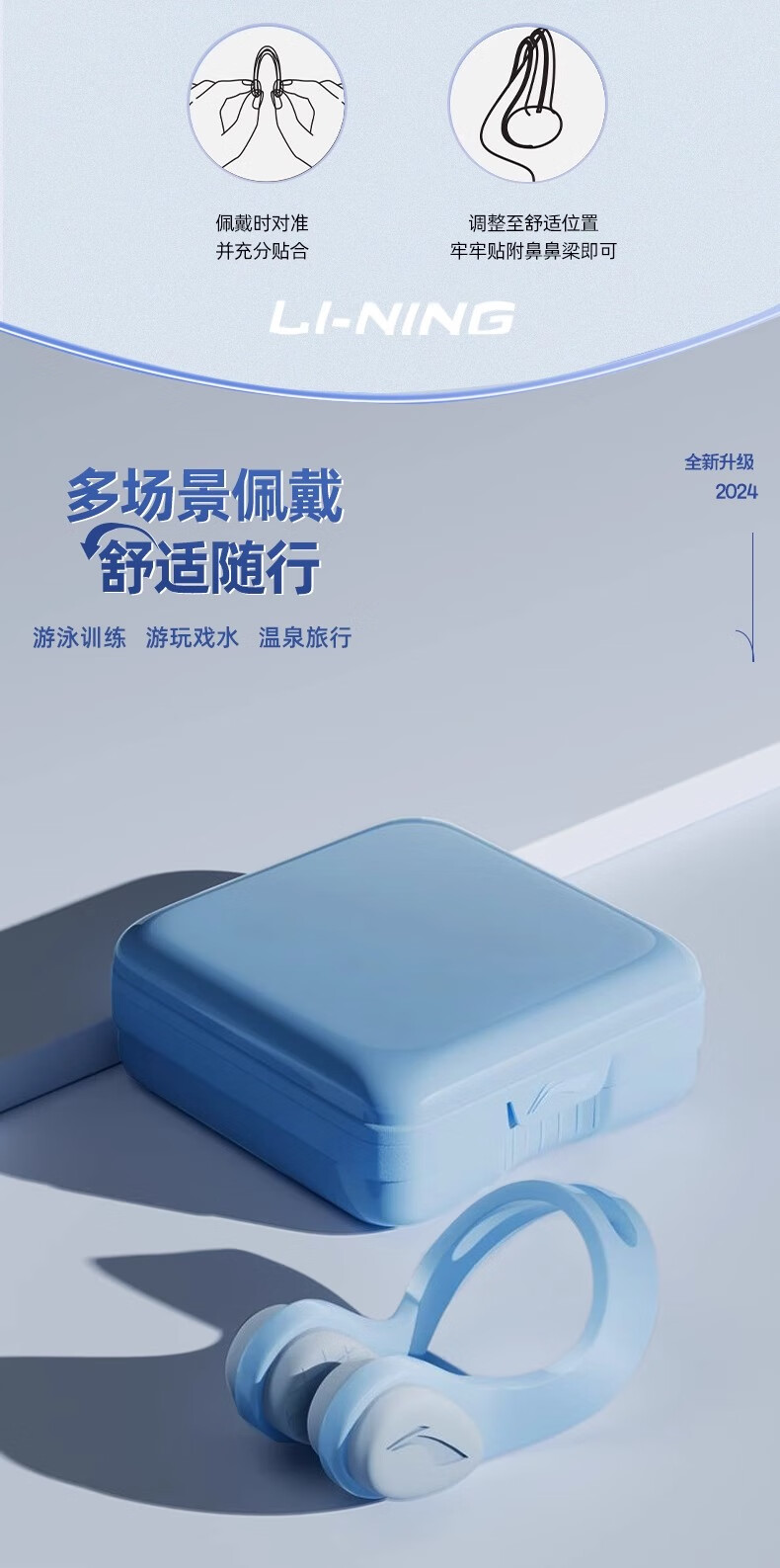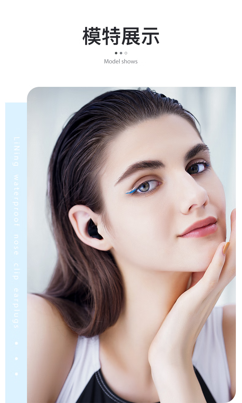 Li-Ning (LI-NING) swimming earplugs for adults, comfortable and plugged ears to prevent water from entering, bathing, washing hair, swimming, waterproof professional artifact, piano black, universal