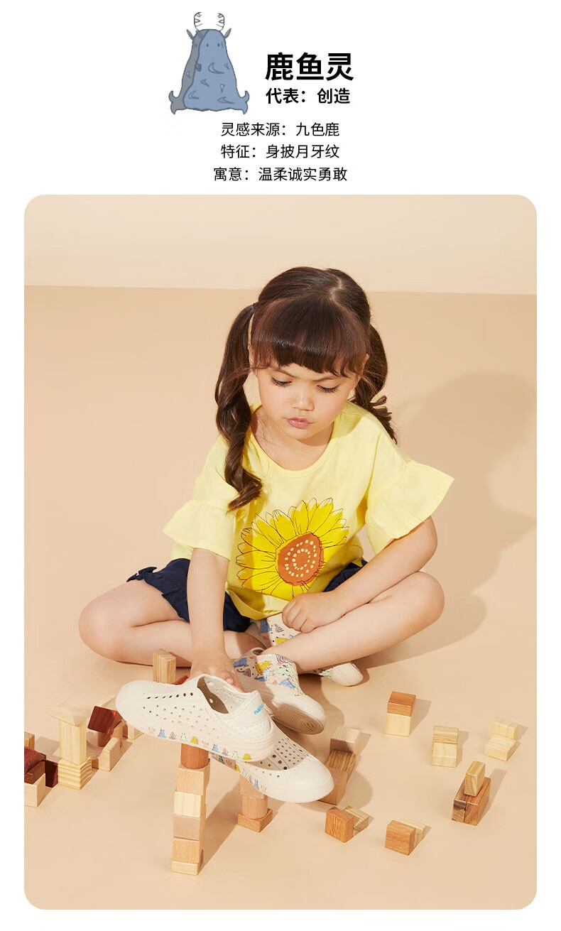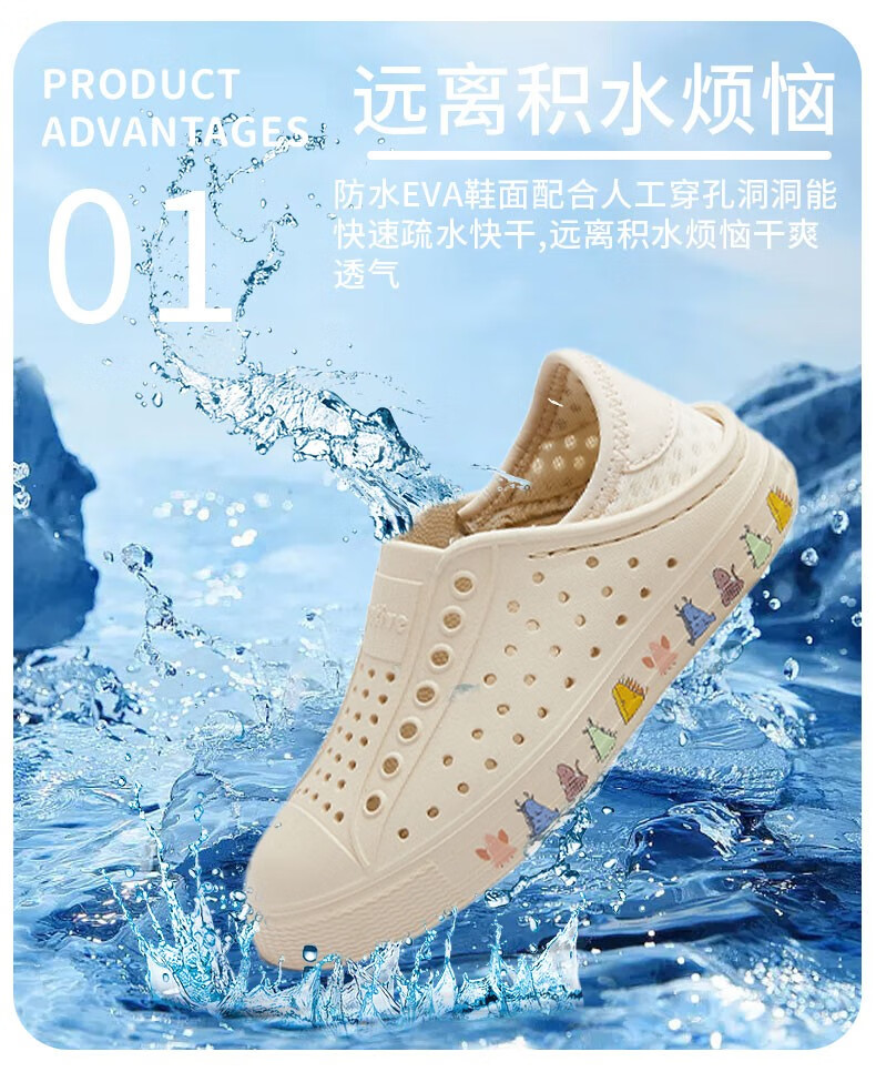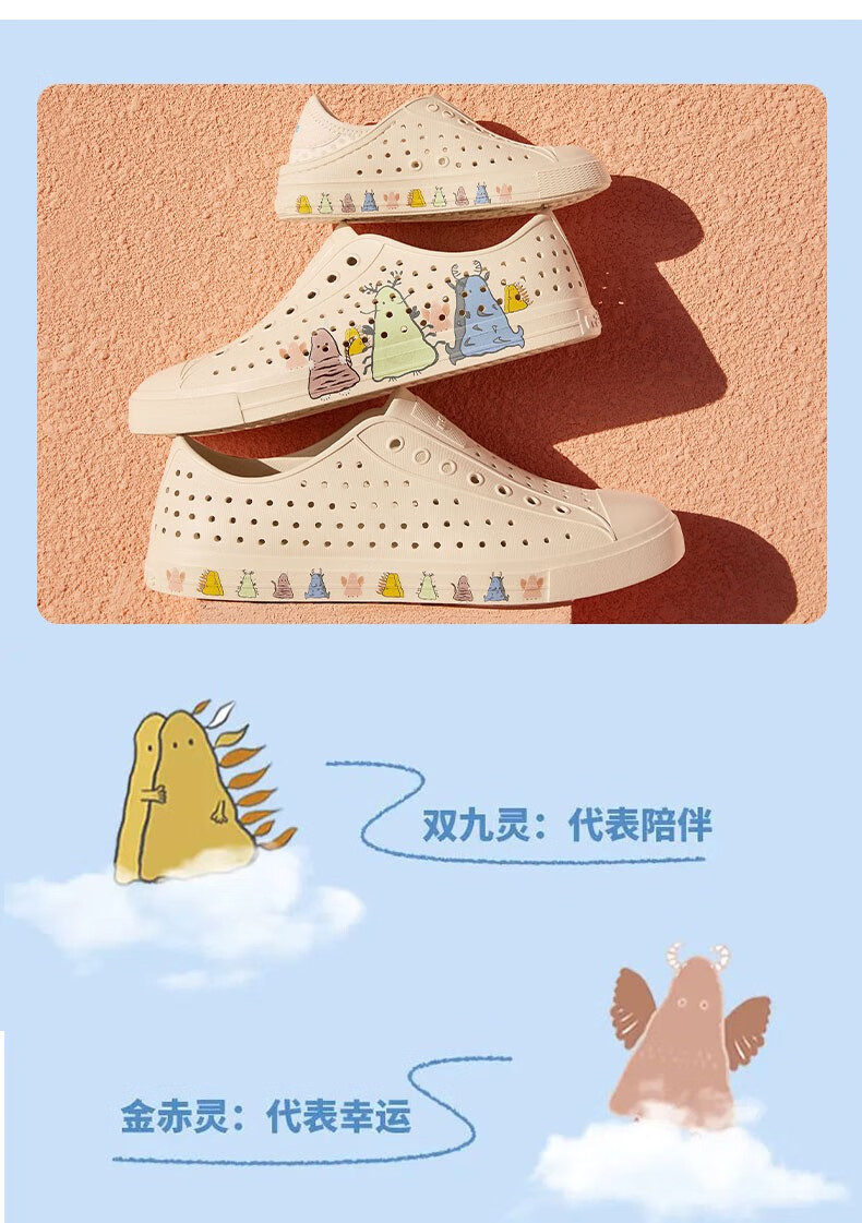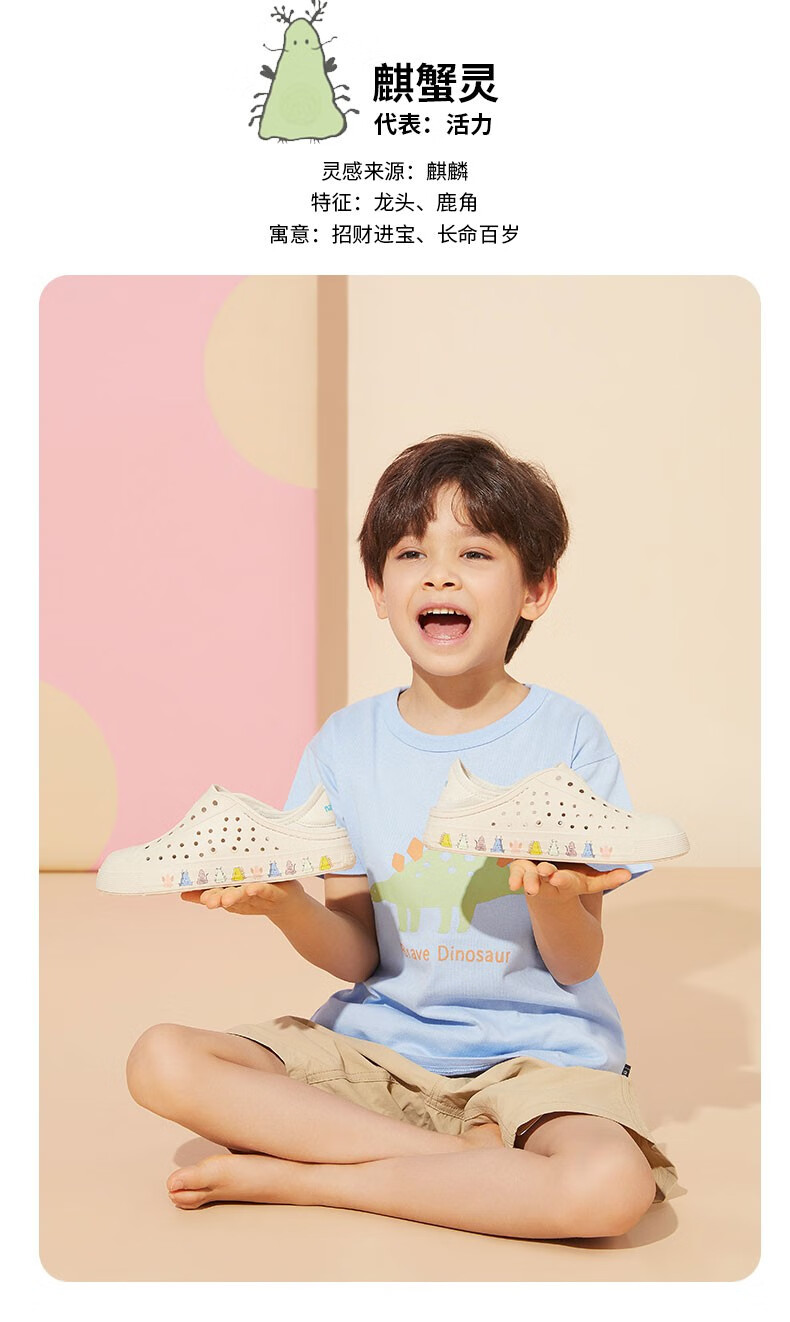 Native children's clogs Jeffery guardian spirit series printed outdoor beach sandals ultra-light breathable boys and girls shoes off-white | guardian spirit print 34 (children's version 2220mm)