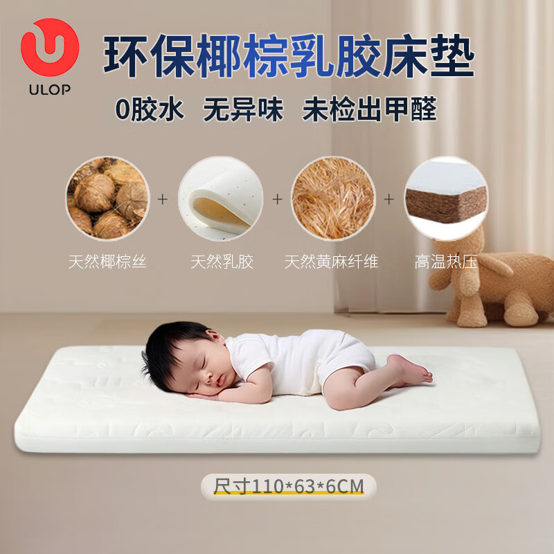 ULOP crib mattress newborn baby bb bed coconut palm mattress air fiber latex mattress double-sided coconut palm baby mattress 113*63*3CM