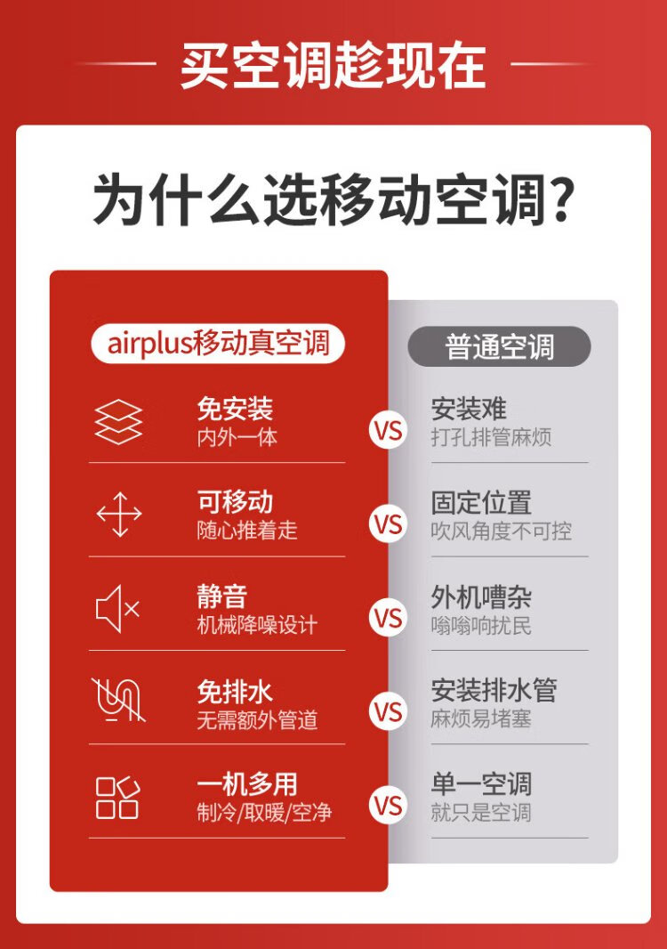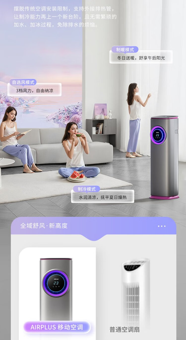 AIRPLUS (Airplus) mobile air conditioner, heating and cooling all-in-one machine, portable compressor refrigeration air conditioner, home kitchen living room rental room air conditioner, no outdoor unit, no drainage, no installation, small 1 horse, new upgrade of heating and cooling, light sound refrigeration