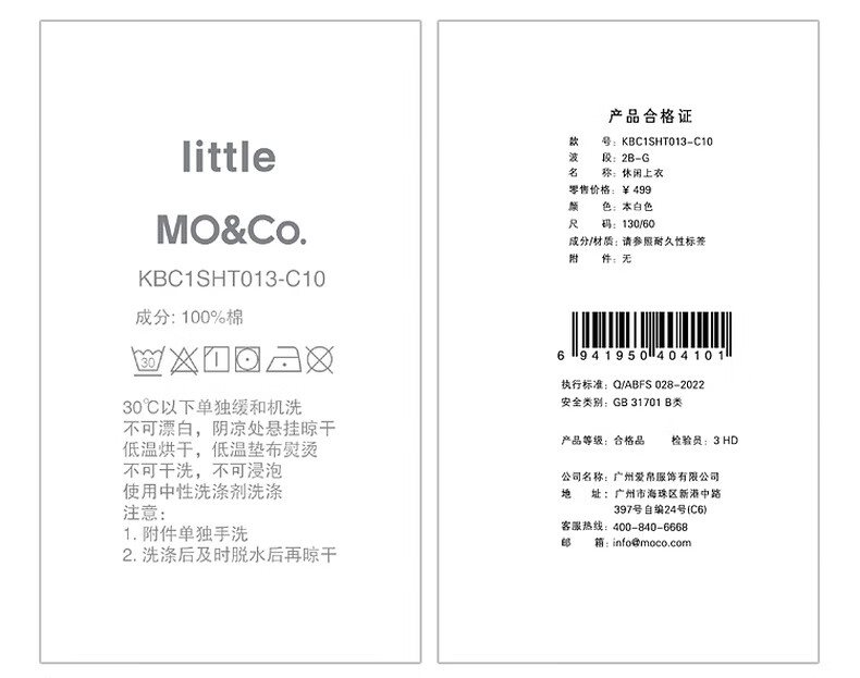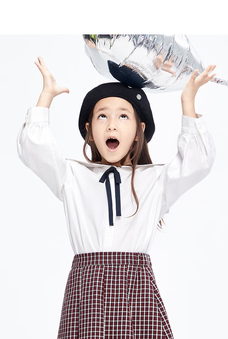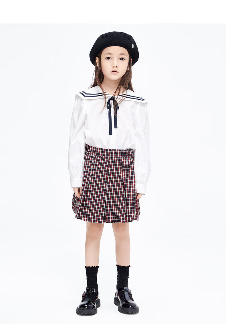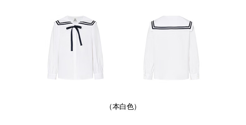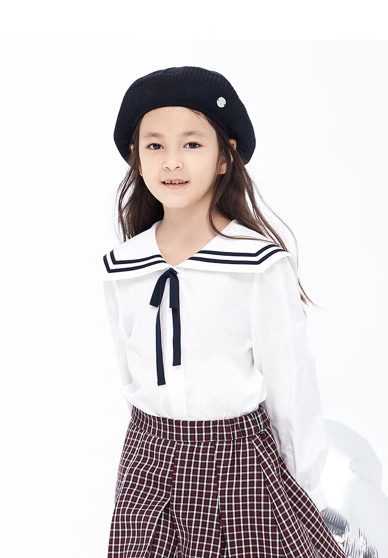 Little MO&Co. Children's Clothing Spring Clothes Girls Pure Cotton Navy Long Sleeve Shirt Children's Shirt Girls Tops White 120 120/56