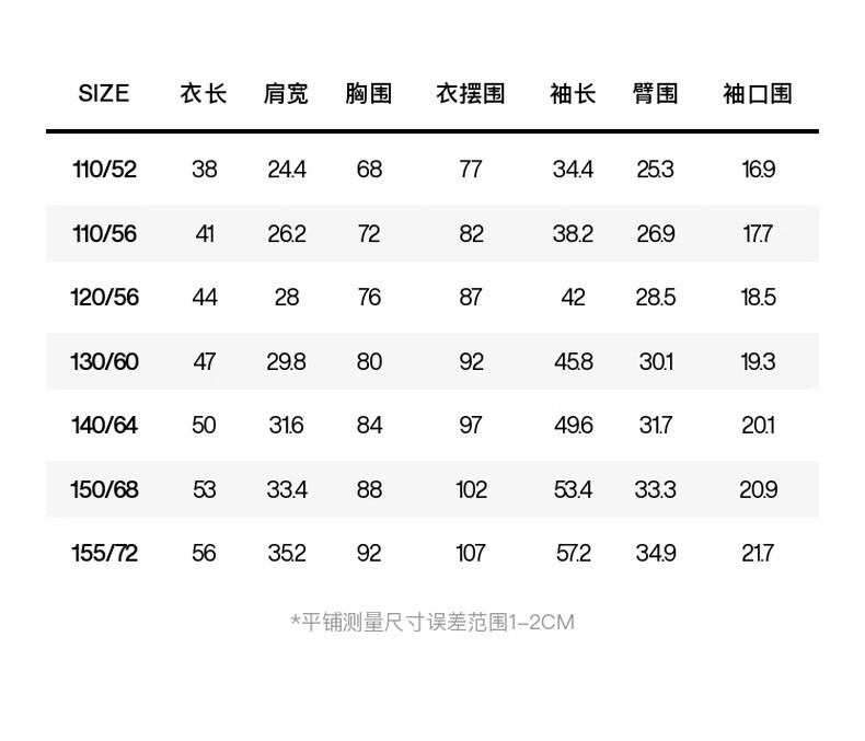 China (cm) 160-165/84-86 165-170 / 88-90 167-172 / 92-96 168-173 / 98-102 170-176 / 106-110