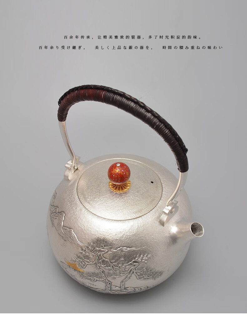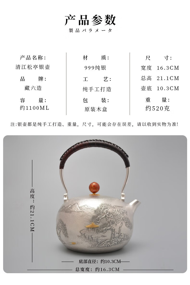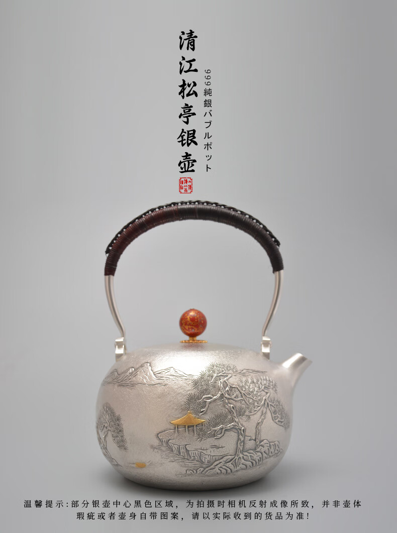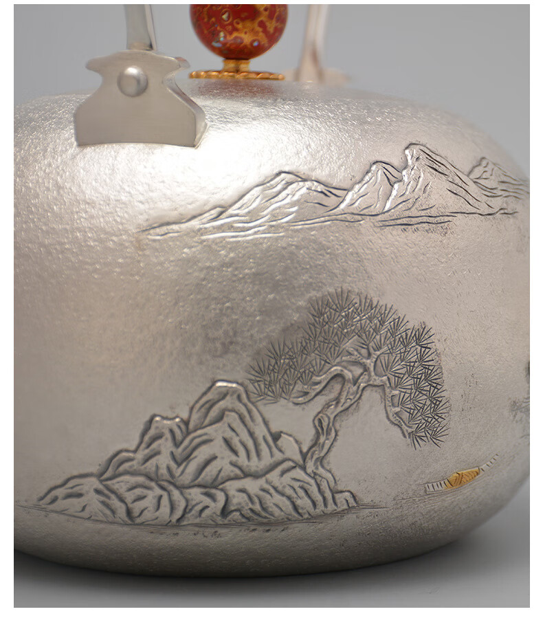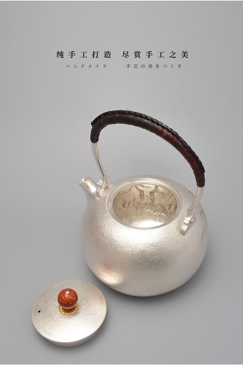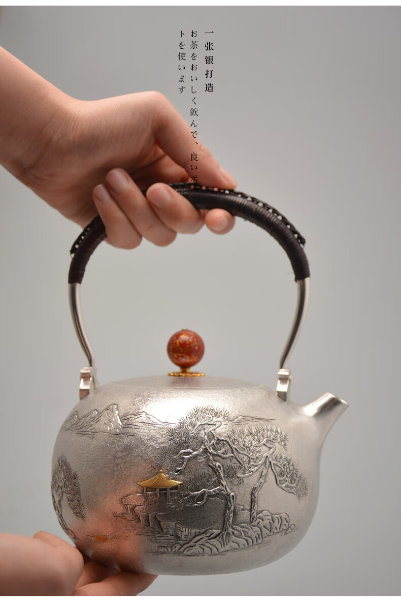 Tibetan six-made silver pot Qingjiang Songting silver pot Pure silver 999 kettle and tea kettle pure handmade high-end Japanese silver pot Qingjiang Songting 1100ml