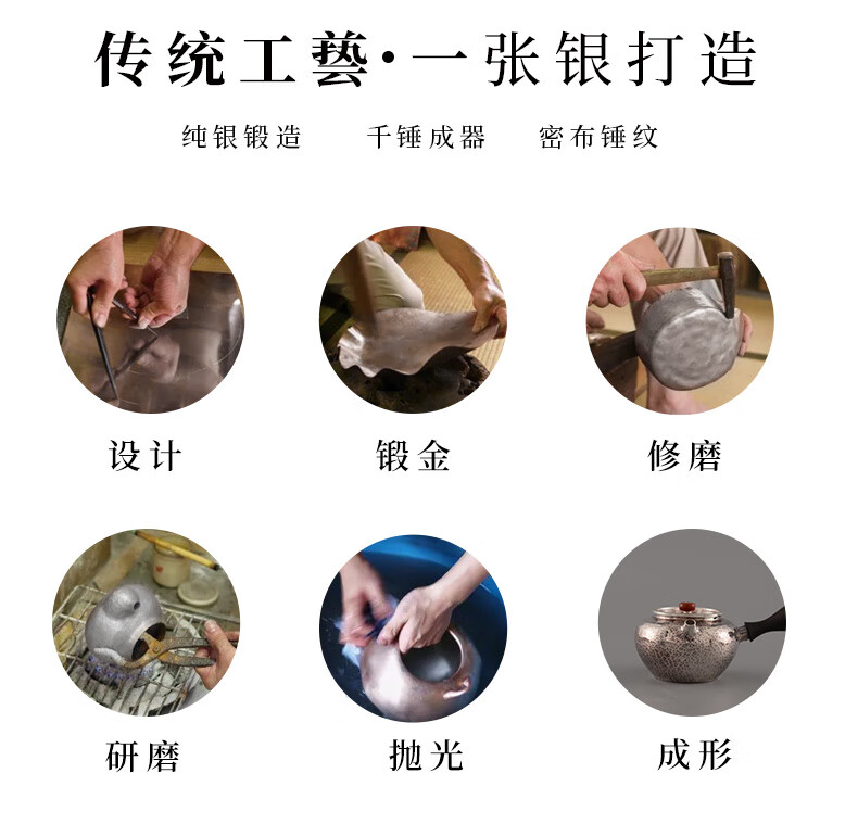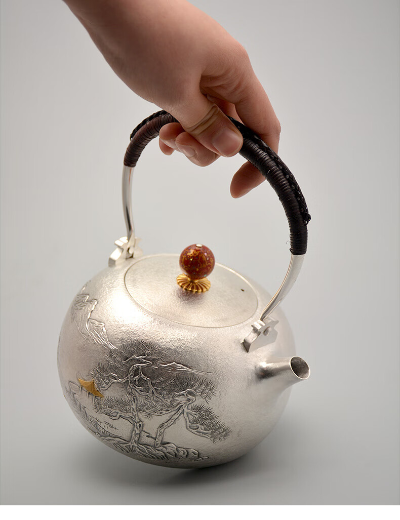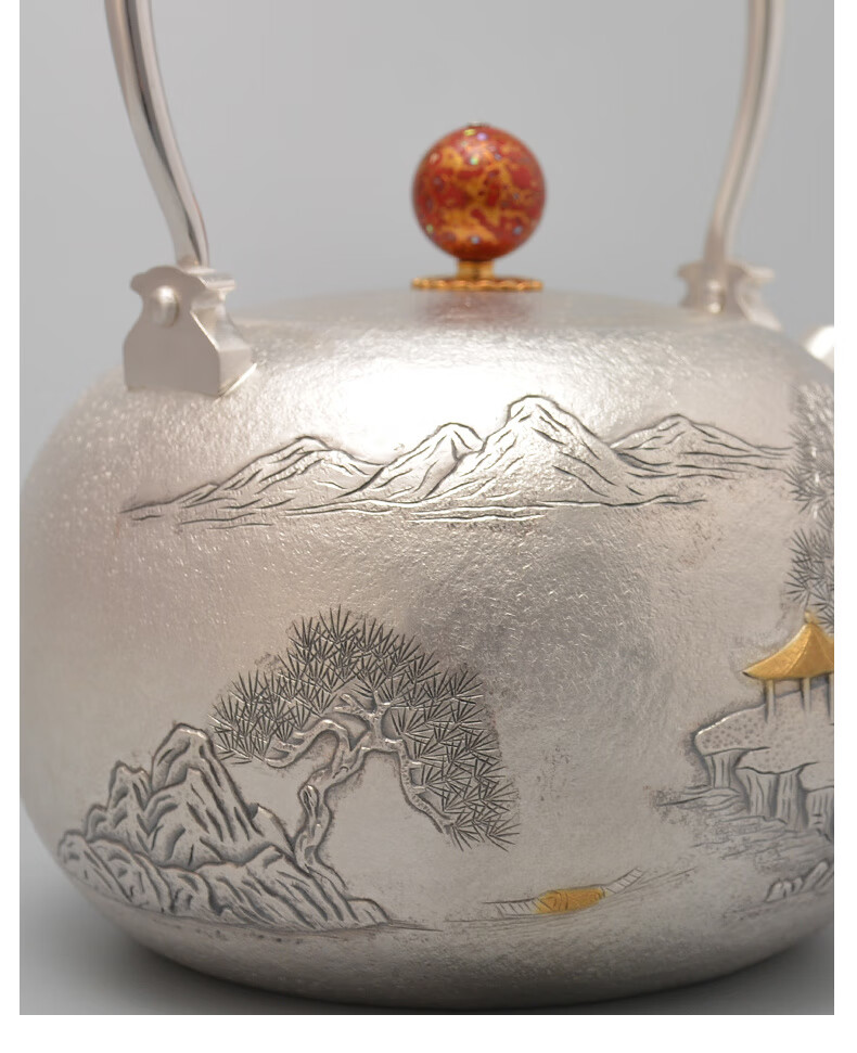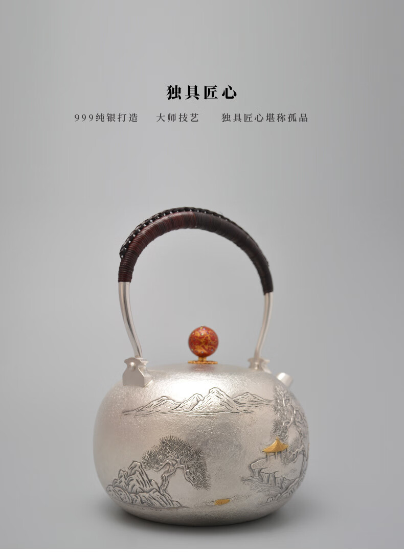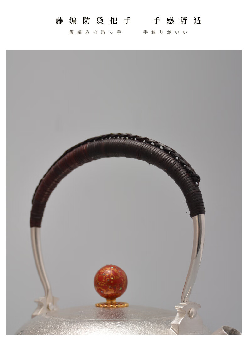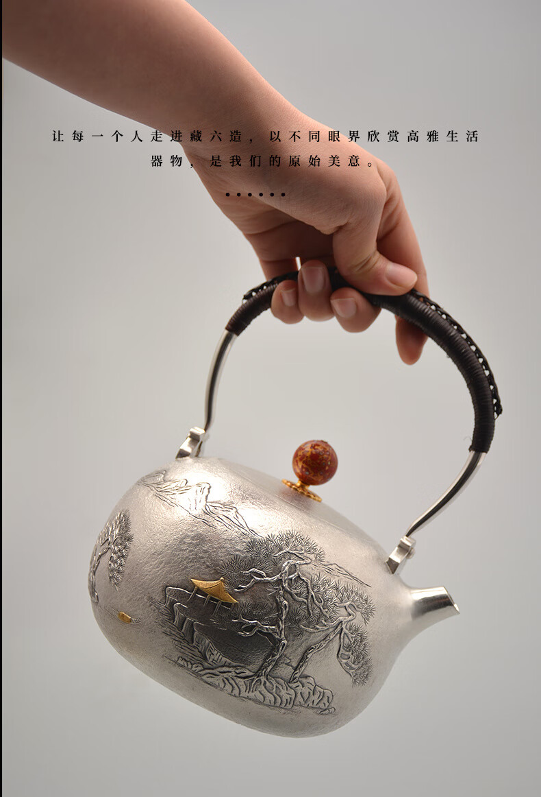 Tibetan six-made silver pot Qingjiang Songting silver pot Pure silver 999 kettle and tea kettle pure handmade high-end Japanese silver pot Qingjiang Songting 1100ml