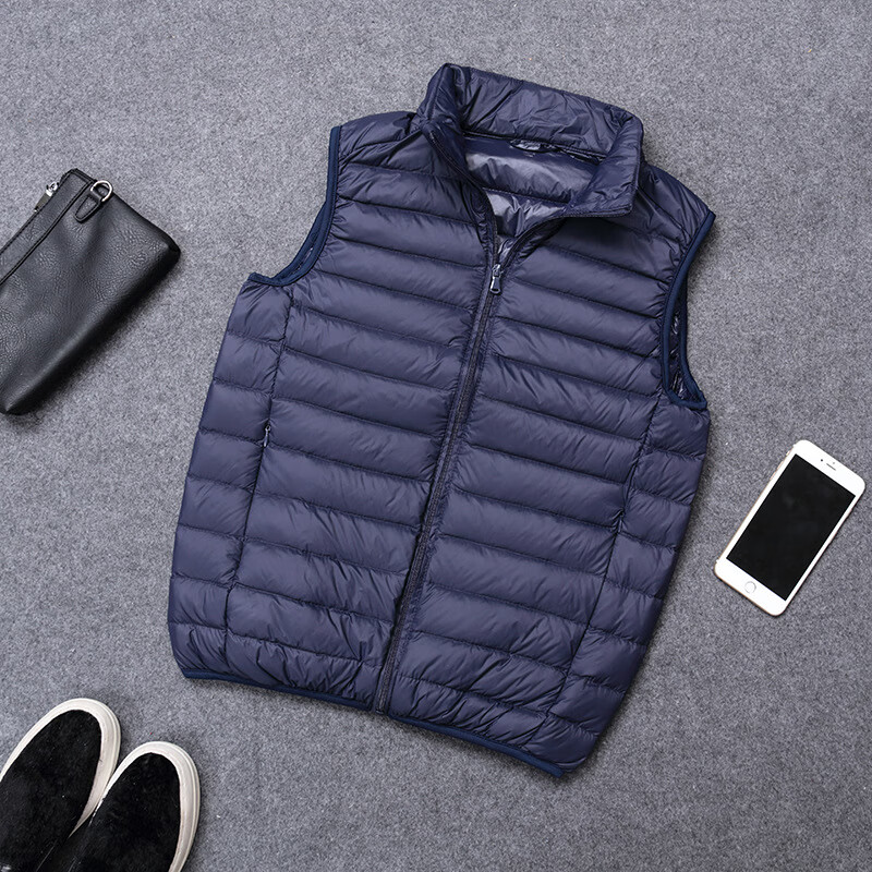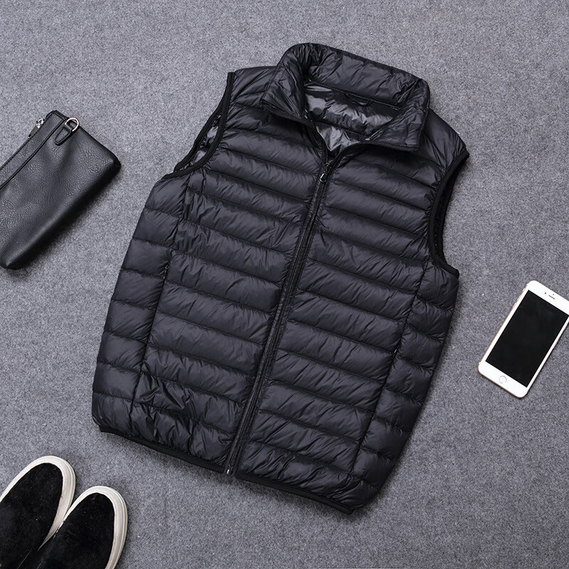 恒源祥轻薄羽绒袄男士背心短款立领大码薄款冬装轻便内外穿马甲速干吸汗 黑色 L