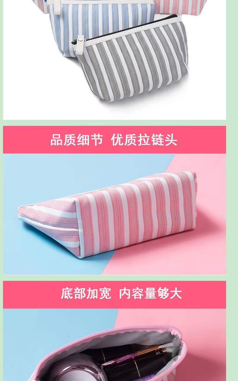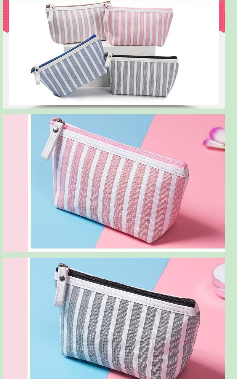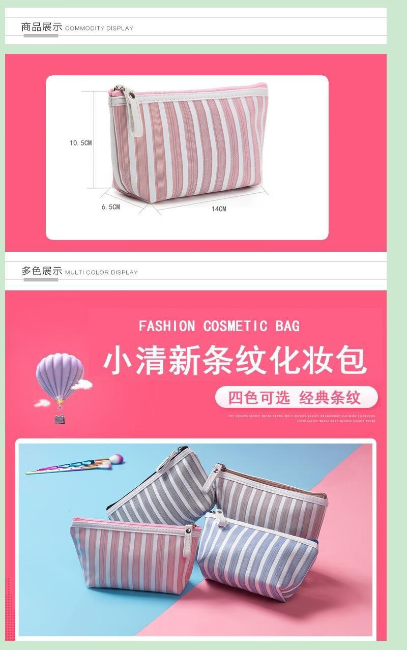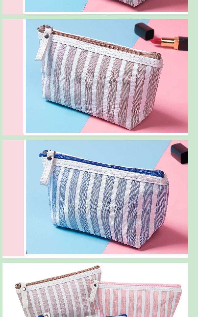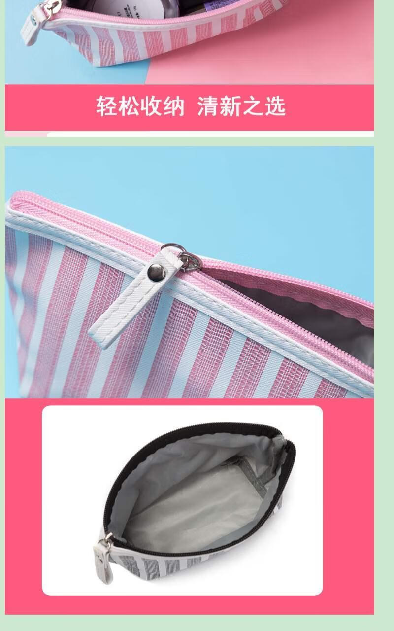 Whale Valley House Cosmetic Storage Bag Portable Travel Small Cosmetic Bag Student Bag Women's Carrying Waterproof Toiletries Storage Bag Pink Stripes