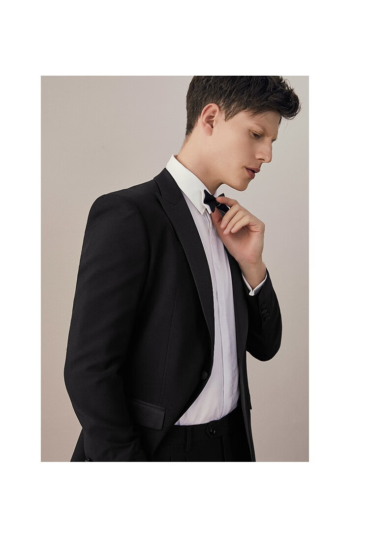 BUSYCON Tuxedo Groom Wedding Dress Men's Suit Wedding-style Black Formal Suit Three-piece Classic Black Dress Top + Pants 54 Reference weight 165 Jin Jin equals 0.5 kg -180 Jin Jin equals 0.5 kg