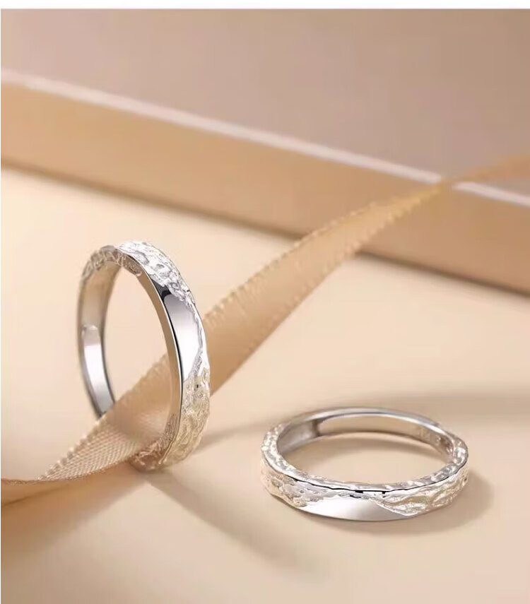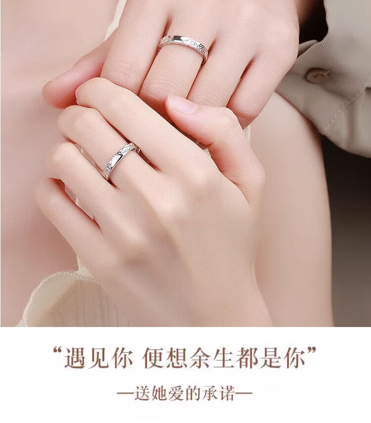 Mengqianxi 999 sterling silver couple ring, a pair of male and female rings, engagement ring, Valentine's Day birthday gift for girlfriend, Ruchu couple ring (live mouth), adjustable size