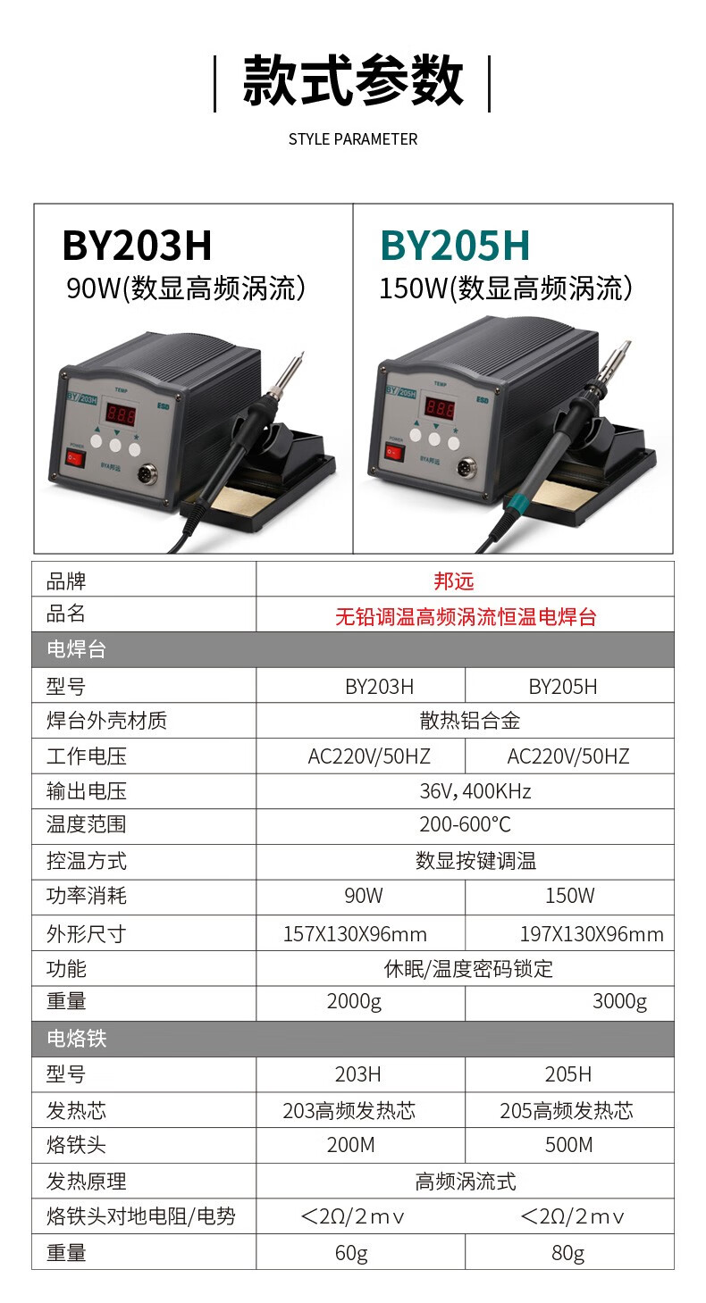 Bangyuan high frequency soldering station 203/205/208D digital display high power 150W industrial grade adjustable temperature constant temperature electric soldering iron 250W BY205H soldering station 150W+3C+K+tube tin