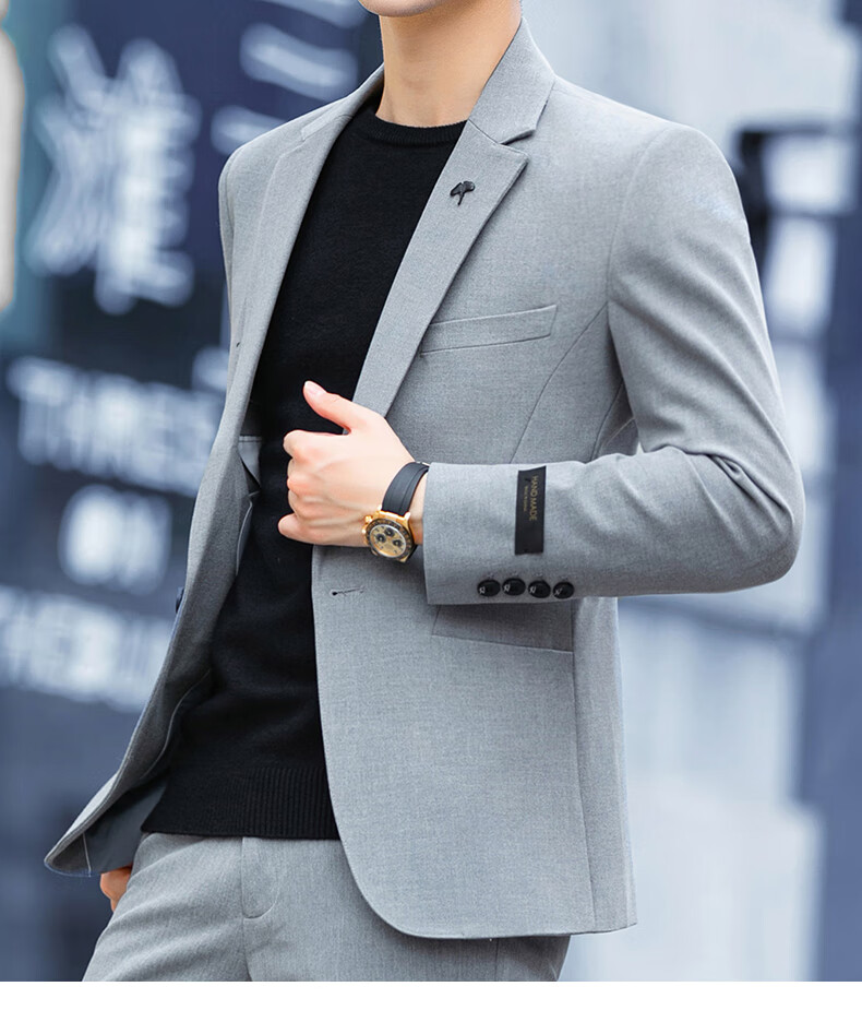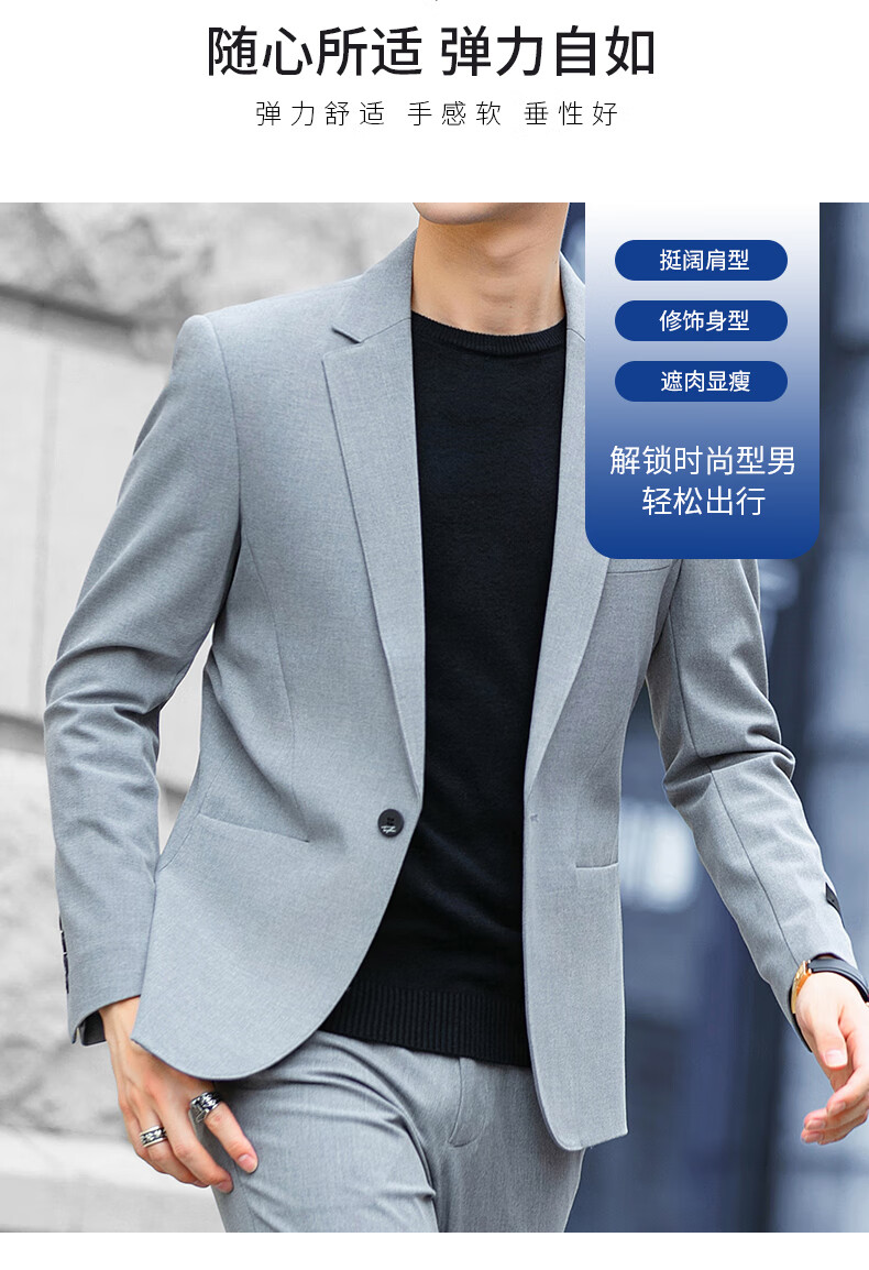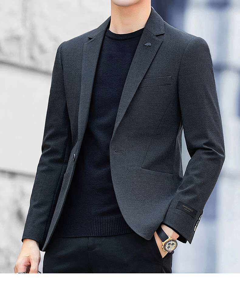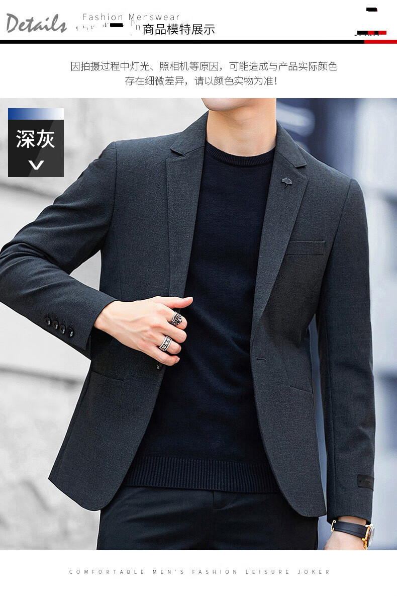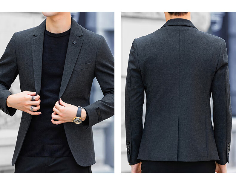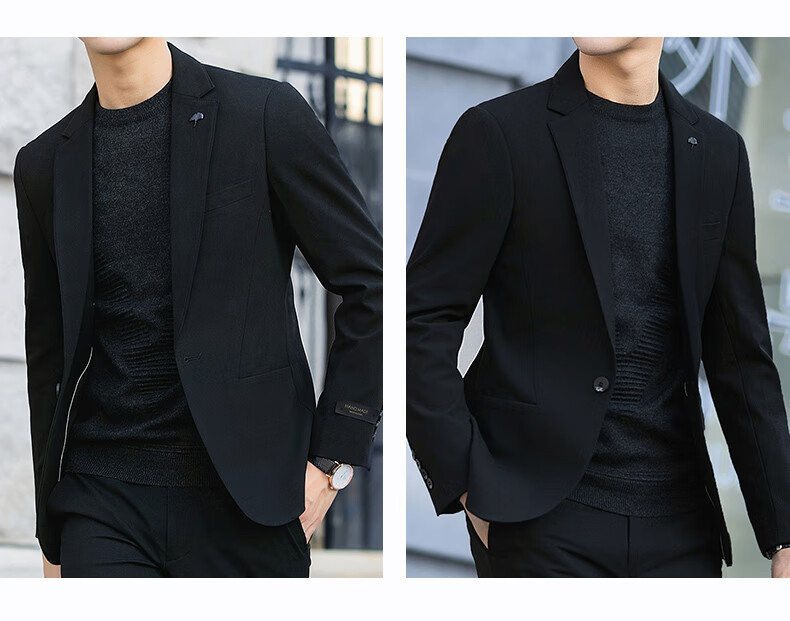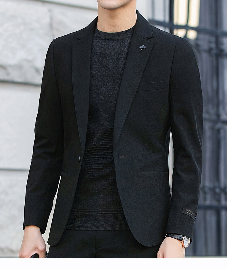 Luo Meng high-end casual suit men's trendy slim blazer business wedding groomsmen dress youth black single suit 2XL (it is recommended to take one size larger for a slim fit)