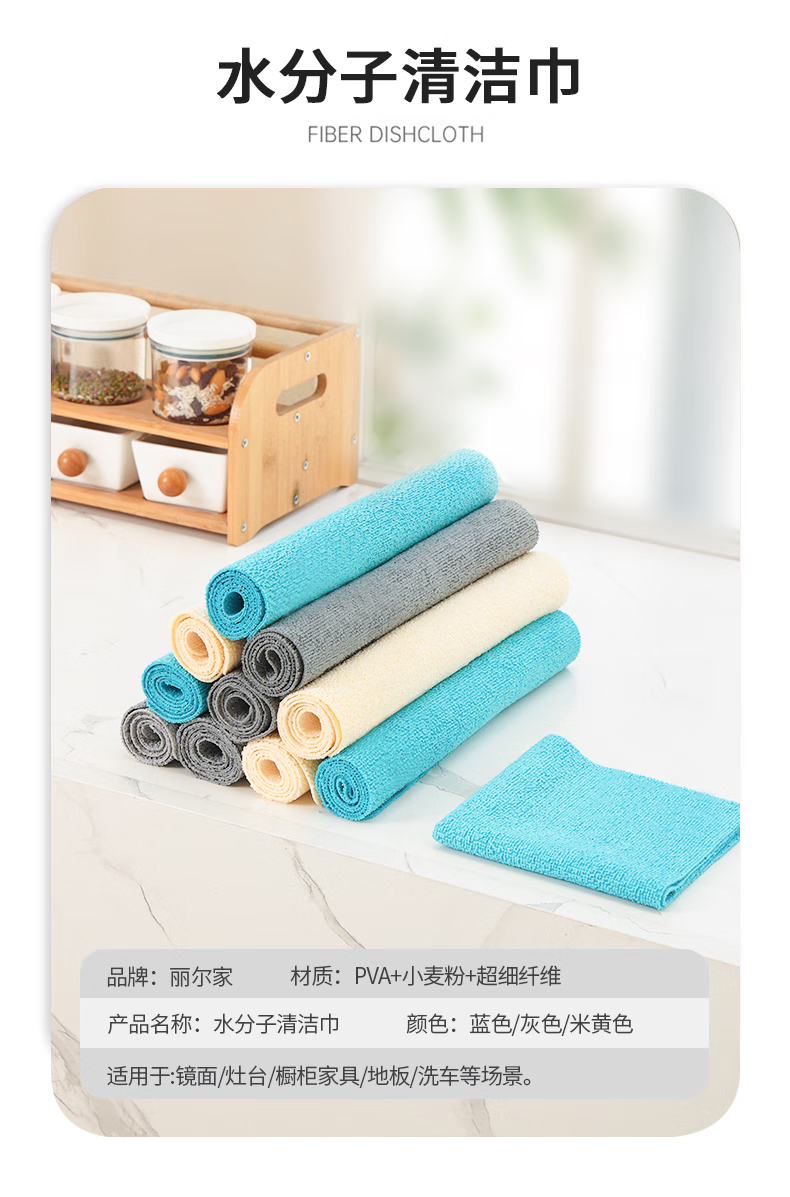Lier's water molecule rag has strong water absorption for dishwashing and does not shed lint. It is suitable for mirror cleaning. Multifunctional cleaning cloth. Blue 17*17CM (9 packs)
