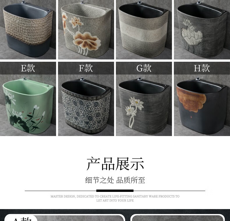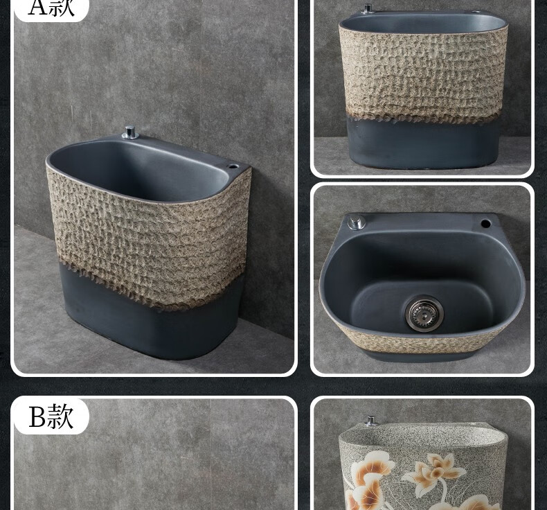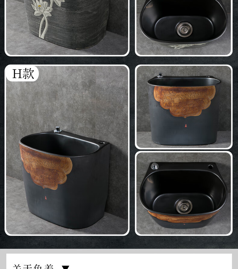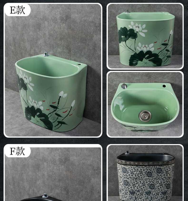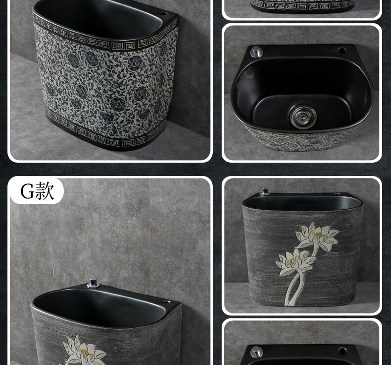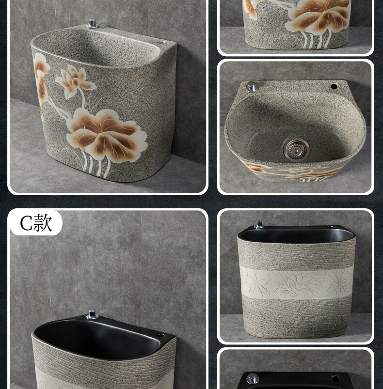 Xiangming retro art mop pool outdoor courtyard mop pool home bathroom balcony mop pool mop tank mop basin retro blue and white mop pool + drain