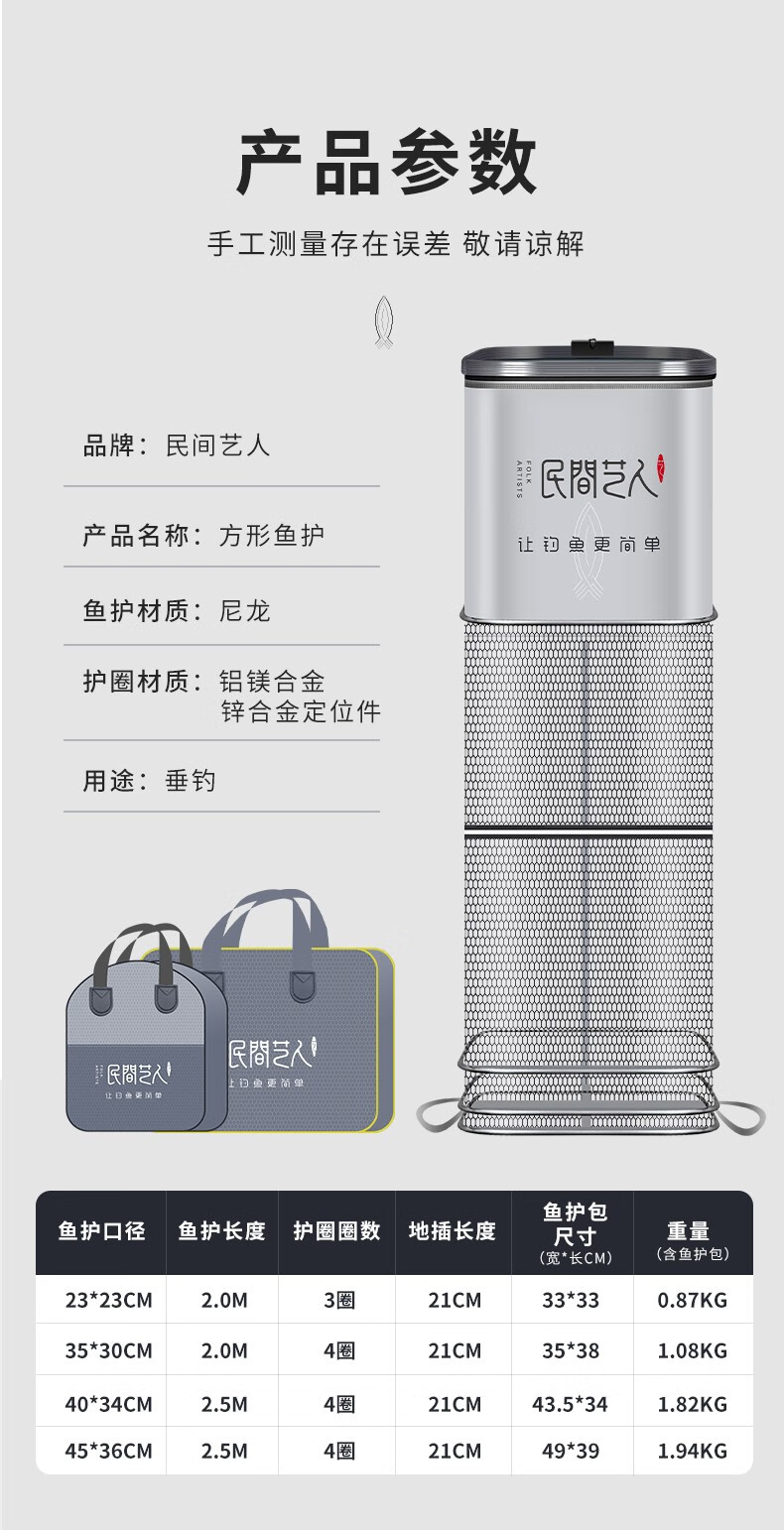 Folk artist square fish protection rubber-coated anti-hanging quick-drying fishing protection fishing net bag steel ring reinforced fish protection net bag large square fish protection 40x34*2.5 meters + bag
