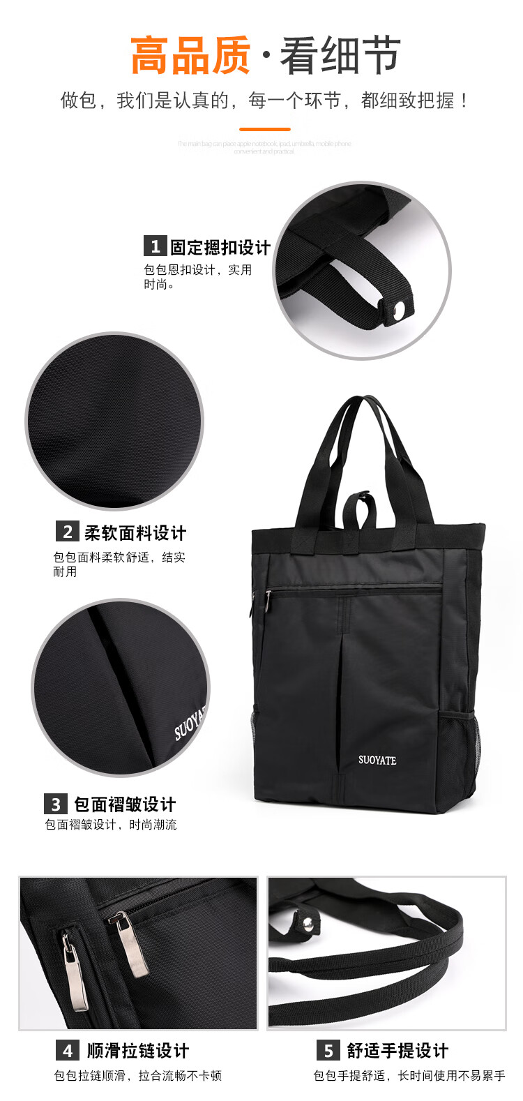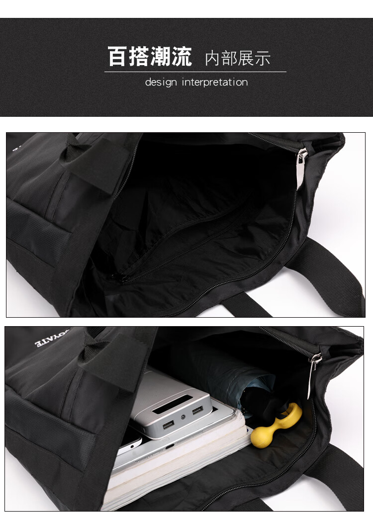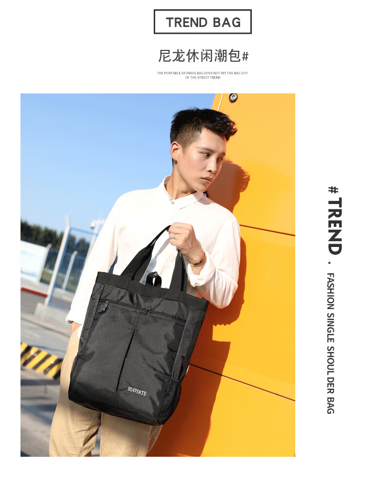 MZXM imported quality new nylon portable document bag men's canvas business bag large capacity casual vertical style trendy black large size strapless