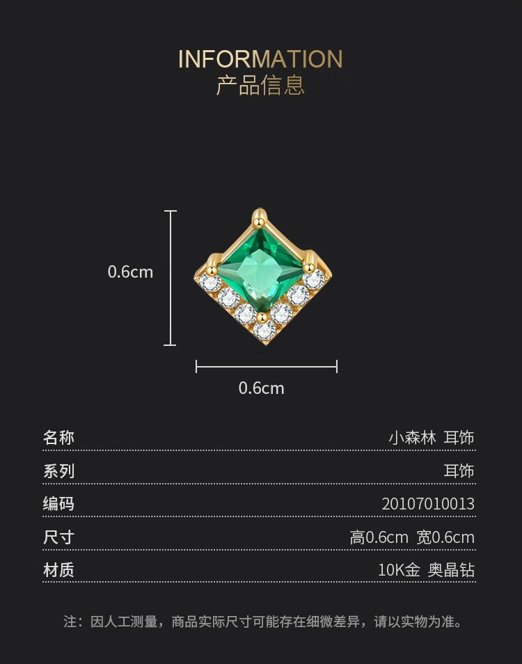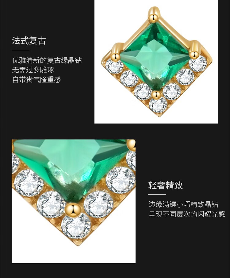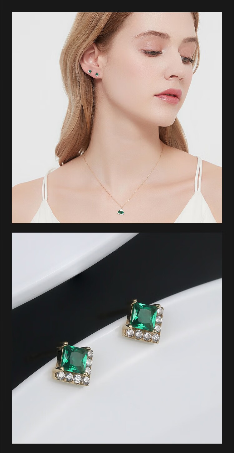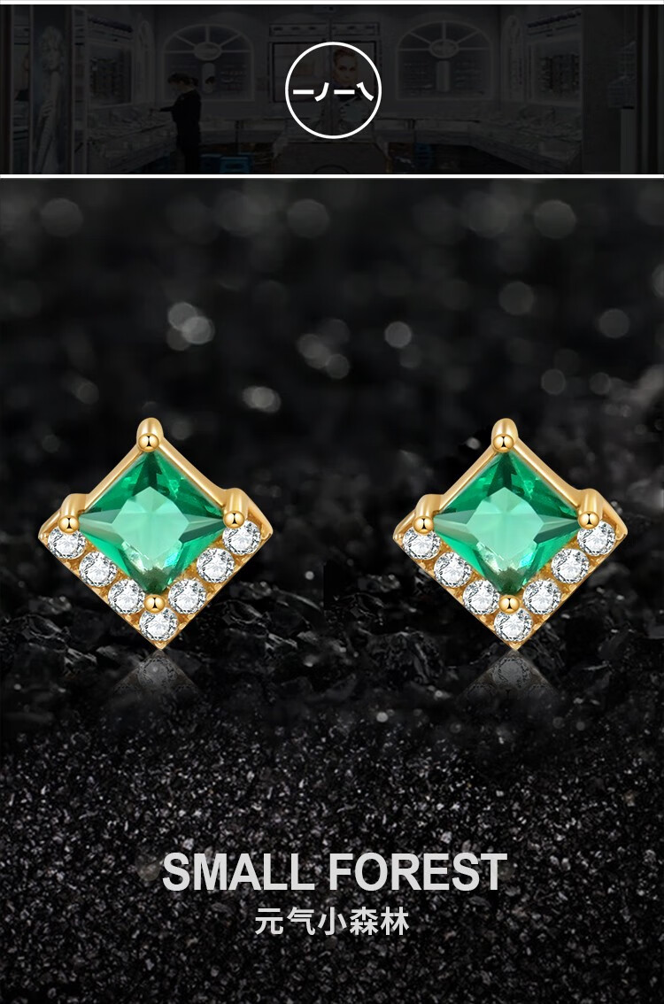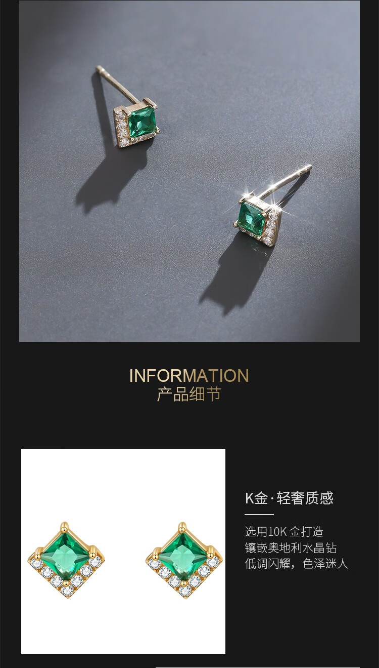 Small forest green earrings for women 10K gold earrings Austrian crystal rhombus retro earrings 20107010013