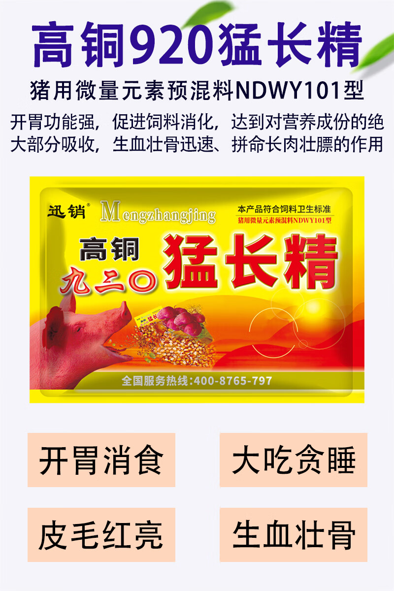 Fast selling high-copper 920 ferocious beasts are used to fatten pigs to gain weight and pull the skeleton to promote long fat pig powder 920 feed additives 10 bags, get 2 bags/real hair 12 bags
