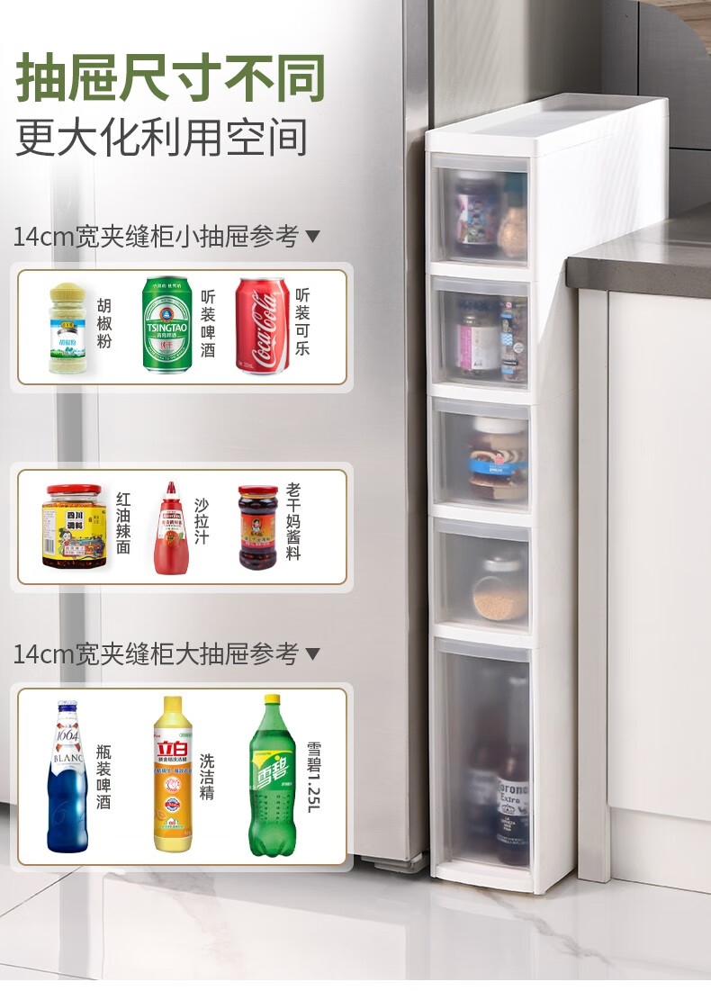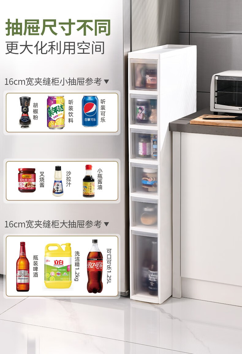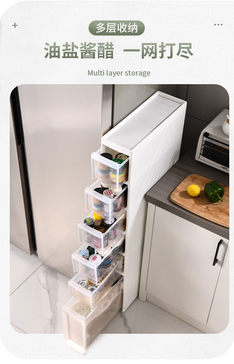 KAMAN storage gap ultra-narrow cabinet side gap refrigerator bathroom kitchen narrow gap storage storage rack side household 20cm width 3 layers