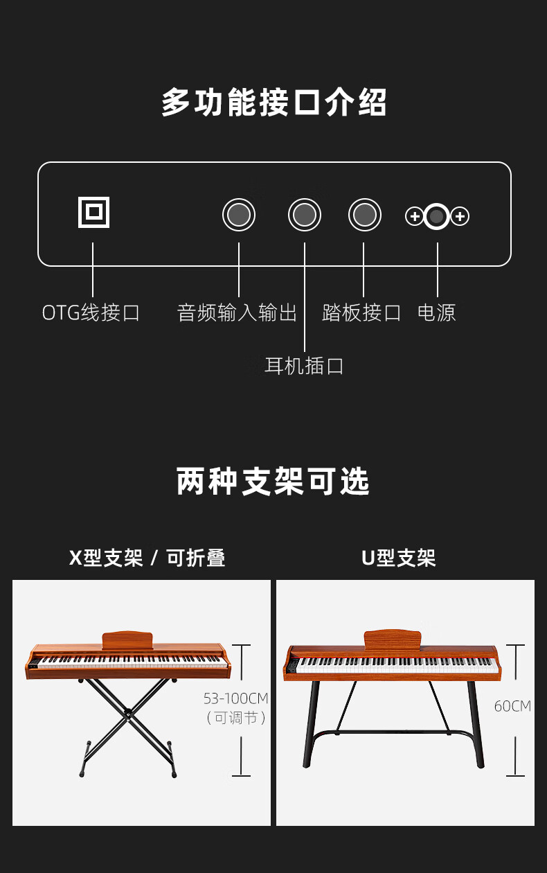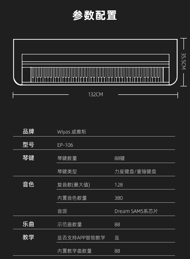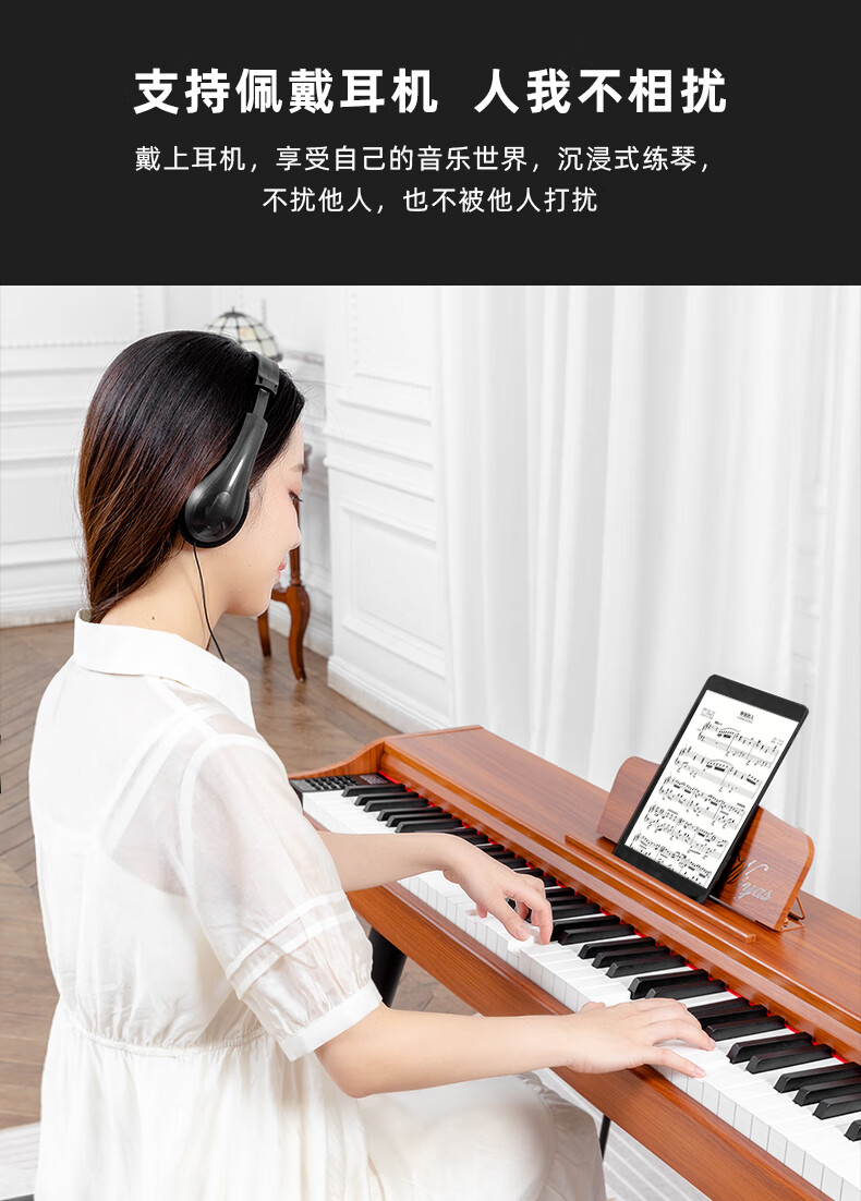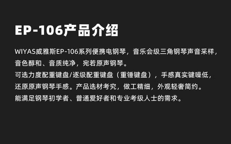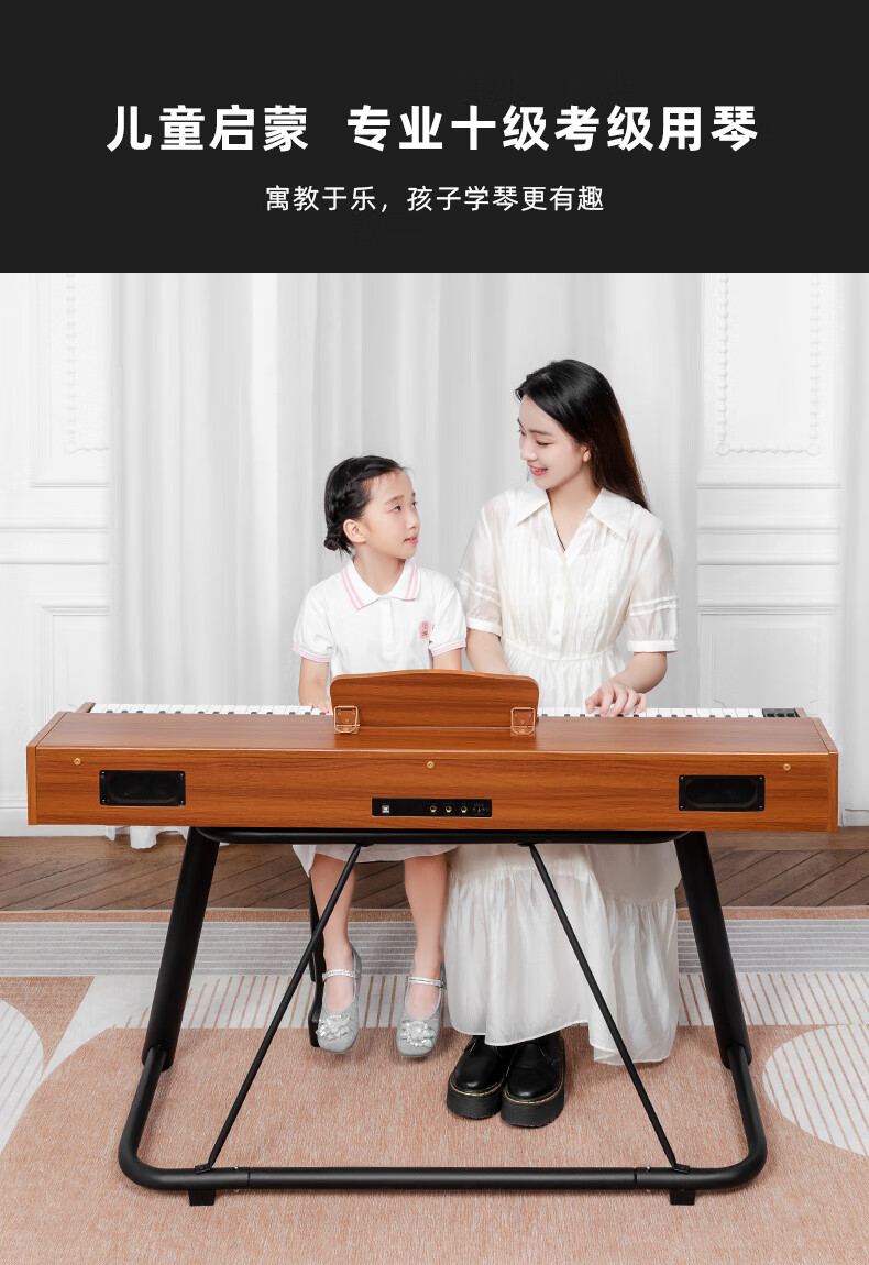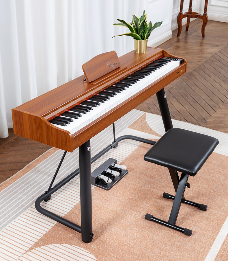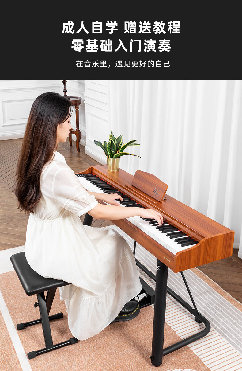 Wiyas EP106 Electric Piano 88 Keys Heavy Hammer Portable Home Beginner Professional Digital Electronic Piano Beginner - Light Brown Color + Power Keyboard + X Stand Standard Configuration + Three Pedestals + Gig Bag
