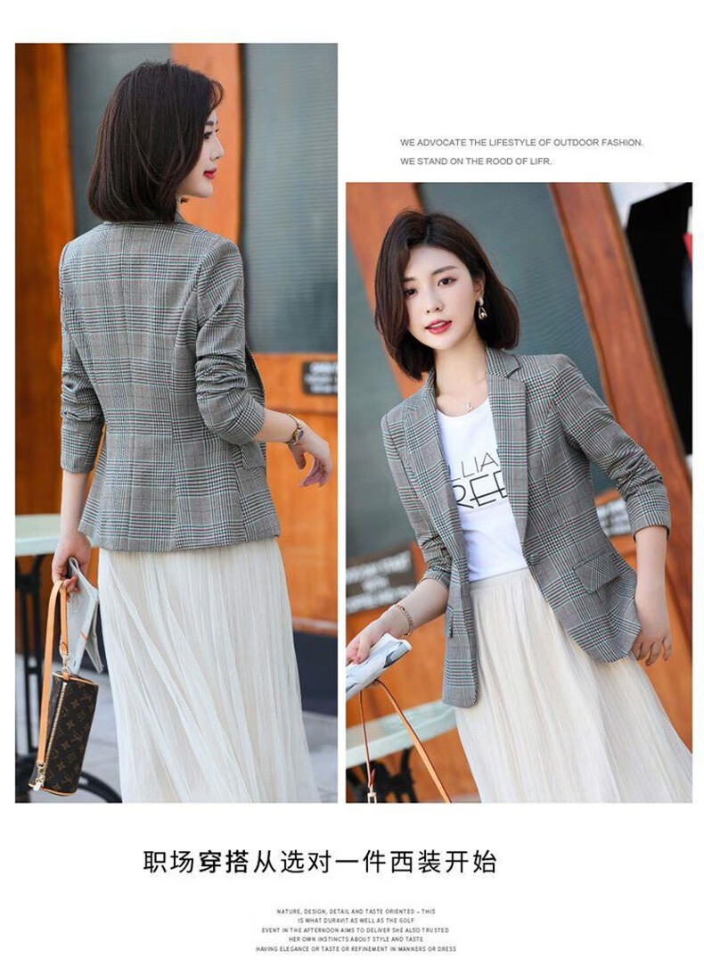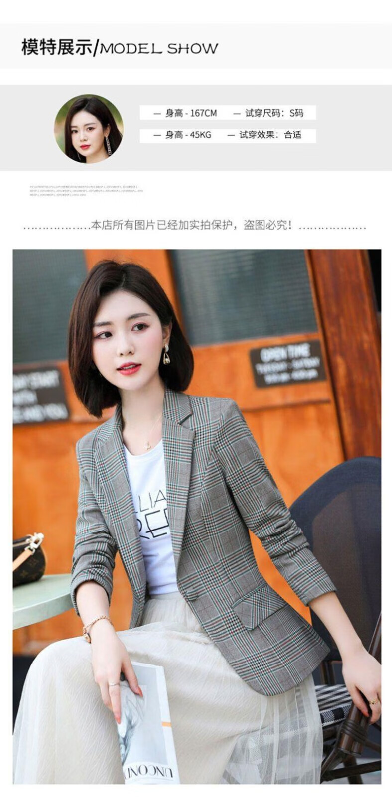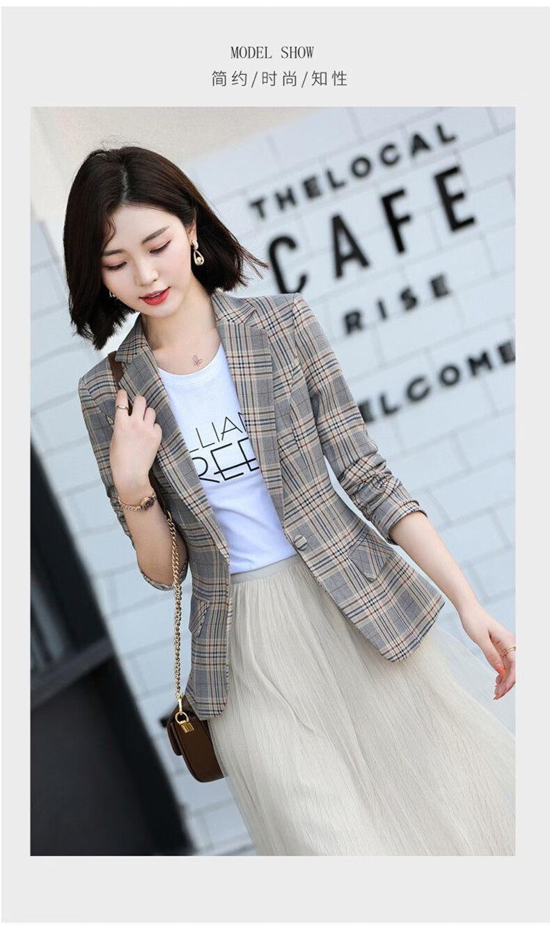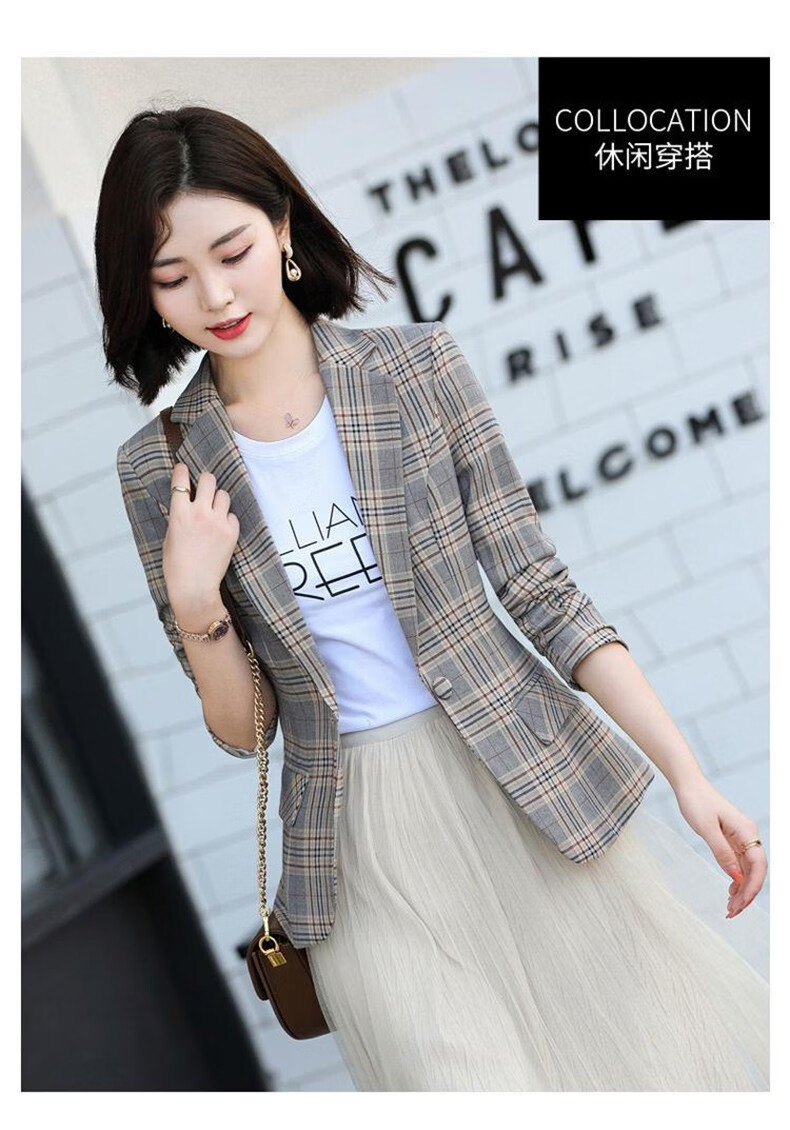 樱芭妮格子小西装外套女2025春秋新款修身显瘦小个子休闲小西服长袖上衣 8918杏格长袖 2XL (119-128斤)