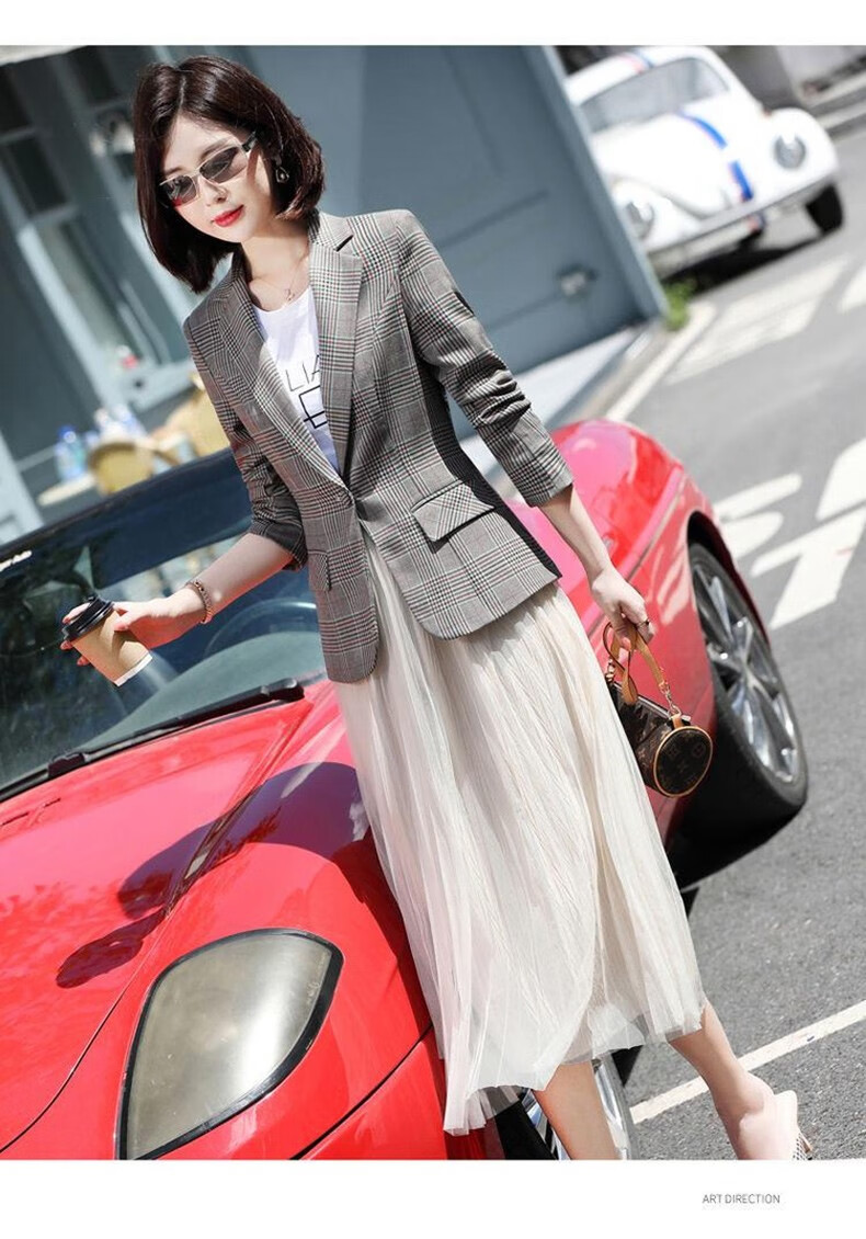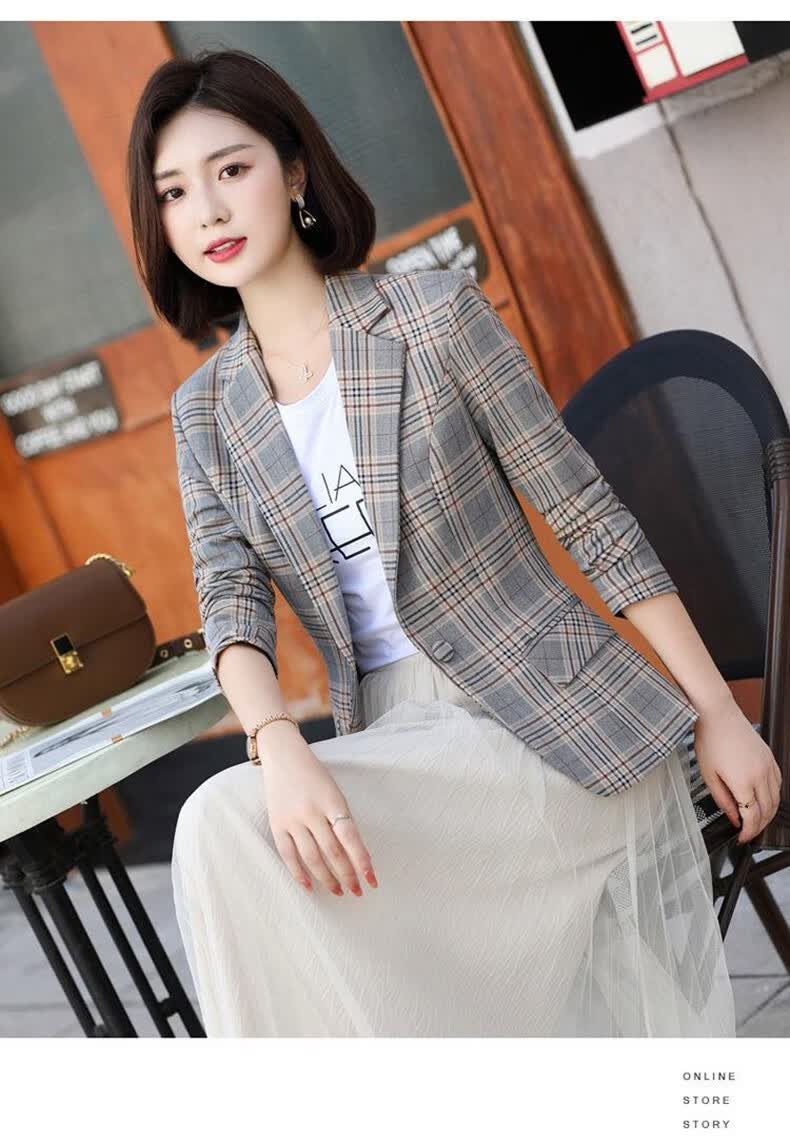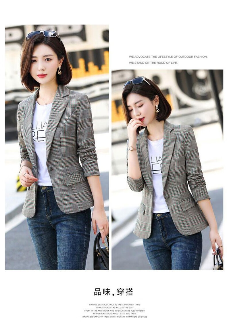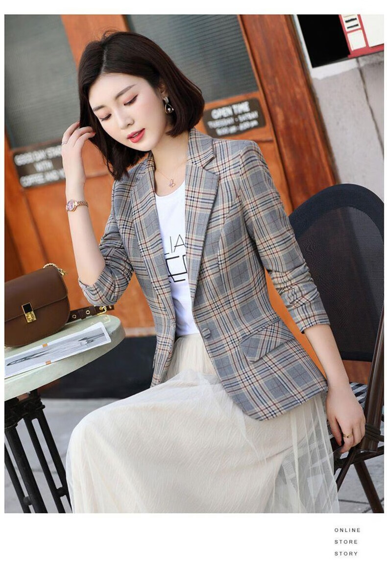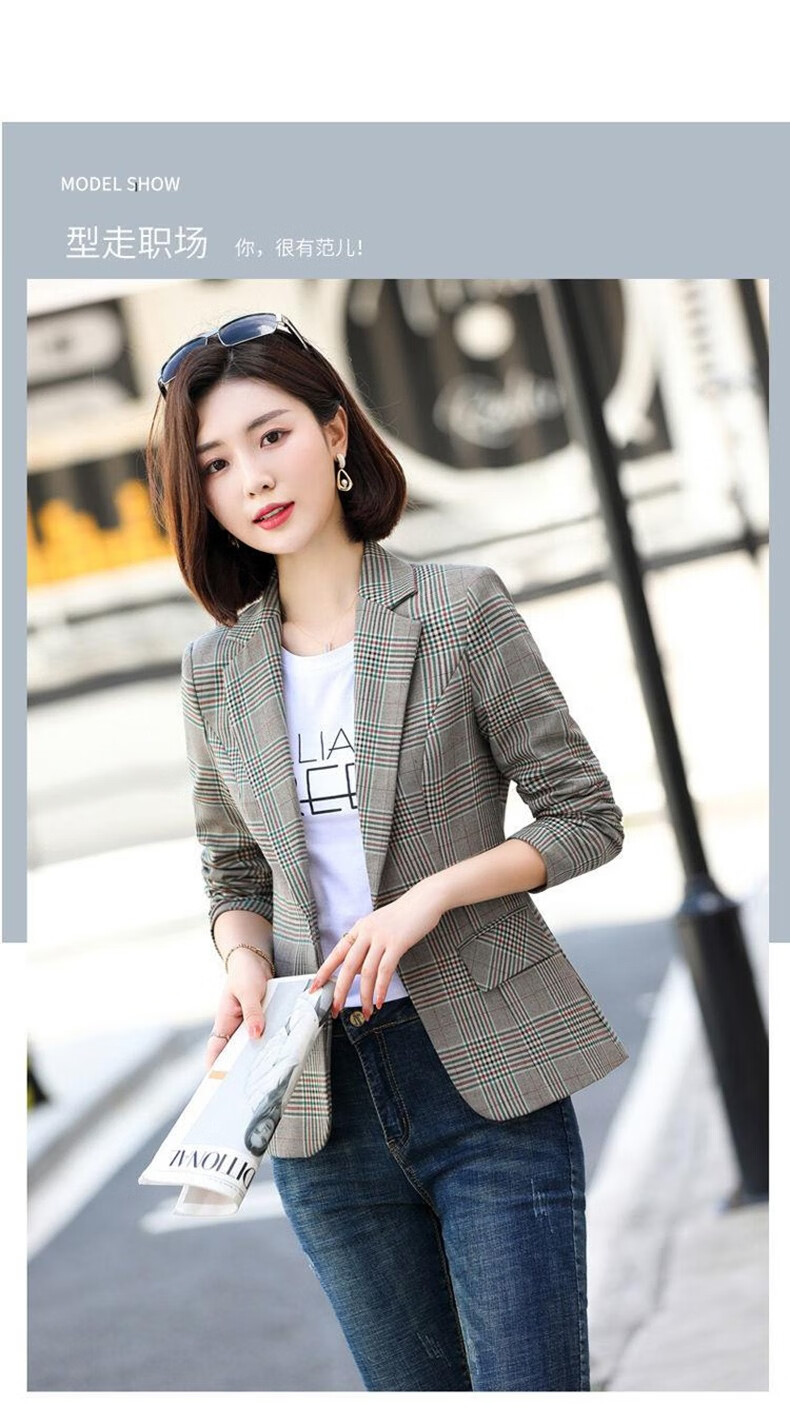 樱芭妮格子小西装外套女2025春秋新款修身显瘦小个子休闲小西服长袖上衣 8918杏格长袖 2XL (119-128斤)