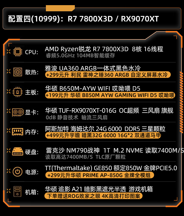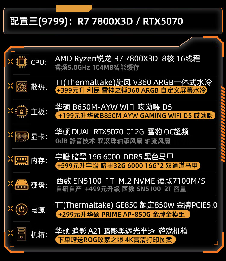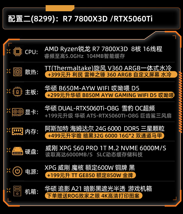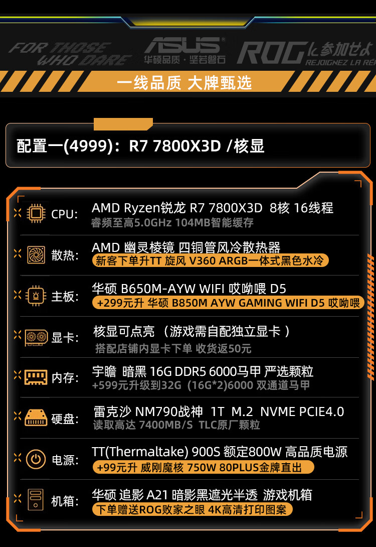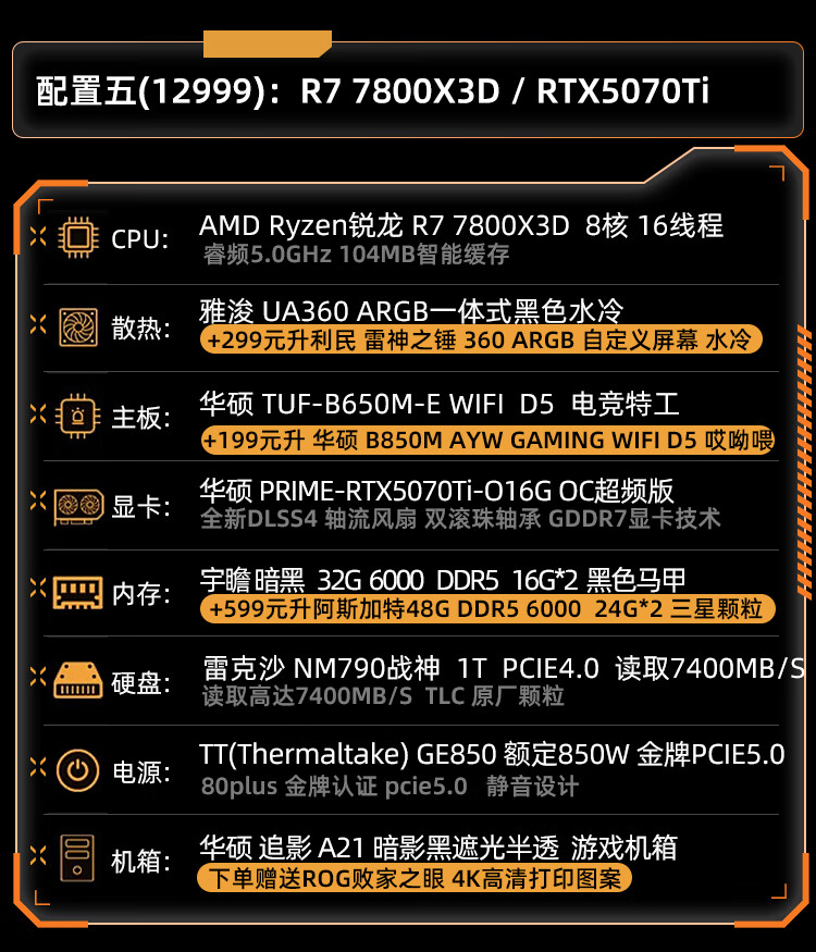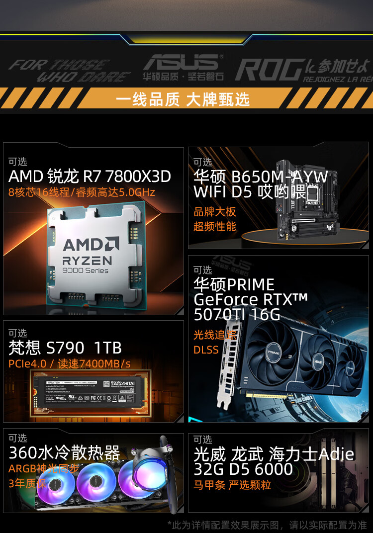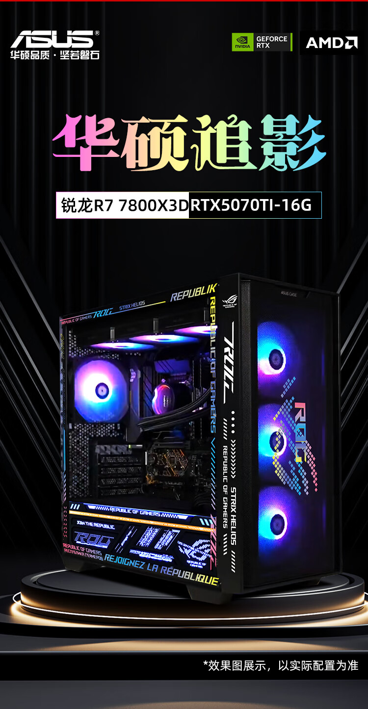 ASUS ROG Gamer Nation AMD Family Bucket Ryzen R7 7800X3D/ASUS RTX5070Ti-O16G New E-Sports Host AI Smart DIY Assembly Machine Desktop Host Configuration 2 R7 7800X3D+RTX5060Ti