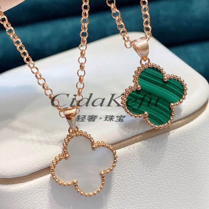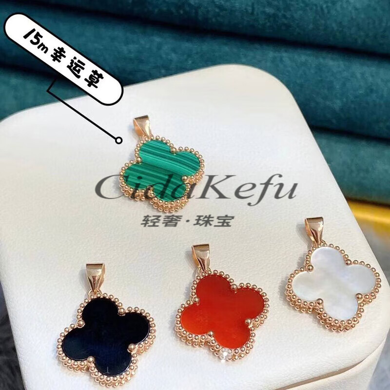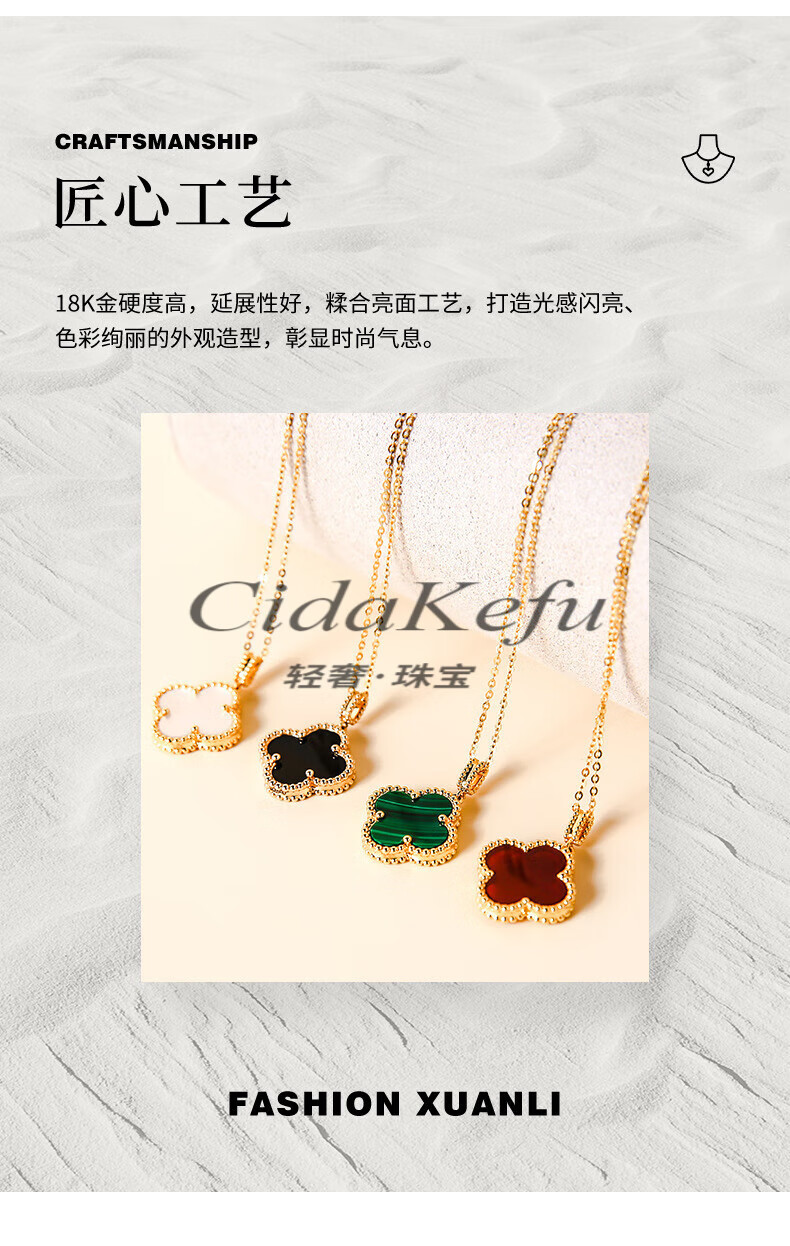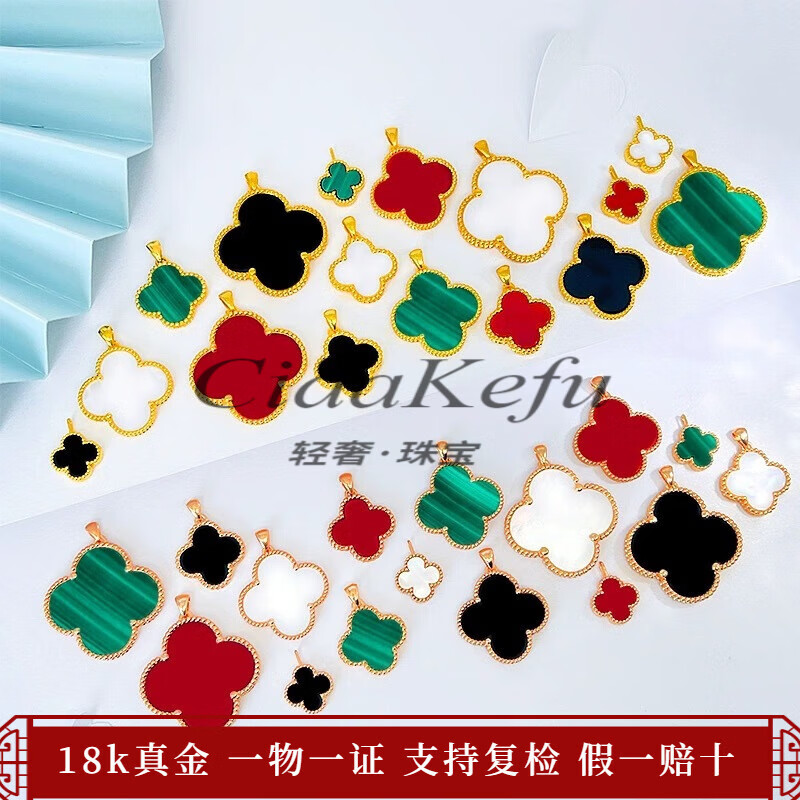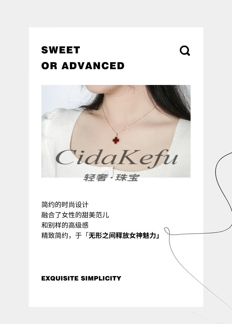 CidaKefu 18k gold four-leaf clover pendant for women red agate necklace rose gold color gold pendant Valentine's Day gift for girlfriend red agate four-leaf clover single pendant thickened version 18k rose gold 15mm + 925 chain