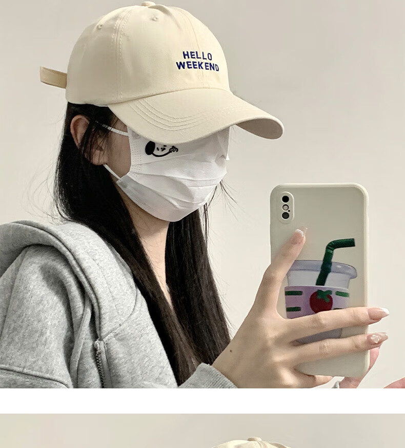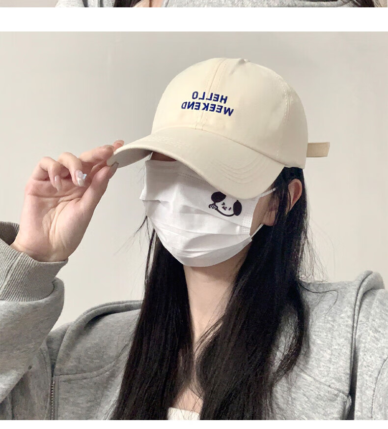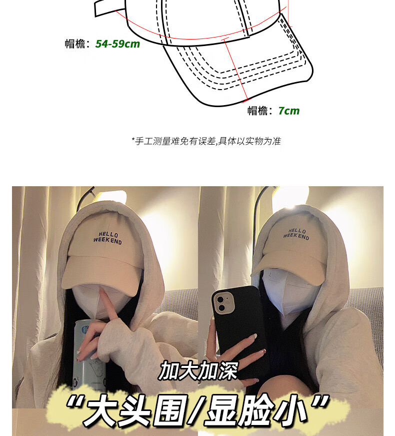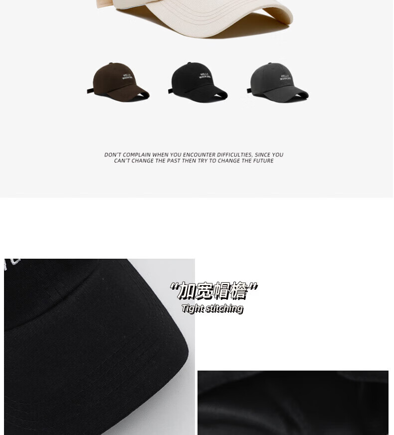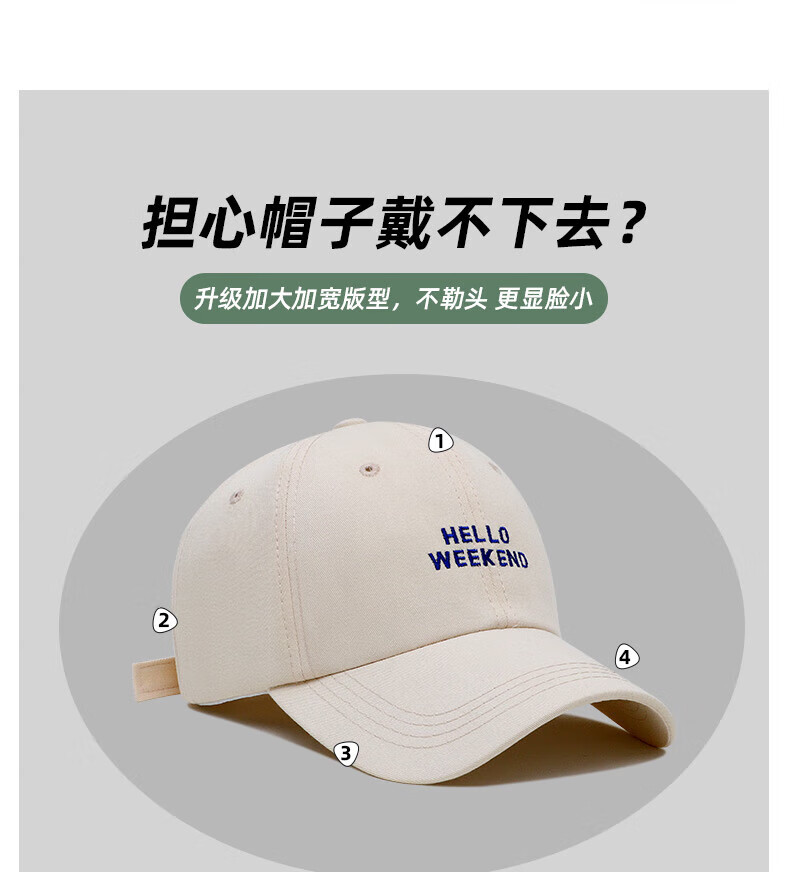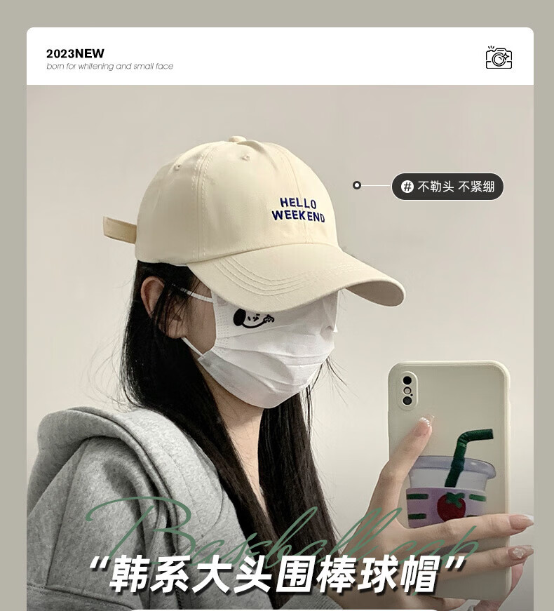 Memaru Baseball Cap Women's 2025 New Spring and Summer Versatile Face Revealing Small Big Head Circumference Letter Embroidery Curved Brim Peaked Cap for Men and Women Beige Store Manager-HELLO Style One Size Can Generally Be Weared (54-59cm)