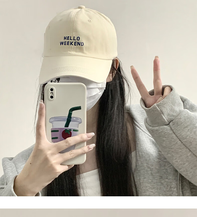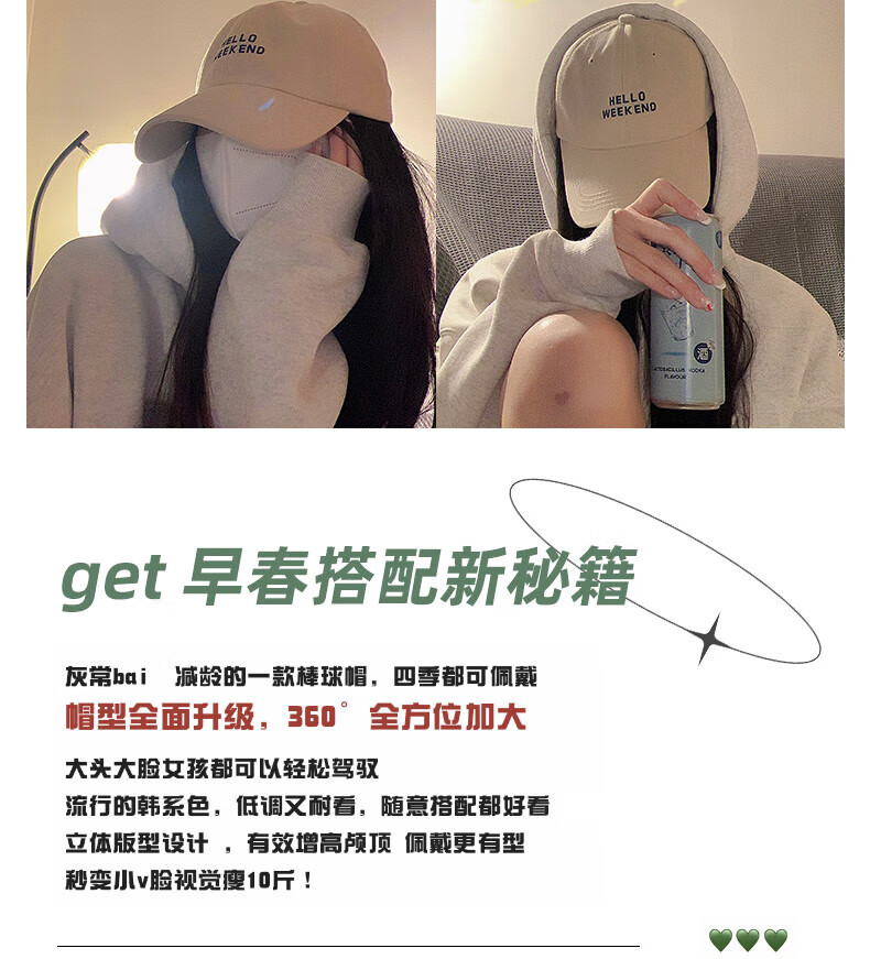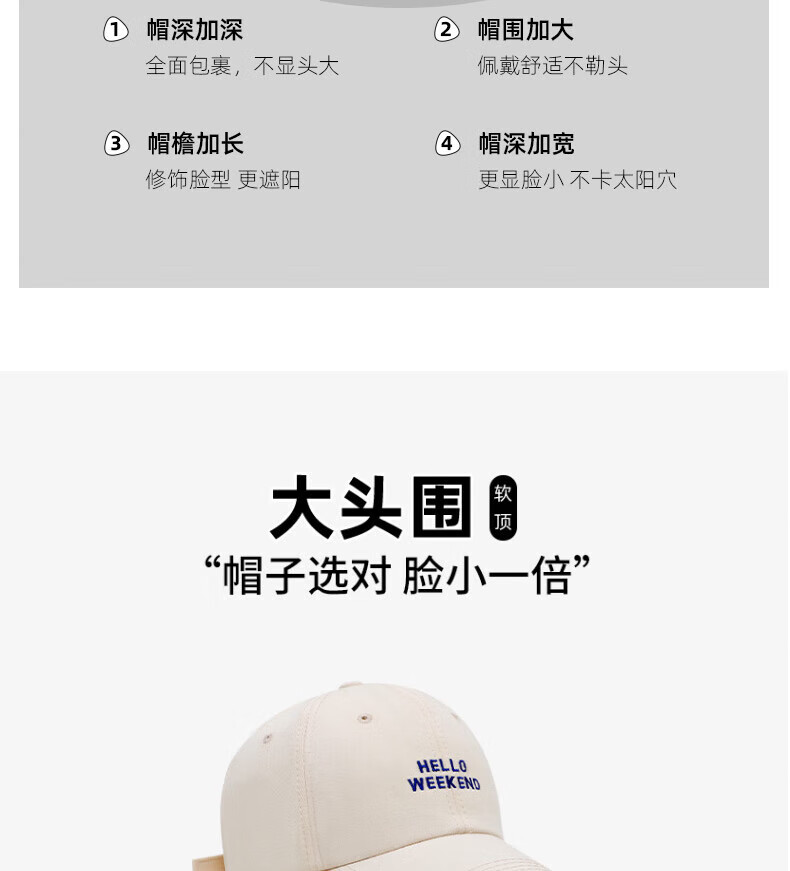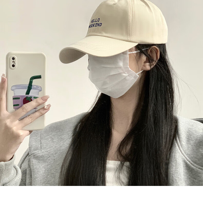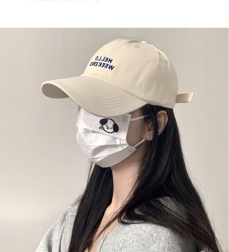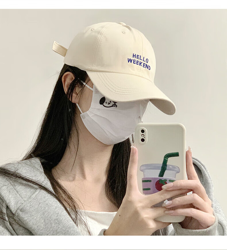 Memaru Baseball Cap Women's 2025 New Spring and Summer Versatile Face Revealing Small Big Head Circumference Letter Embroidery Curved Brim Peaked Cap for Men and Women Beige Store Manager-HELLO Style One Size Can Generally Be Weared (54-59cm)