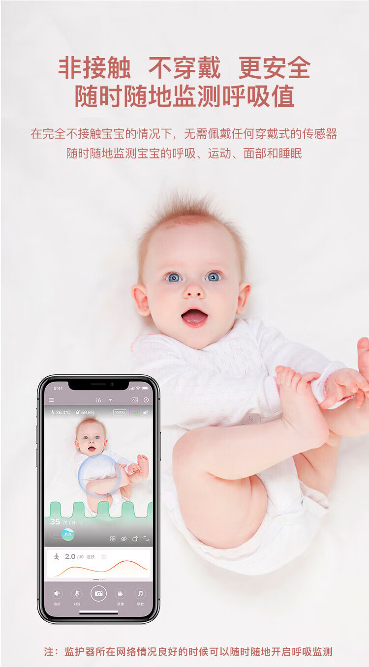 CIBABY Smart Baby Monitor Baby Caregiver Child Monitoring Camera Cry Covering Face Alarm Respiratory Monitor i6