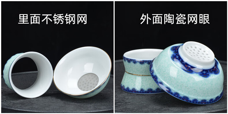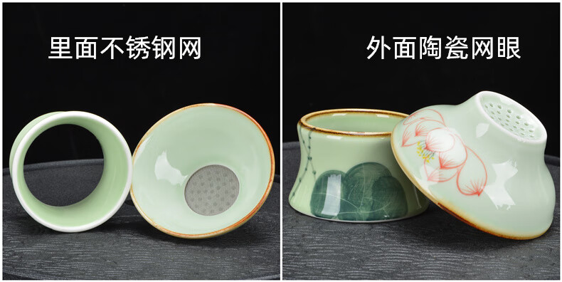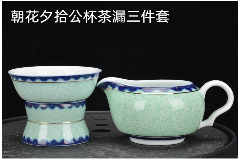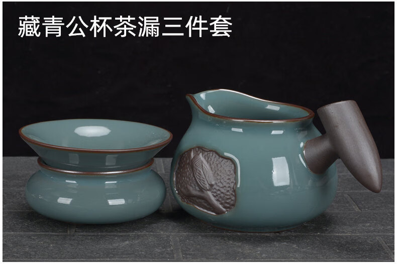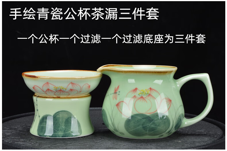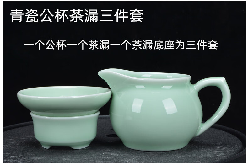 Mo Lin household celadon ceramic tea set fair cup tea drain set one-piece tea divider male cup divided tea cup fair pot filter celadon male cup tea drain three-piece set