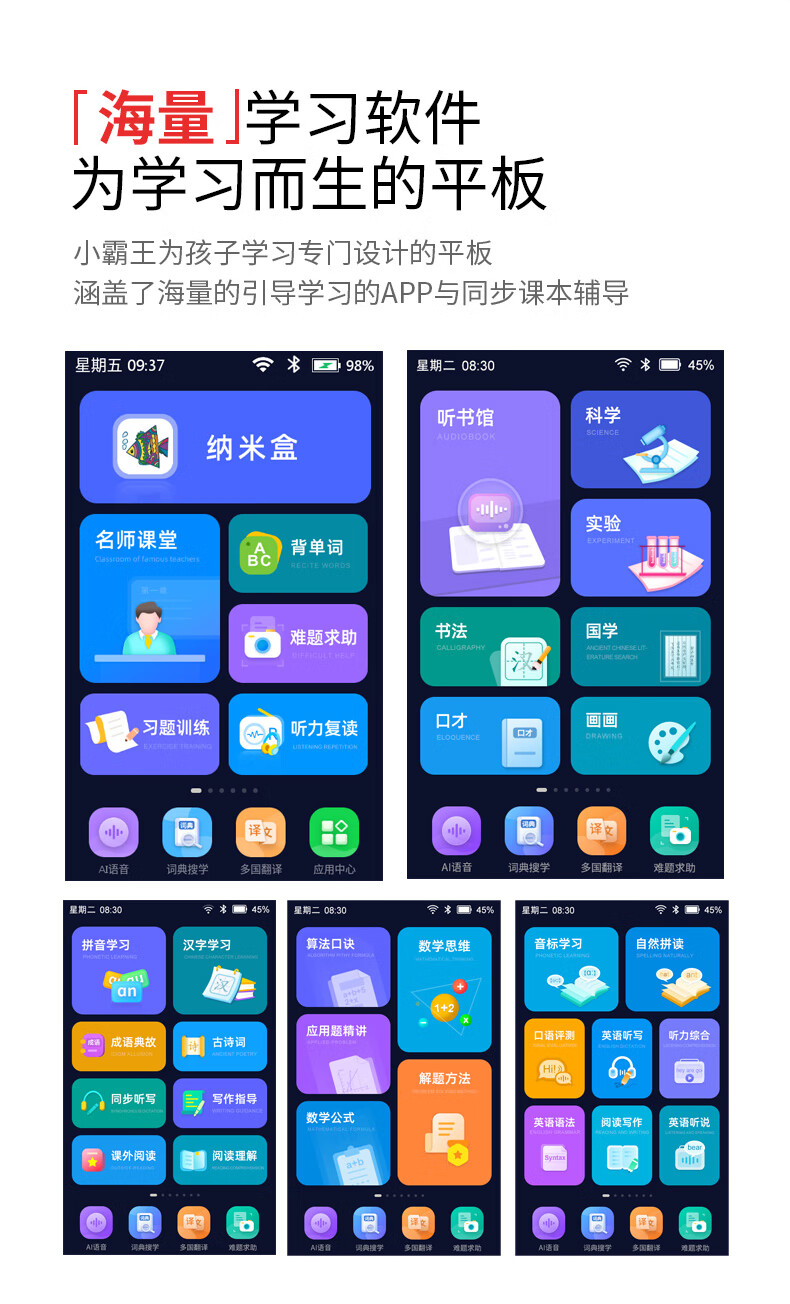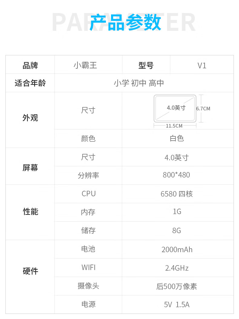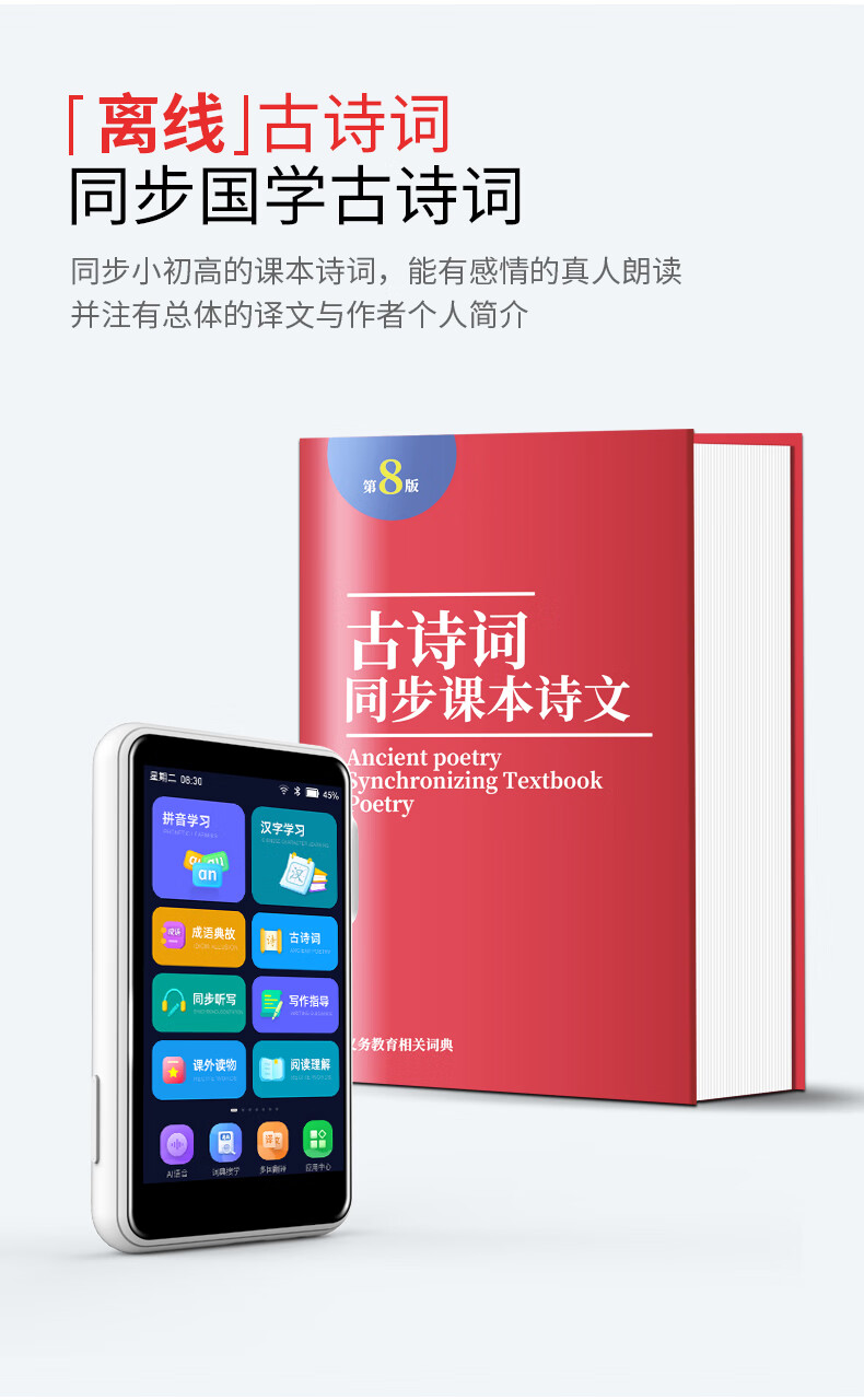 Xiaobawang V1 student tablet primary school junior high school high school repeat listening treasure English point reading machine tutor machine postgraduate entrance examination artifact Walkman pocket learning machine Pocket learning machine (8G memory + 128G storage card) comes with teaching materials