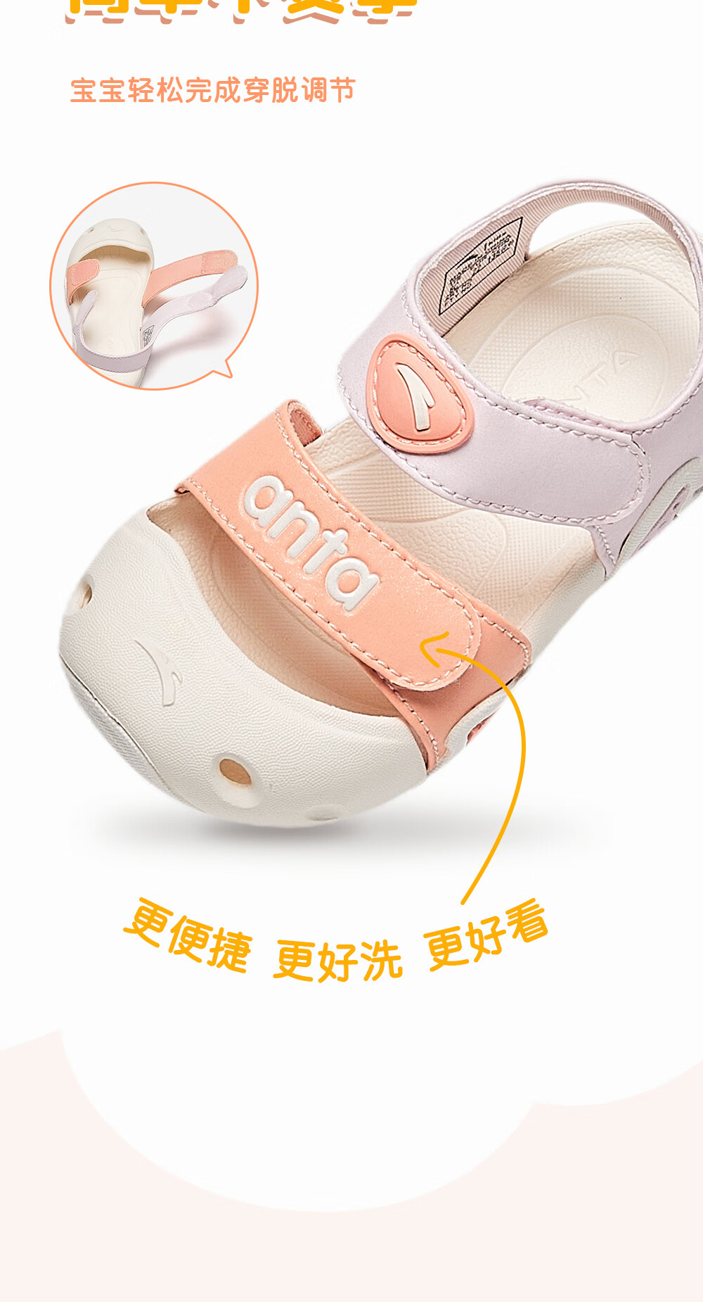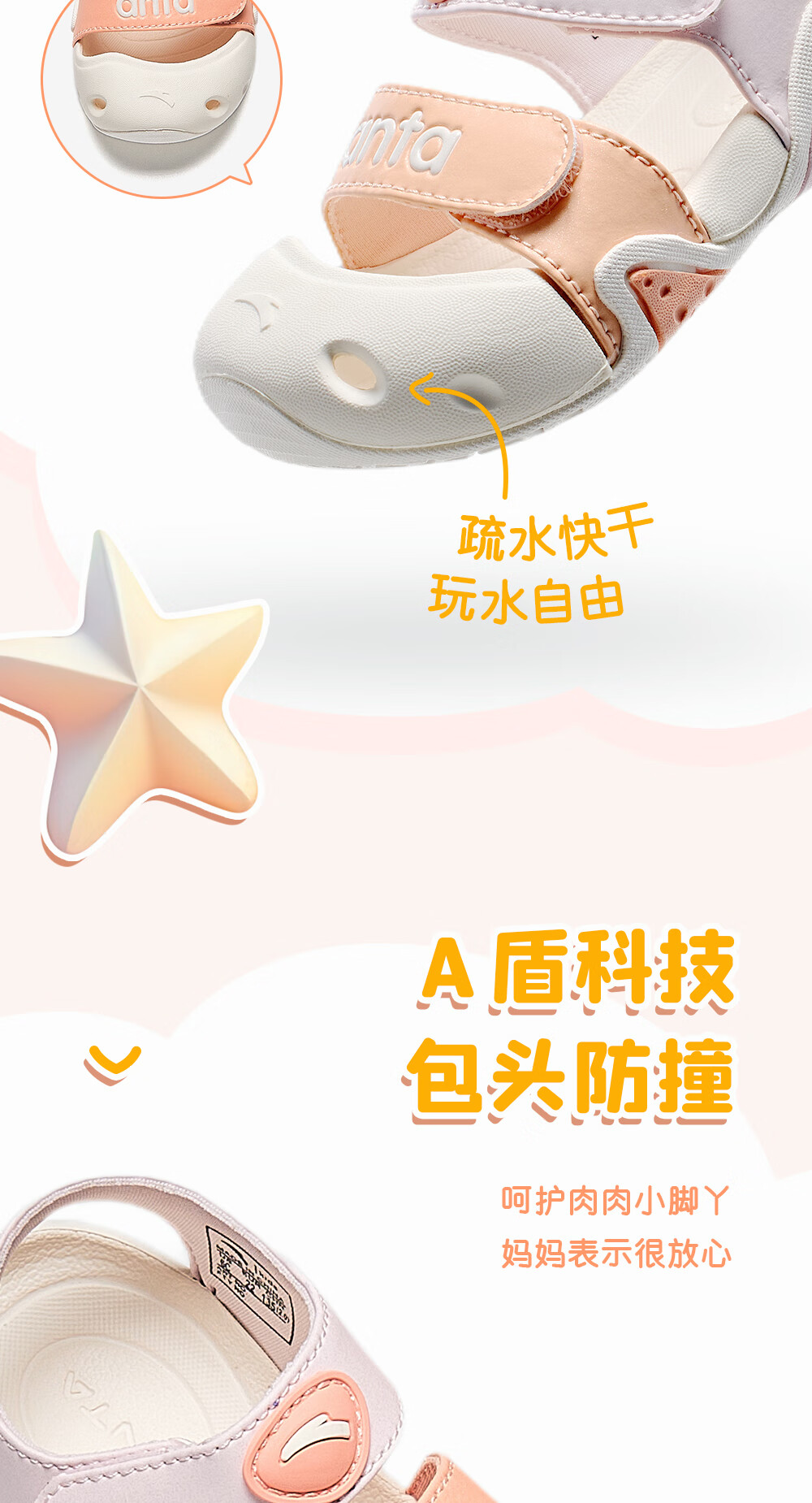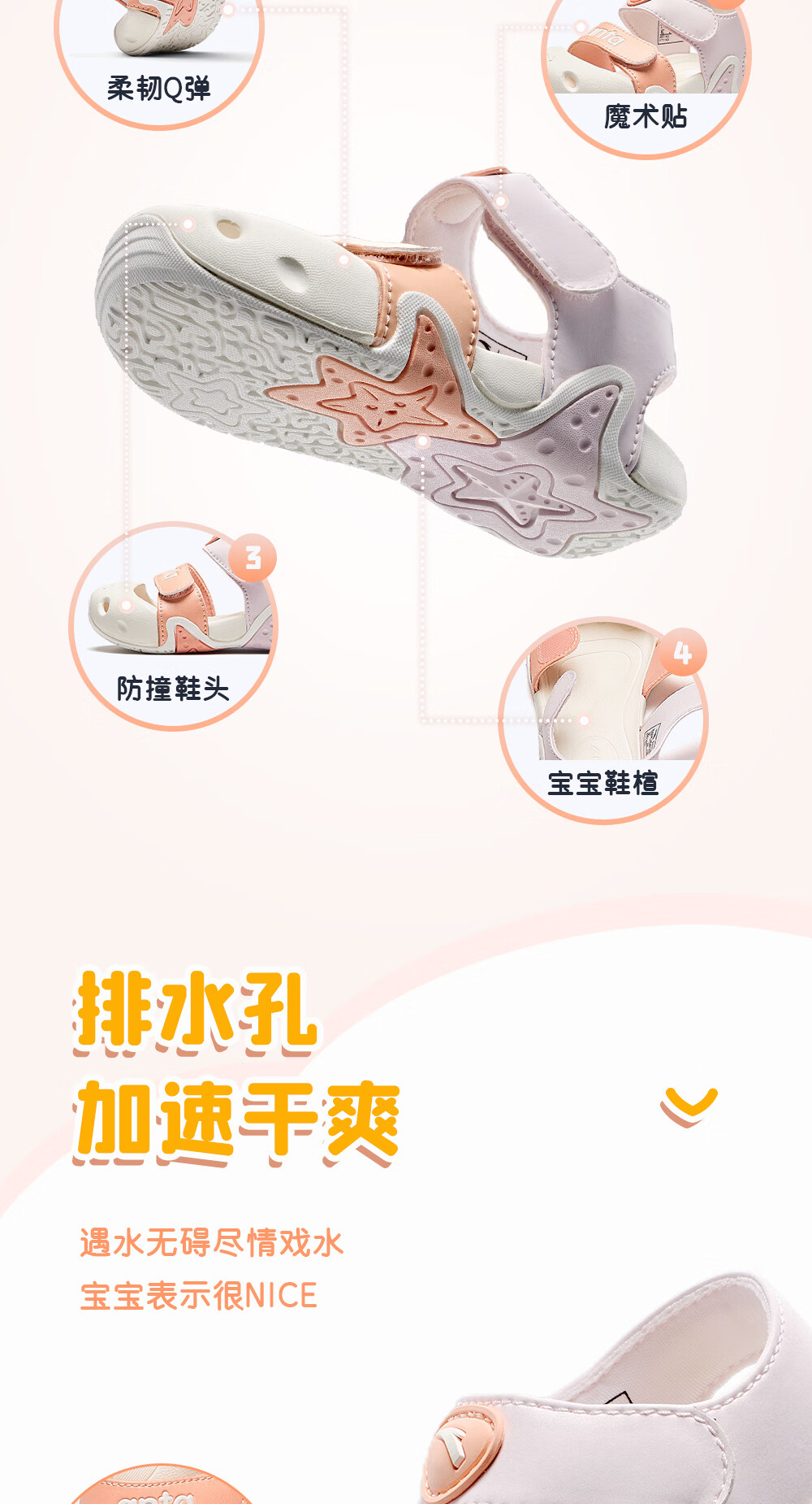 ANTA Children's Sandals 2023 Summer New Style Baby Girls' Shoes Breathable Easy-Bend Baotou Beach Shoes Store Same Style Clear Water Powder/Light Rainbow Pink-3 25 25/15.5cm