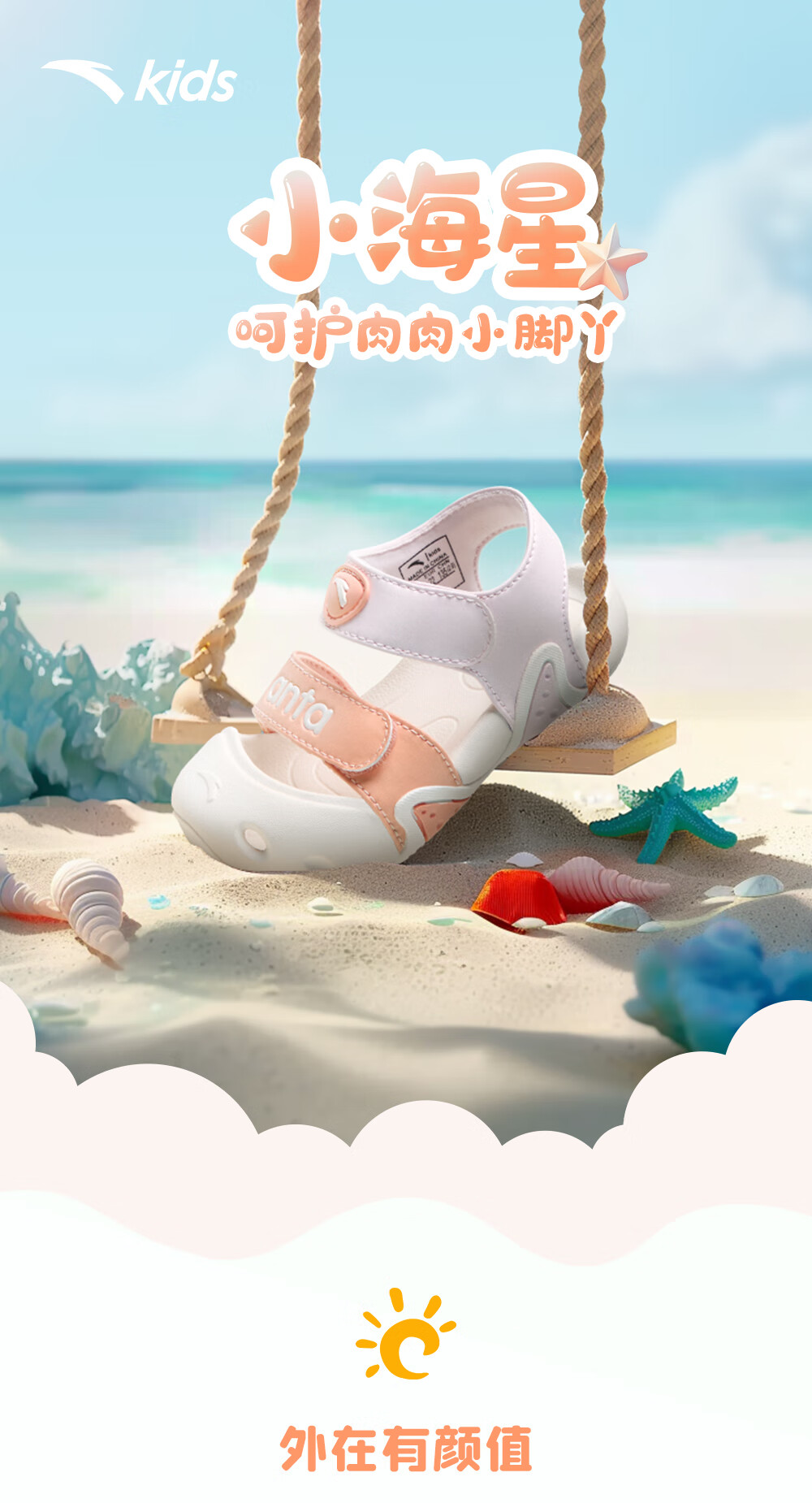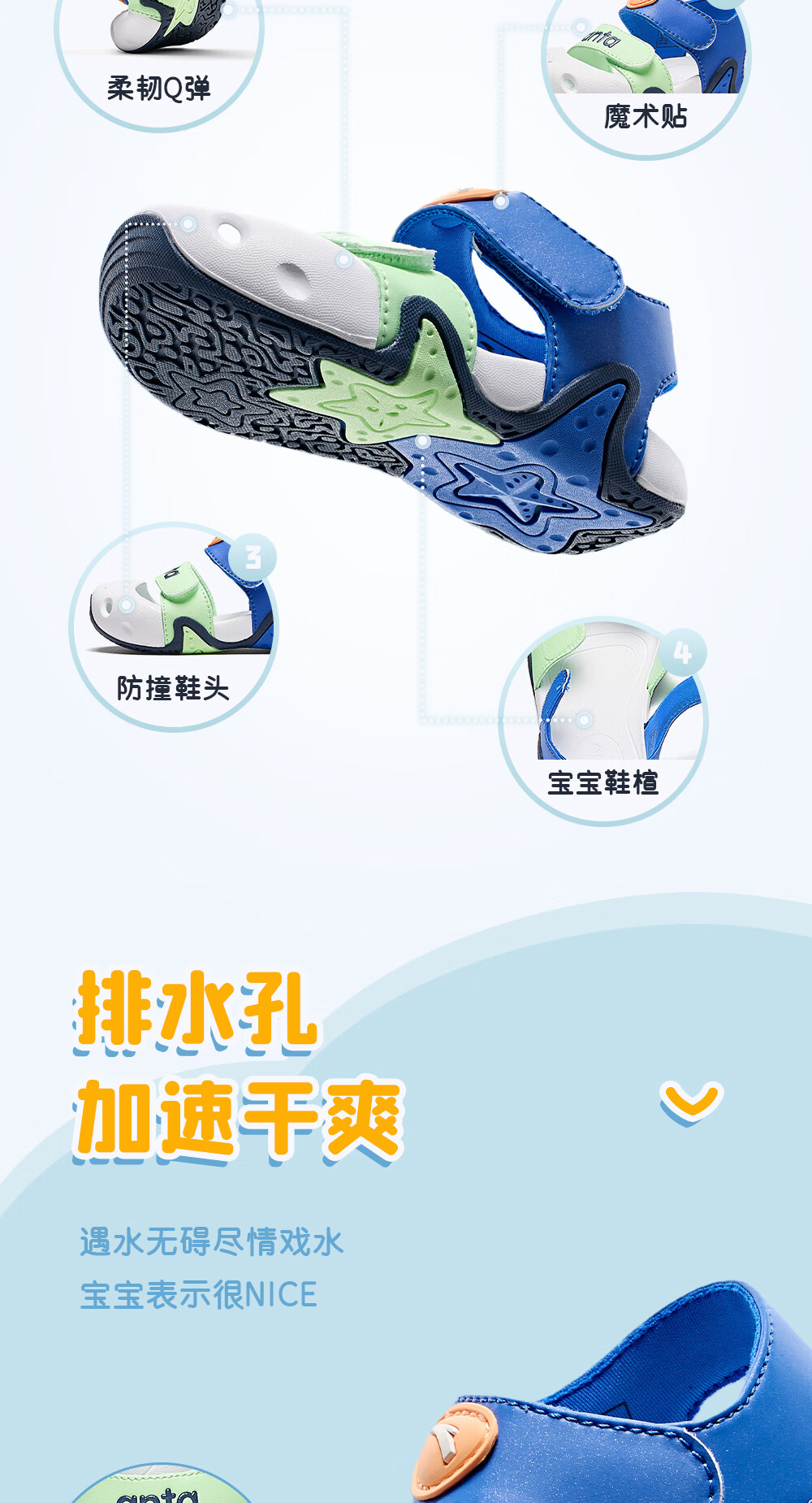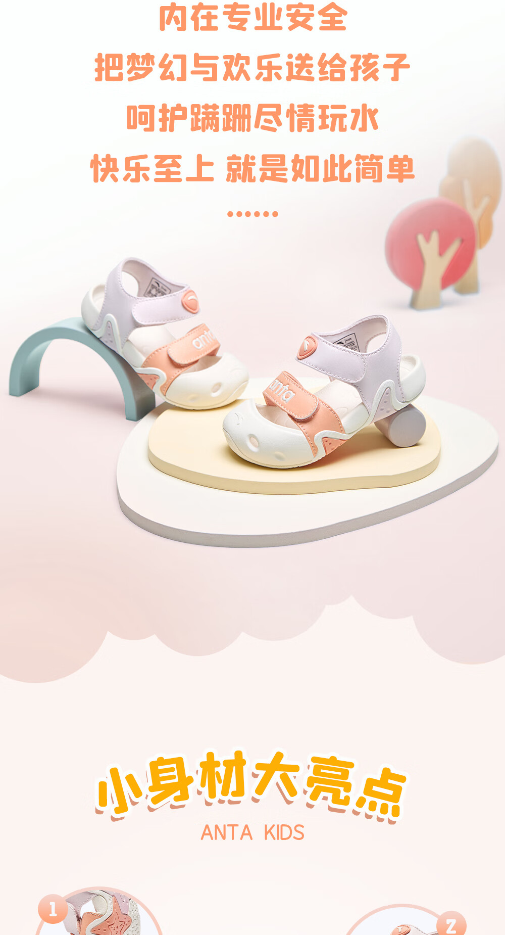 ANTA Children's Sandals 2023 Summer New Style Baby Girls' Shoes Breathable Easy-Bend Baotou Beach Shoes Store Same Style Clear Water Powder/Light Rainbow Pink-3 25 25/15.5cm