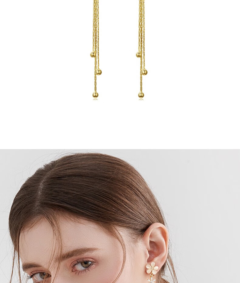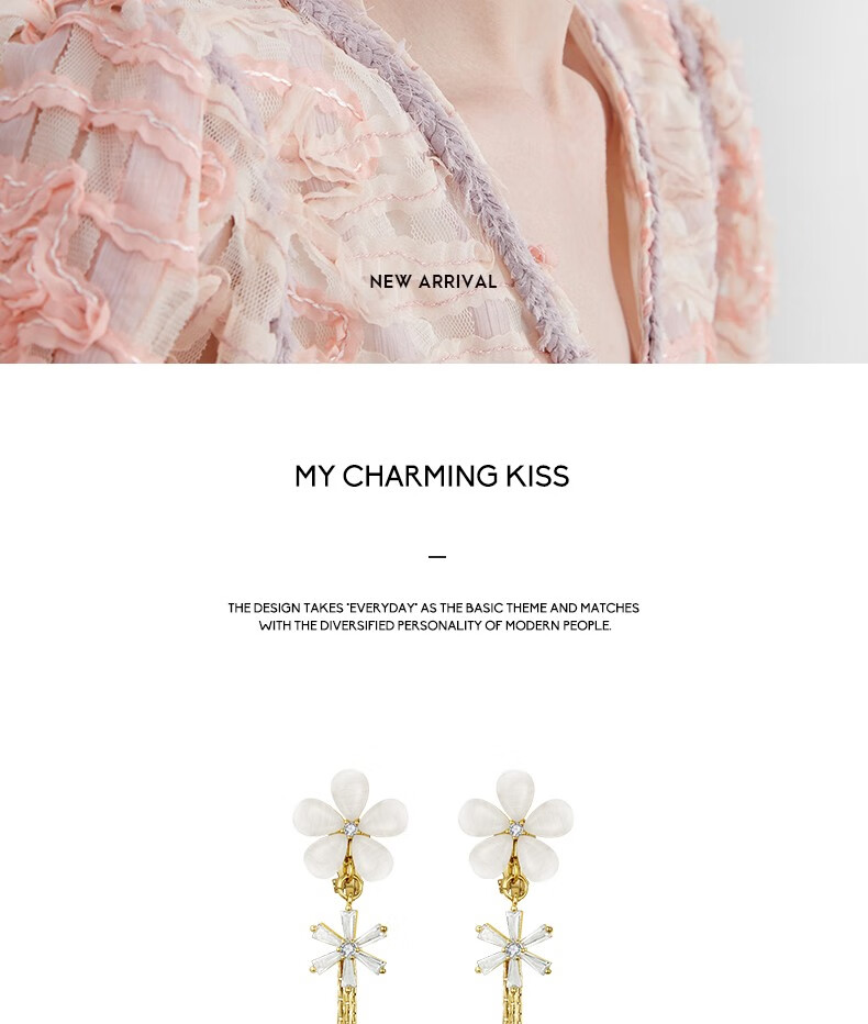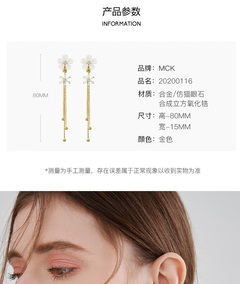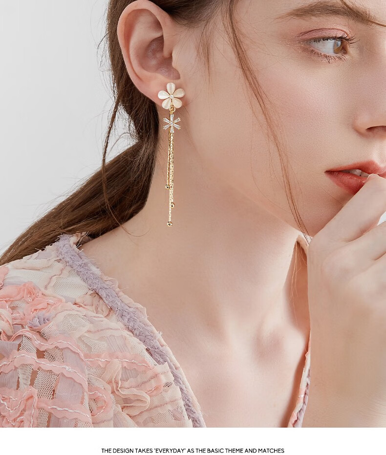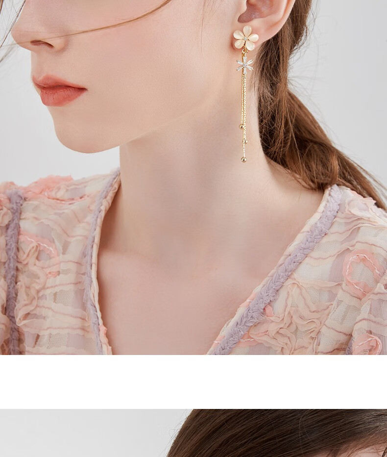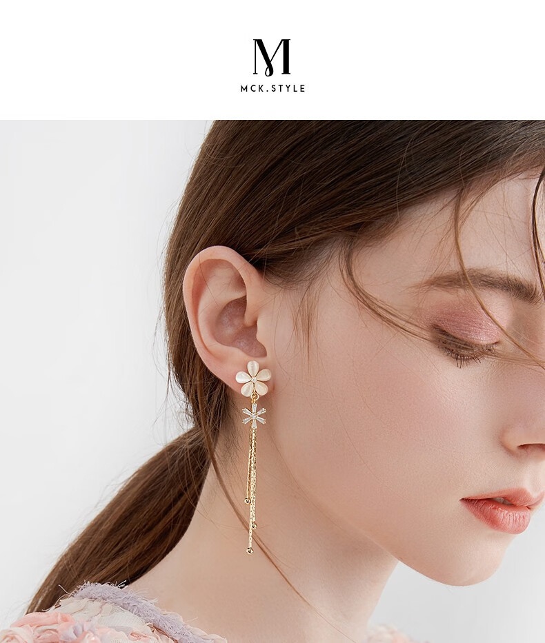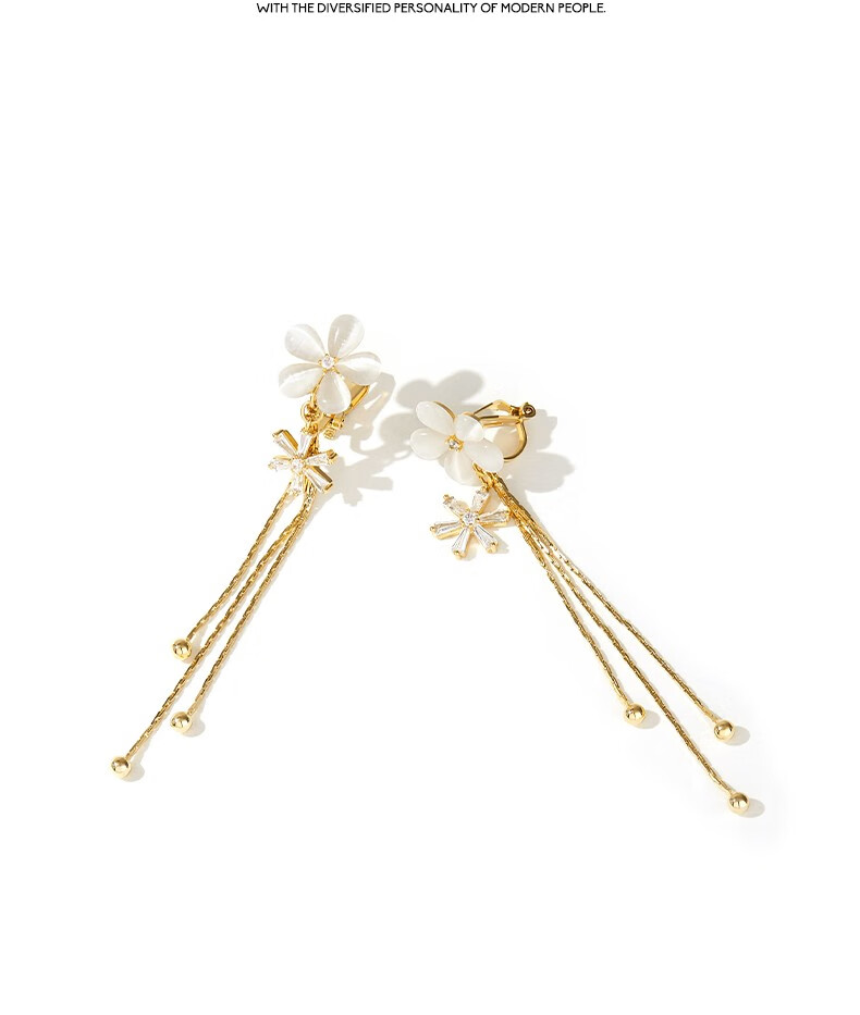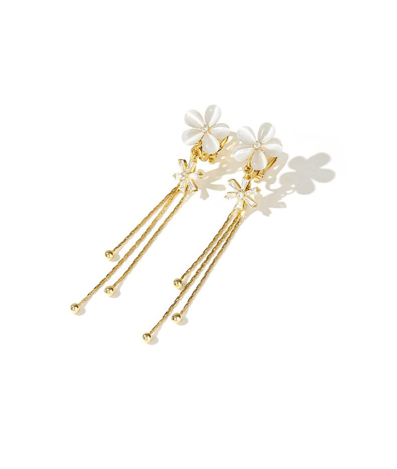 Mck imitation opal flower tassel ear clip women's long pierced earrings girlfriend Chinese Valentine's Day gift
