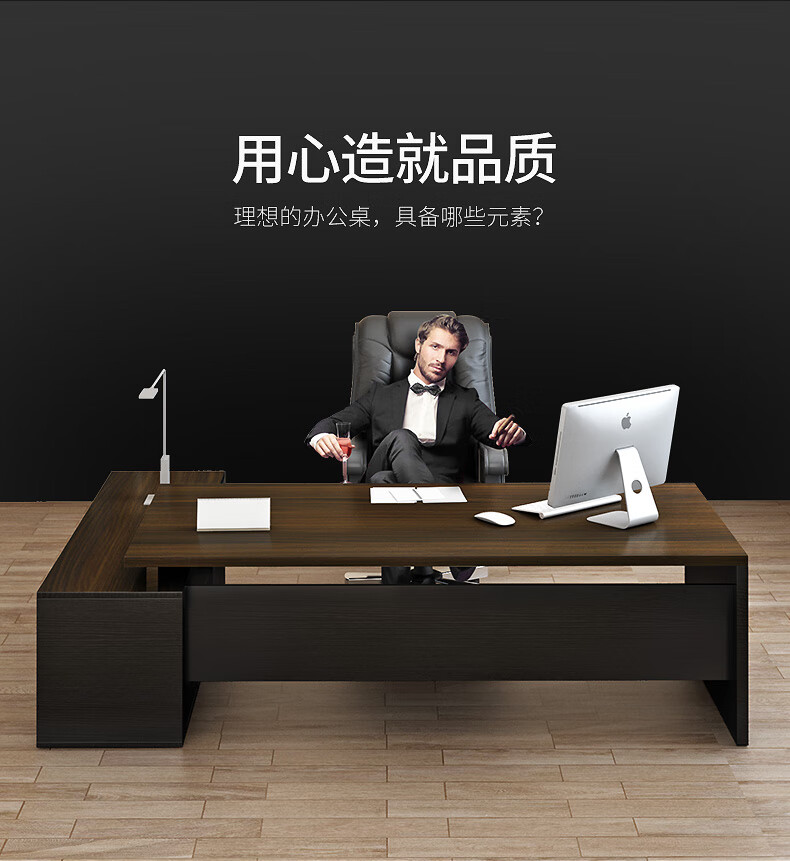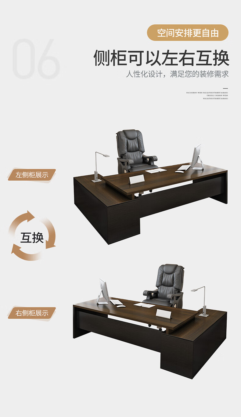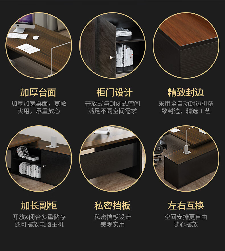 Shitingfang manager office desk combination boss desk desk executive desk simple modern light luxury classic royal walnut color length 160 width 60 + side cabinets self-installation 20% choice