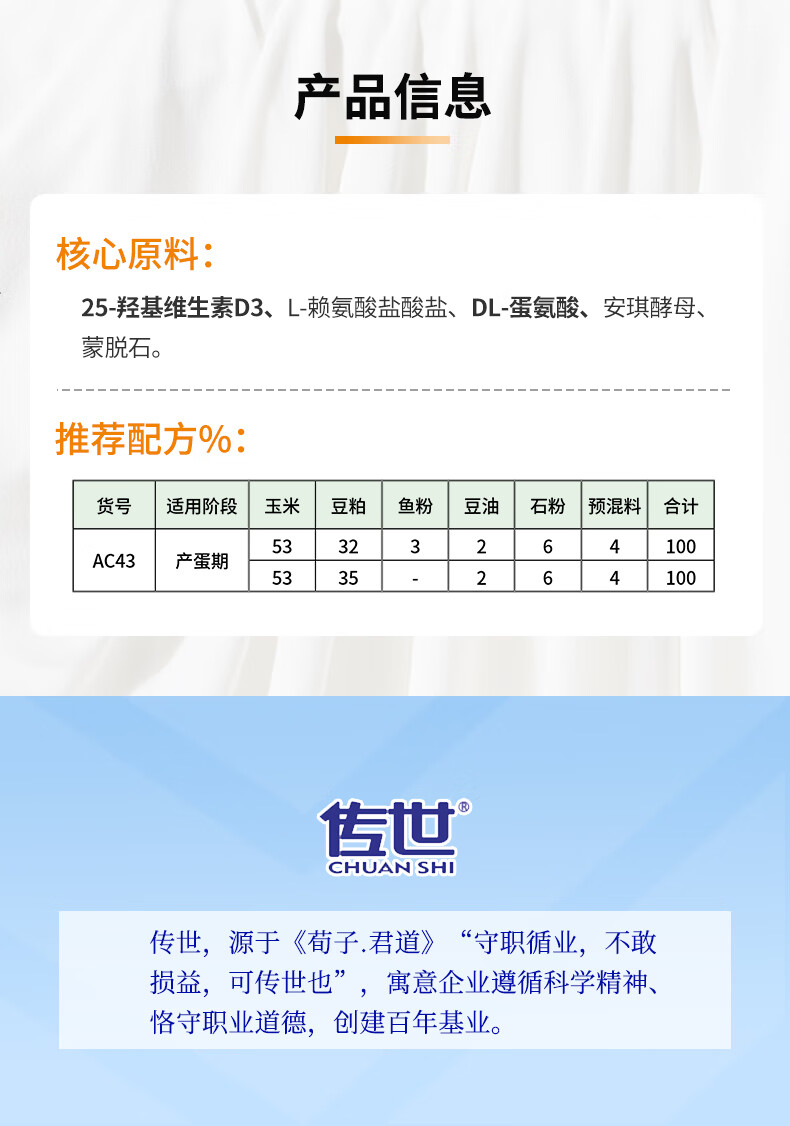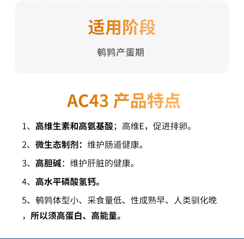 Chuanshi AC43 4% quail laying period premix poultry feed for quail net weight 20kg premix 20kg