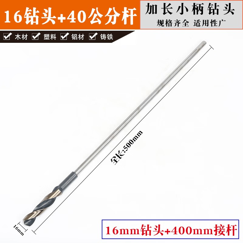 Cuigui extended twist drill, small handle twist drill template drill, woodworking drill bit, extension rod to connect woodworking drill bit 600 long, 16 drill bit + 40 cm extension rod for one price