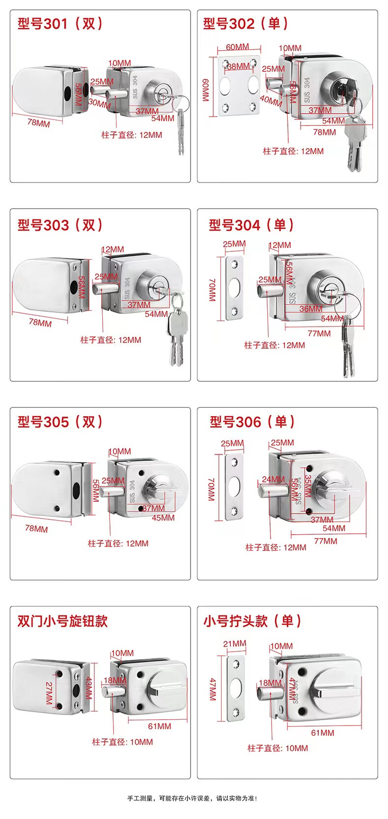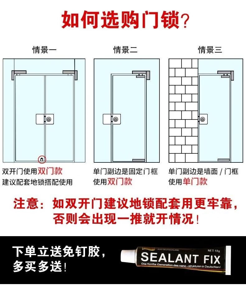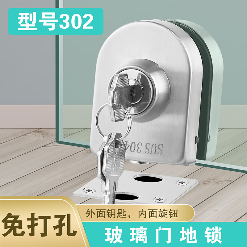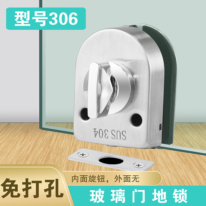 XMSJ glass door floor lock without opening glass door lock single door latch lock frameless glass door floor latch bathroom door lock upper latch - single-sided twist (model 305)