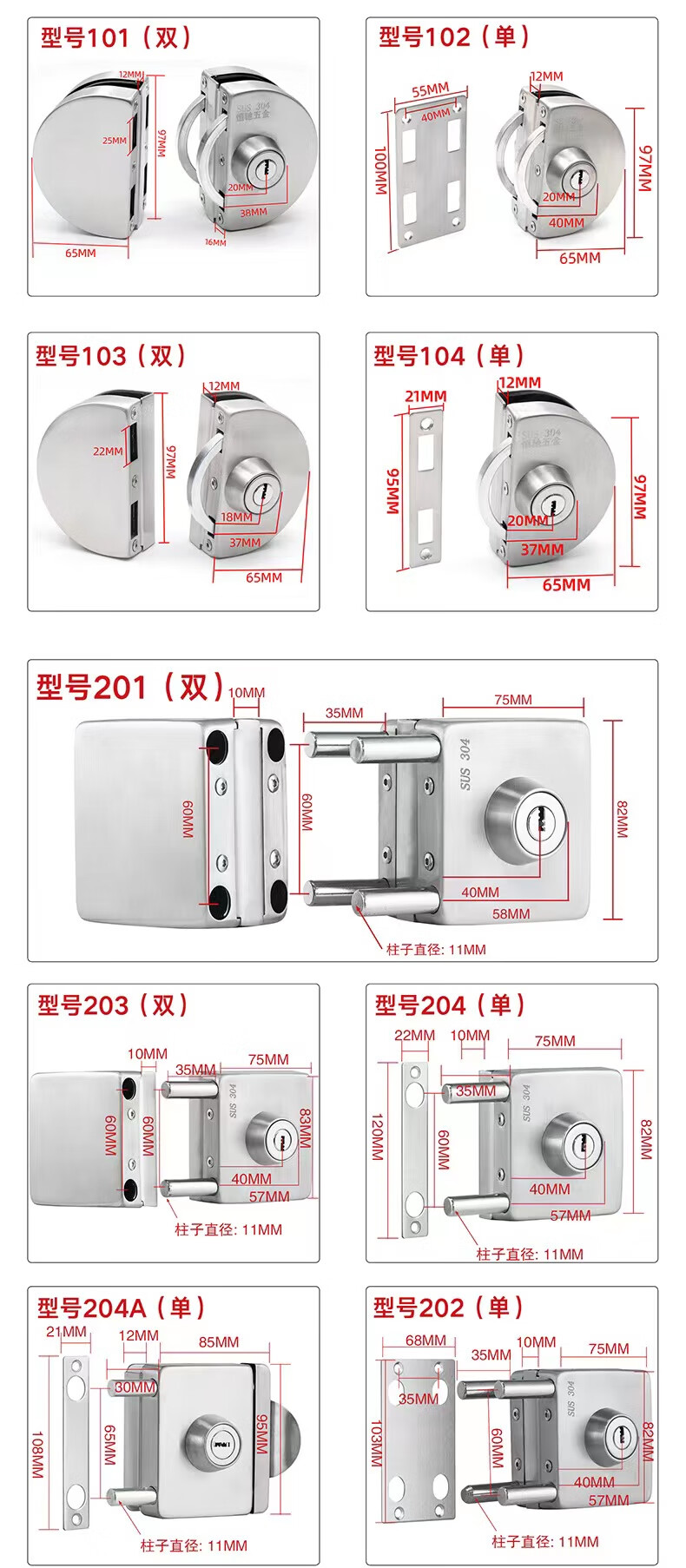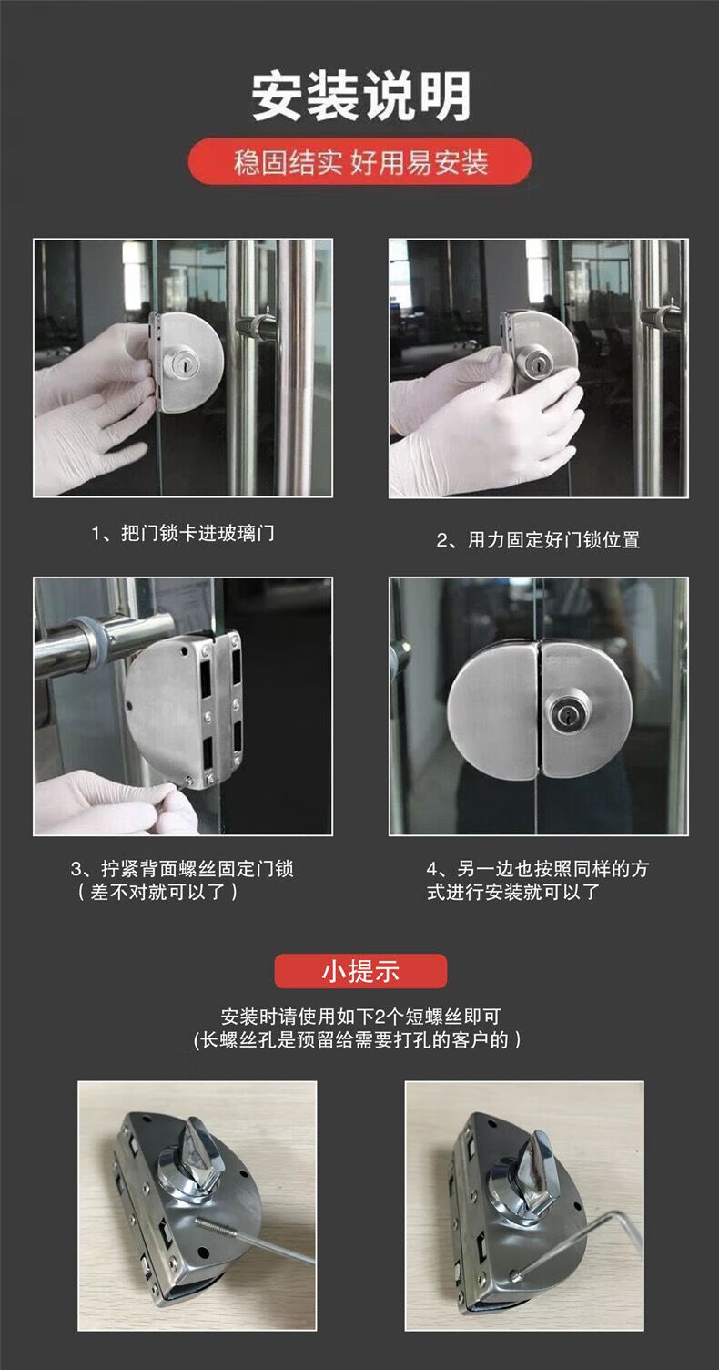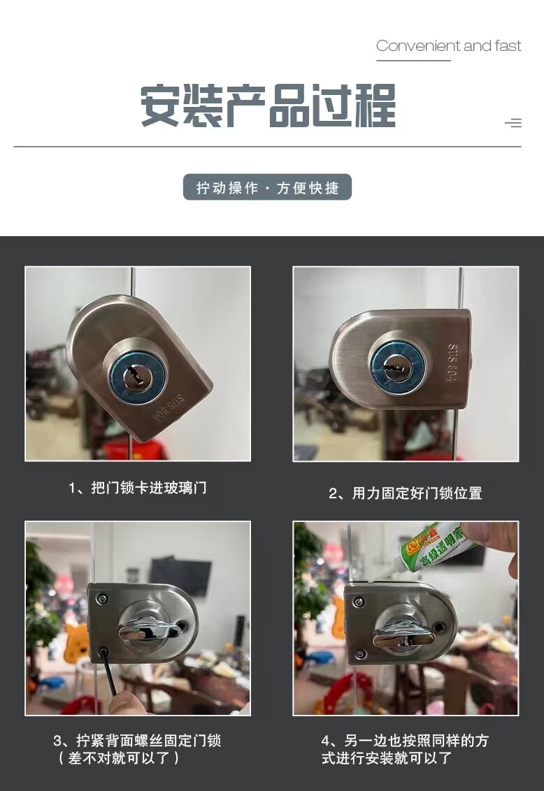 XMSJ glass door floor lock without opening glass door lock single door latch lock frameless glass door floor latch bathroom door lock upper latch - single-sided twist (model 305)