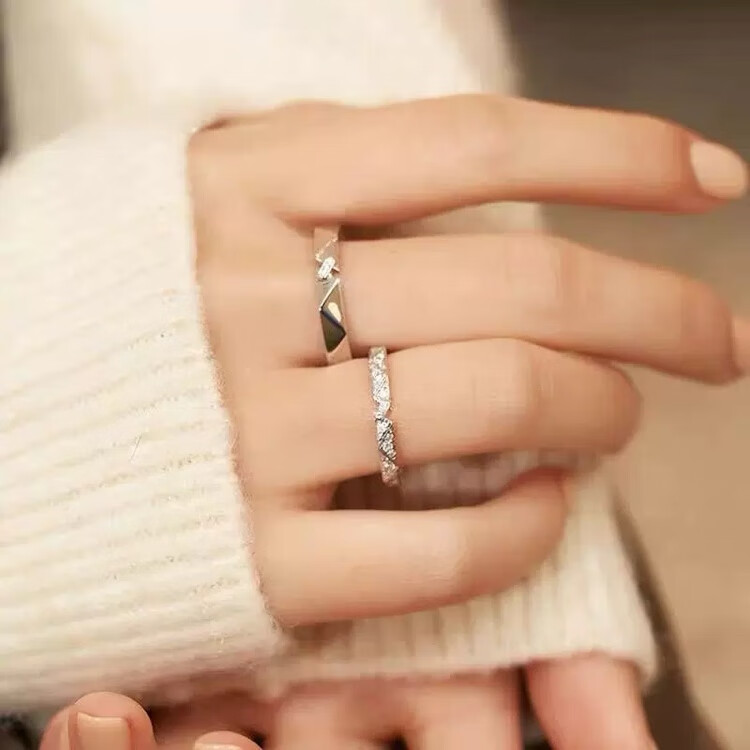 Zhou family's same style Dafu Zhou sterling silver ring s999 for a couple, niche live engraving, birthday gift for boyfriend and girlfriend, paper short love, long live couple, pair certificate + gift box +