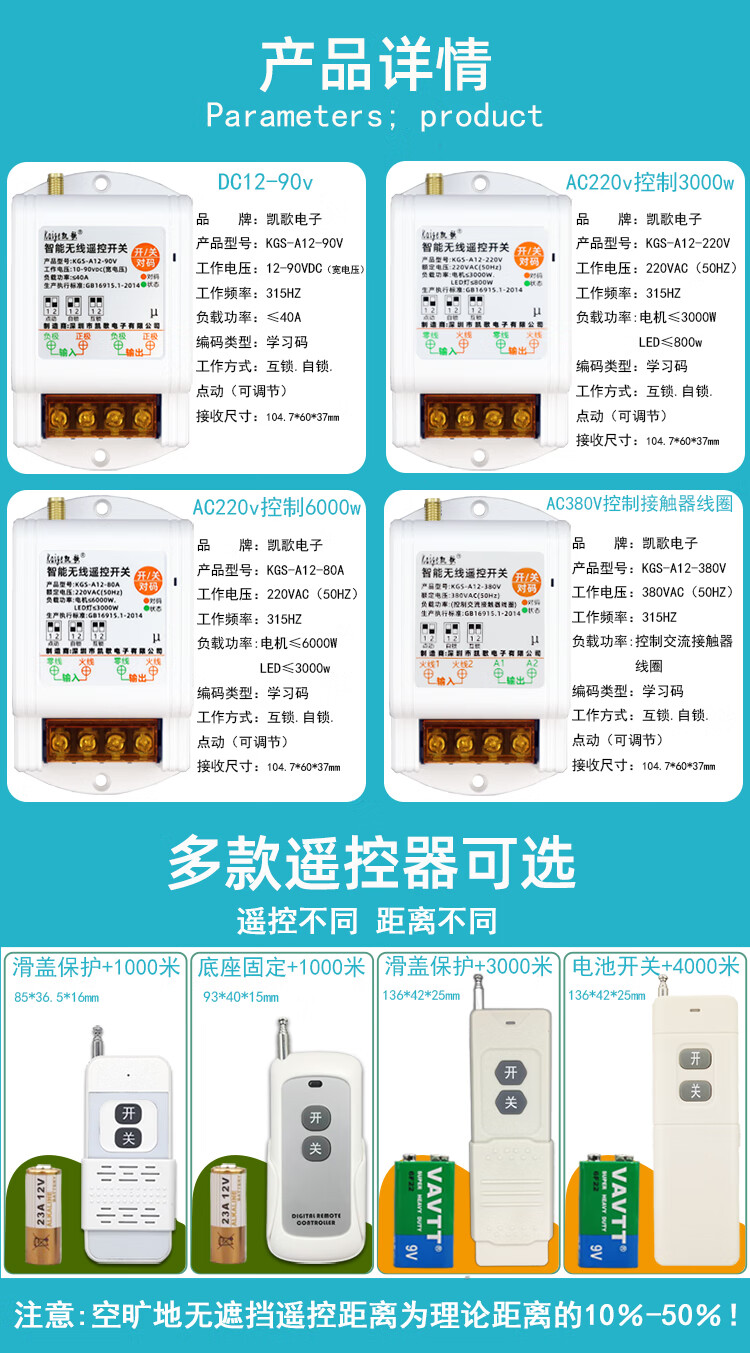 DC 12v wireless remote control switch 24v36v water pump car remote control power supply remote controller battery car 12-90v+ 1 remote control 0-5000 meters