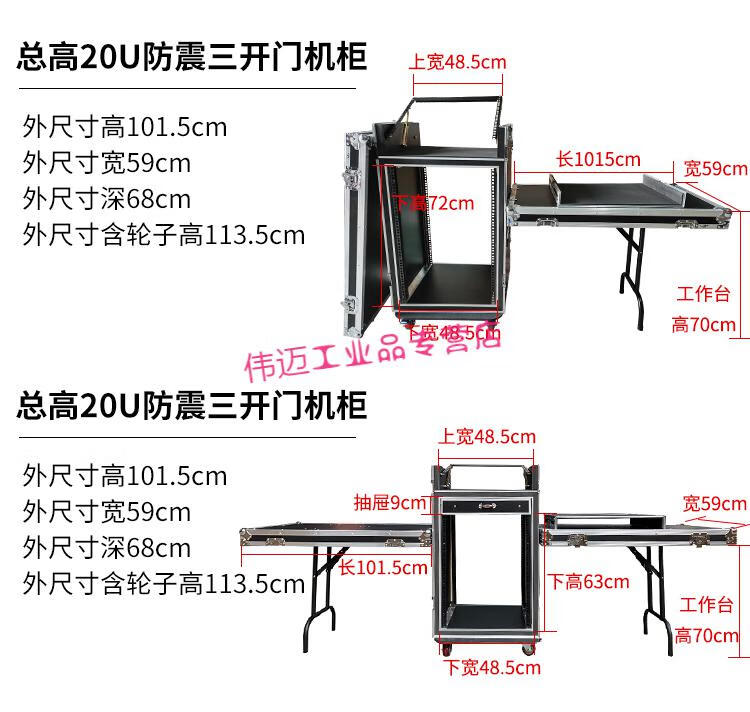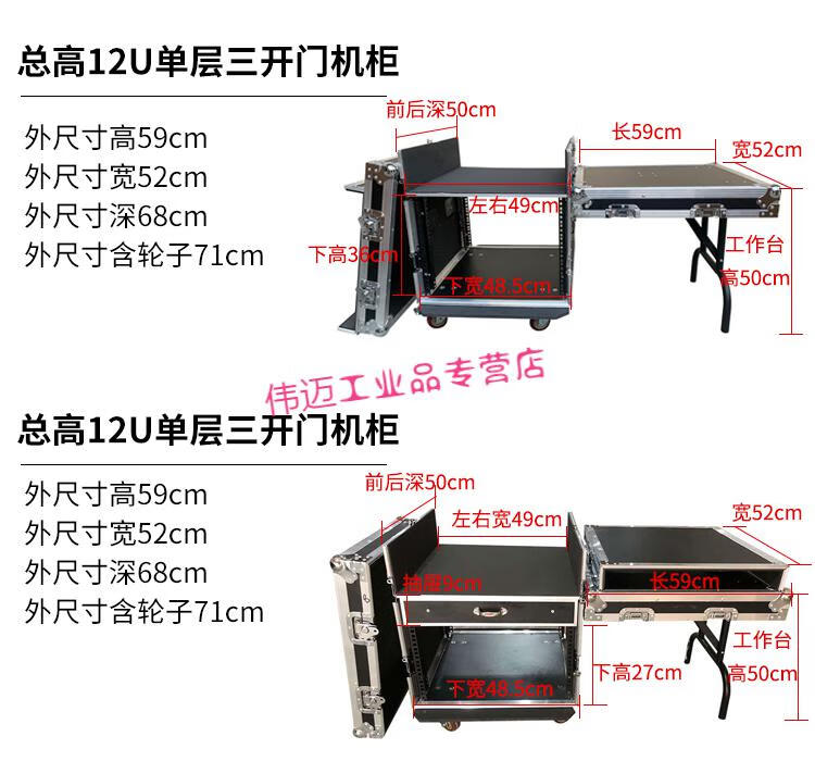 Customized 12U16U aviation case cabinet mixer audio amplifier aviation cabinet shelf stage equipment cabinet 20u double layer shockproof three-door model B