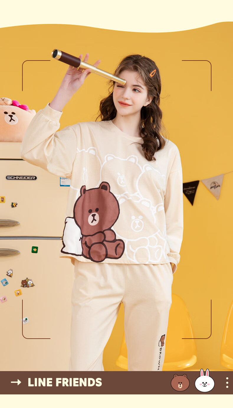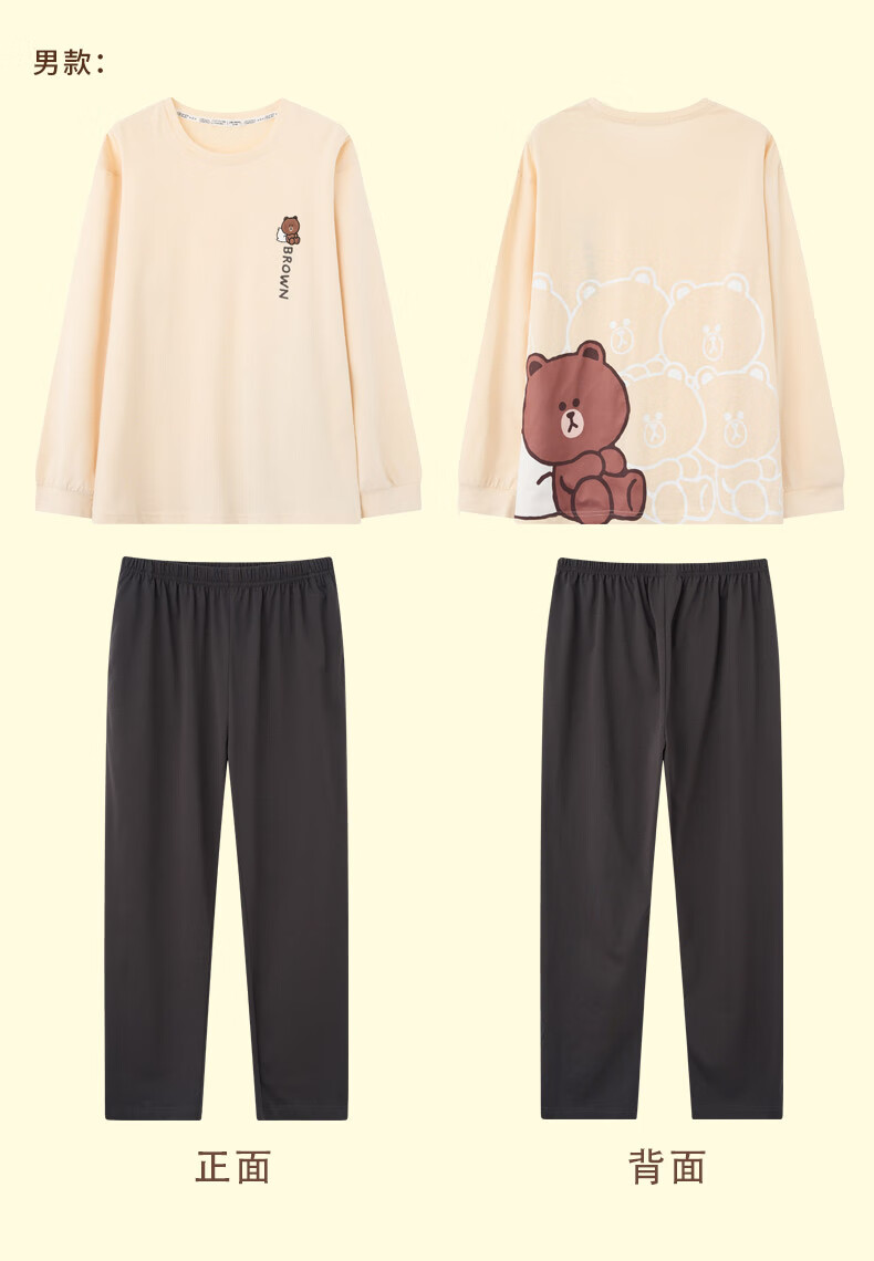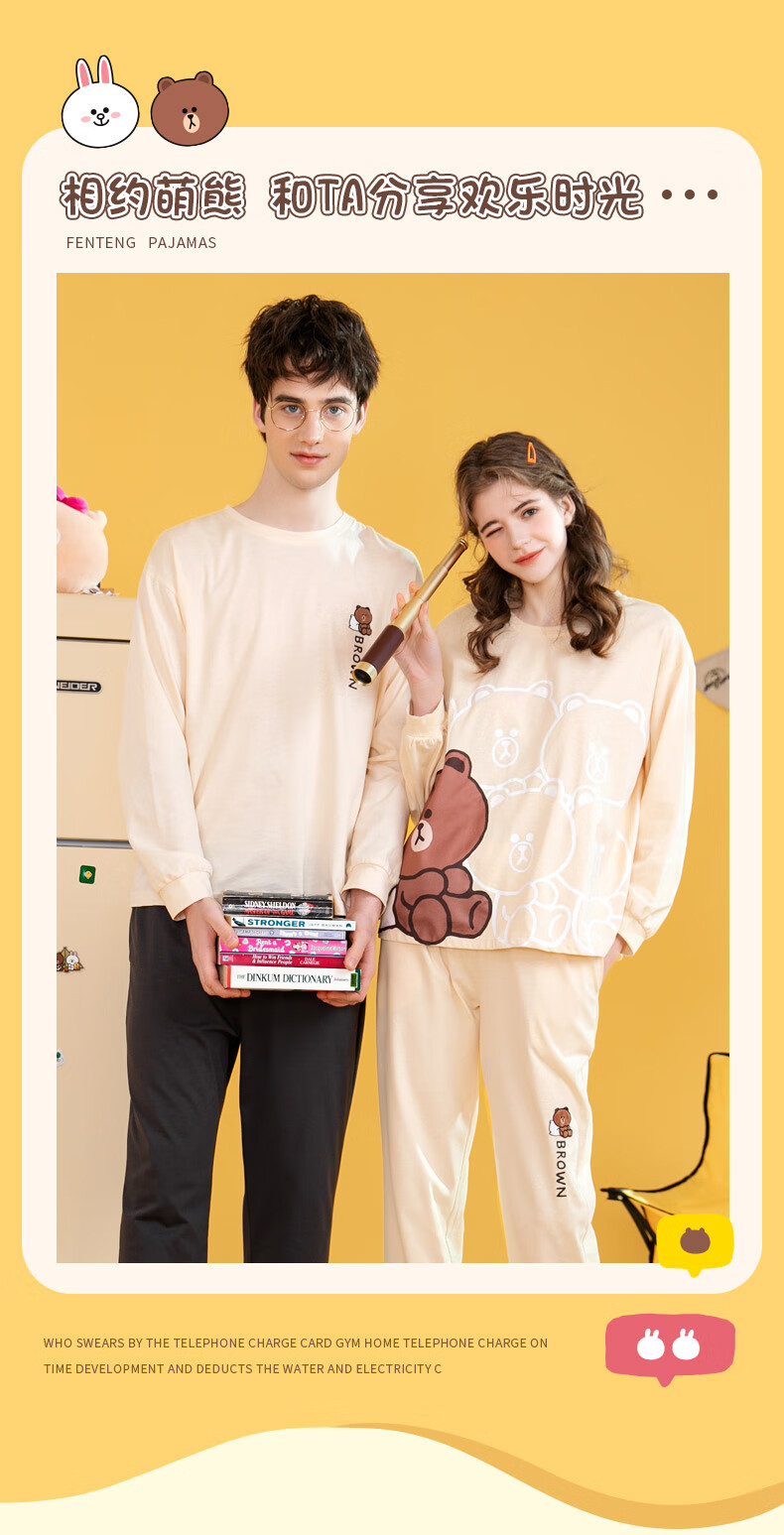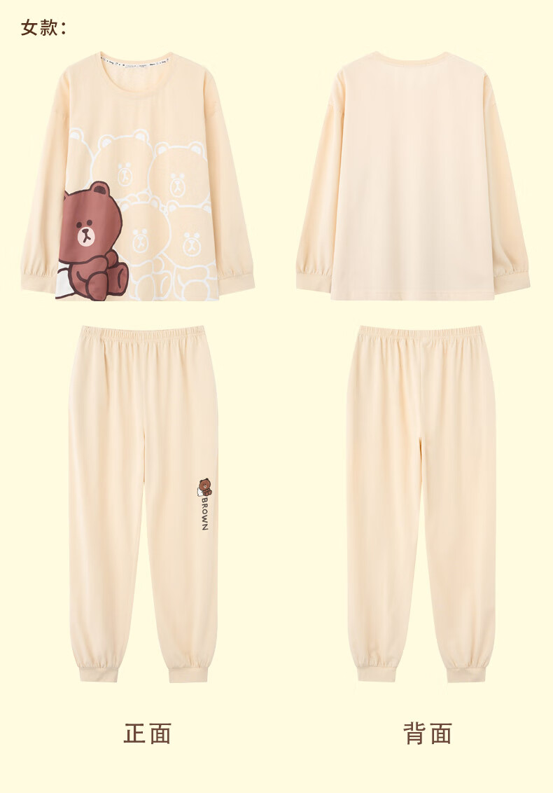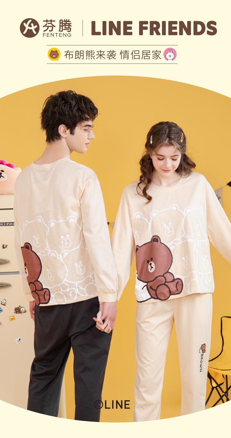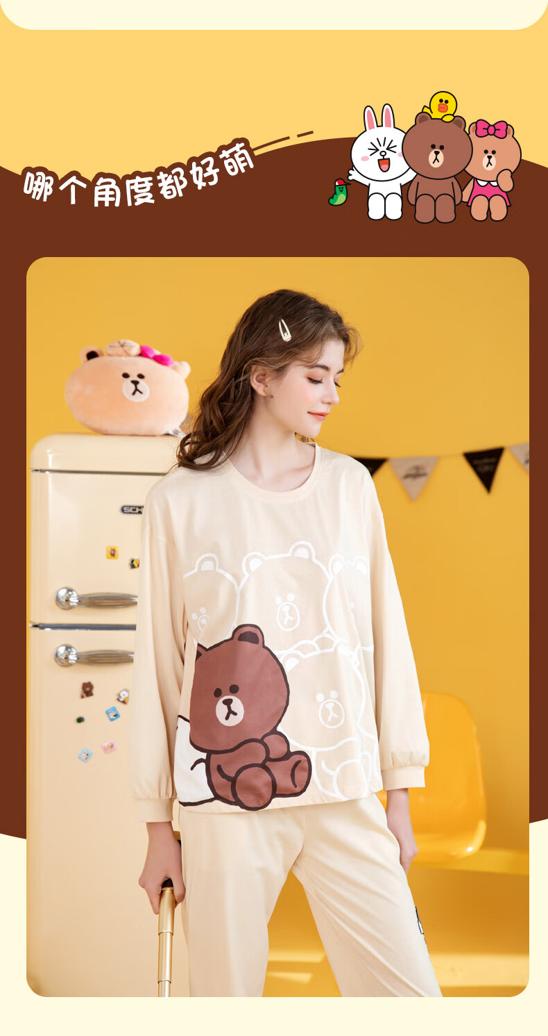 Fenton Couple Pajamas Women's Pure Cotton New IP Brown Bear Joint Fashion Round Neck Homewear Set Mi Xing (Female) 2XL