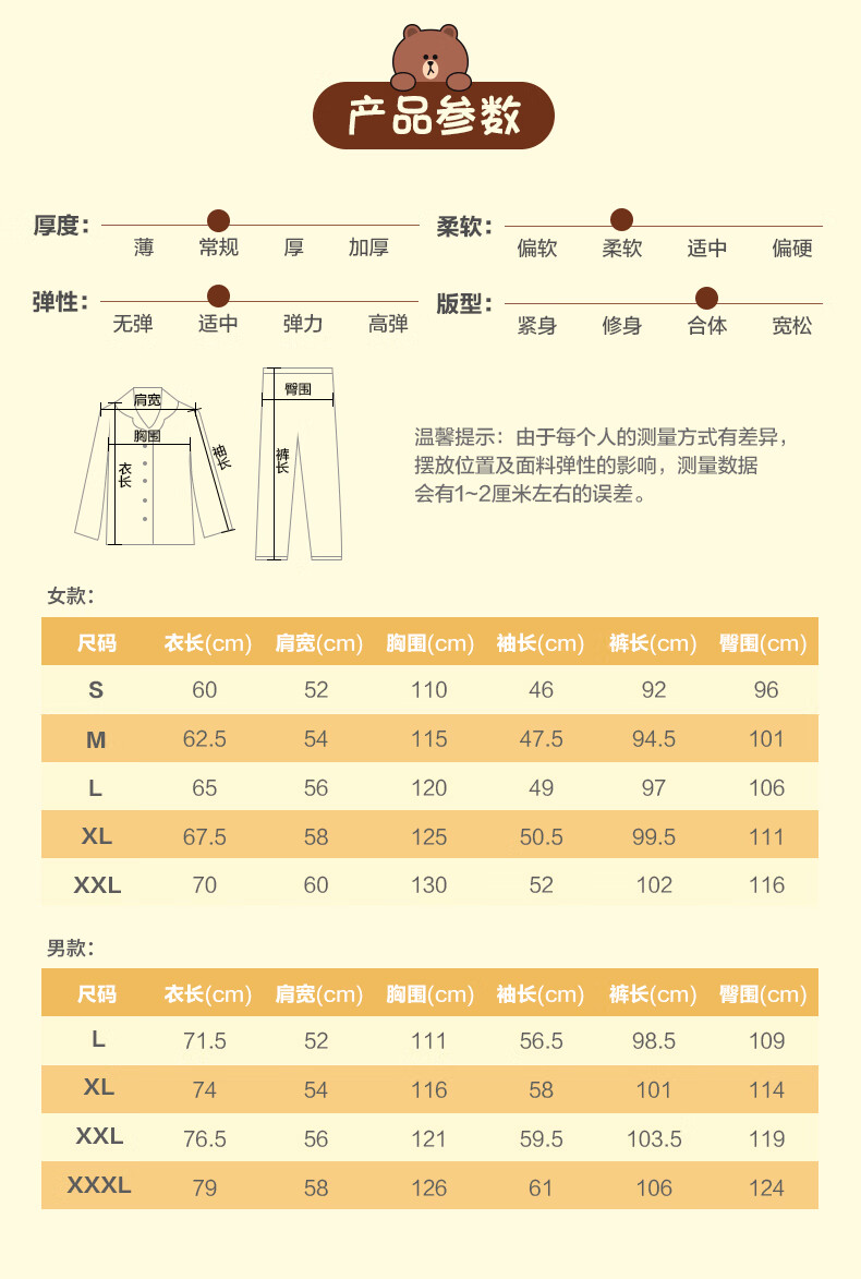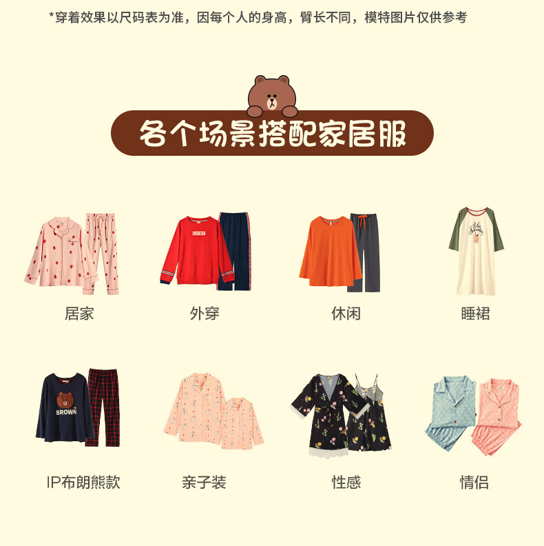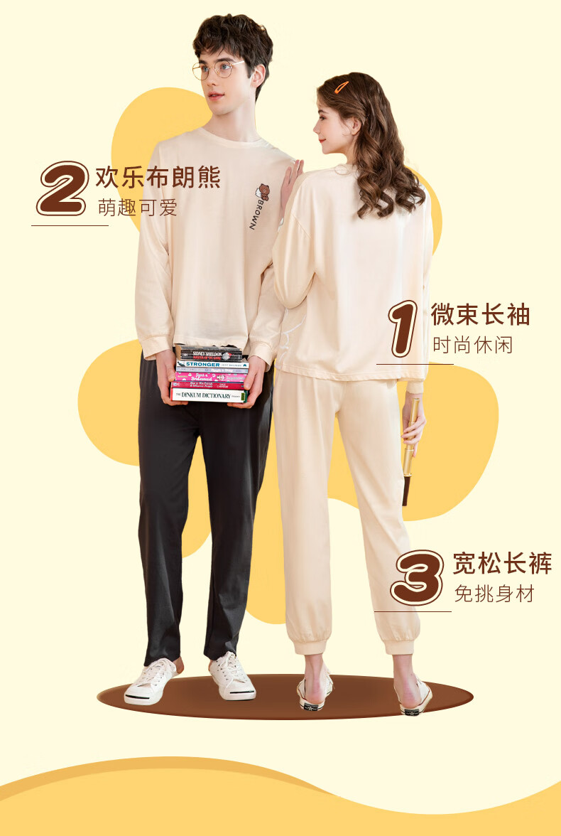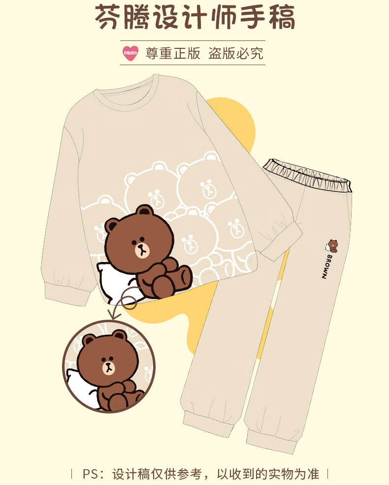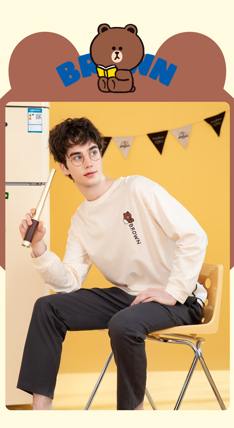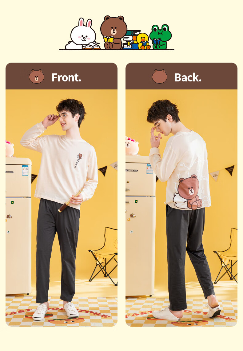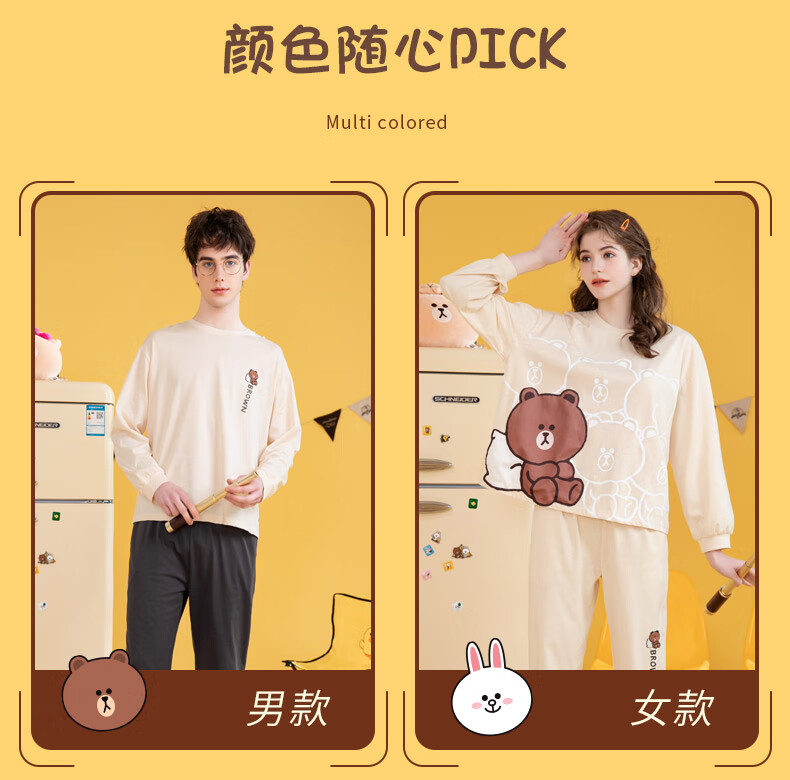 Fenton Couple Pajamas Women's Pure Cotton New IP Brown Bear Joint Fashion Round Neck Homewear Set Mi Xing (Female) 2XL